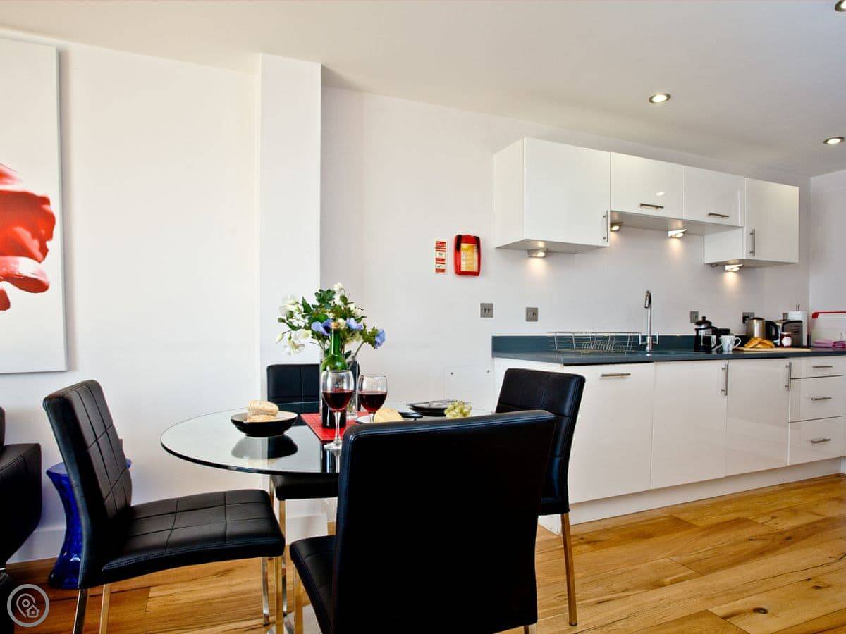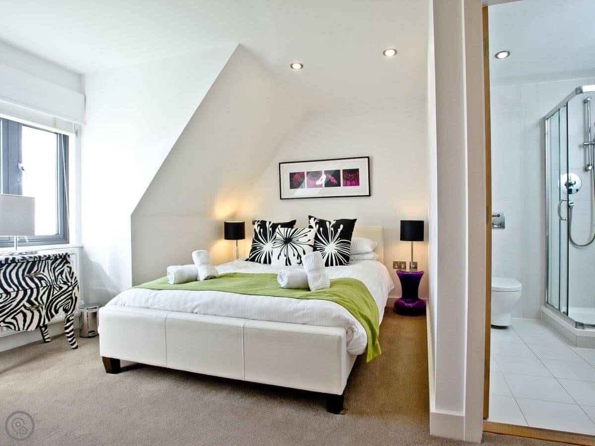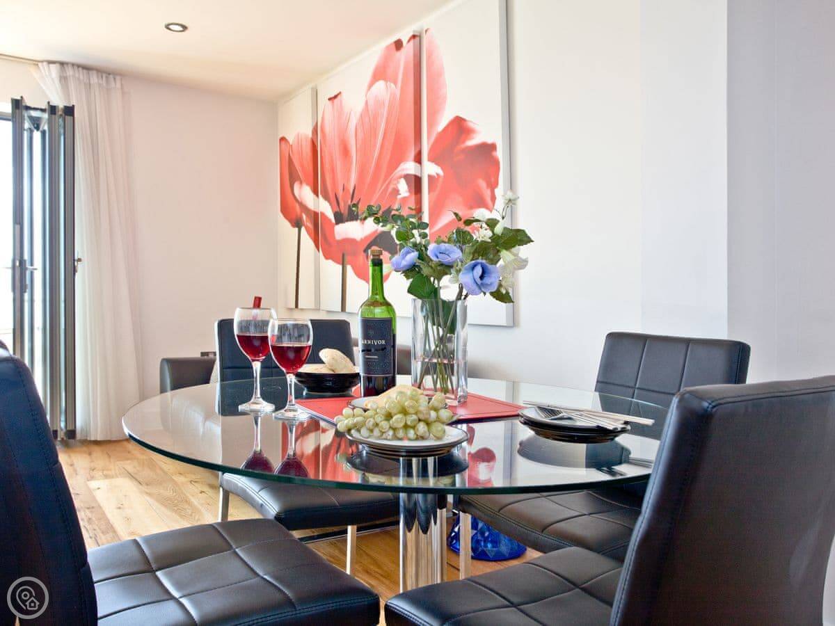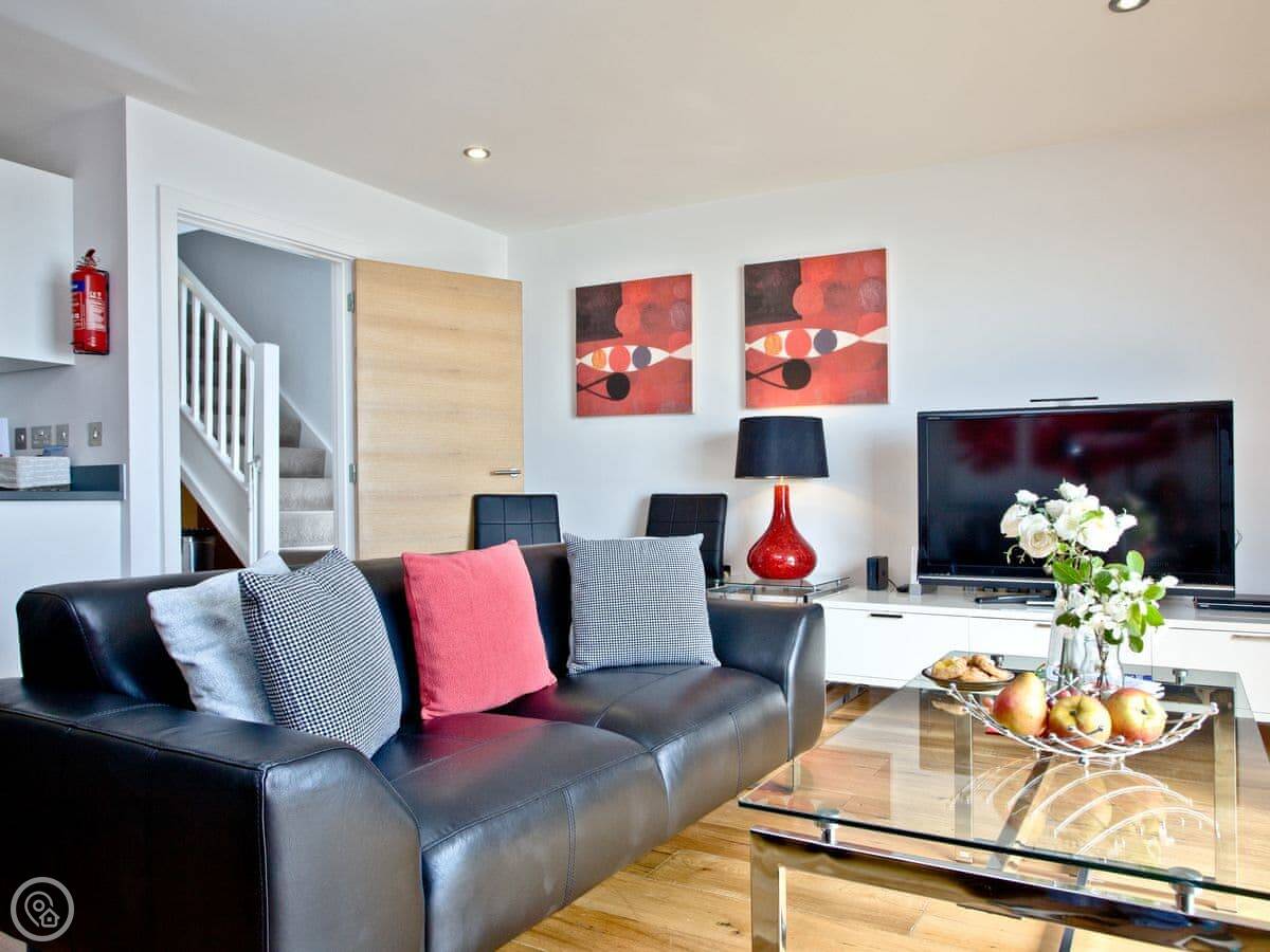 It's a modern place and sleeps six people. Three bedrooms, two bathrooms. It's got a 5 Star rating, which means it's well equipped and finished to a high standard. The floors are warm because of the underfloor heating. It's a duplex, so the stairs inside are quite normal.