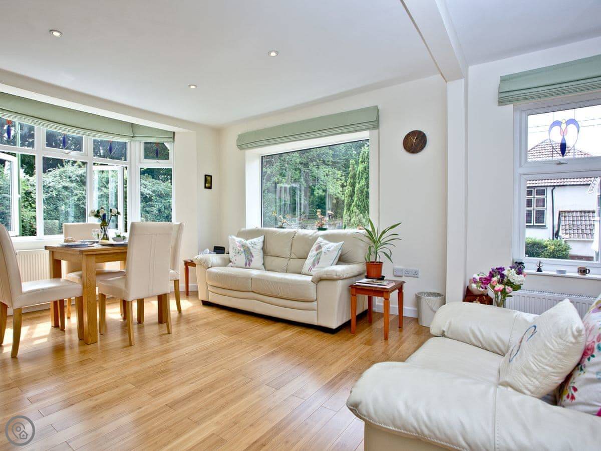 The flat is light and has wooden floors. There's a decent sized, enclosed garden you can use. Parking is in a garage, but it's only suitable for a small car. Anything bigger will have to go on the drive.