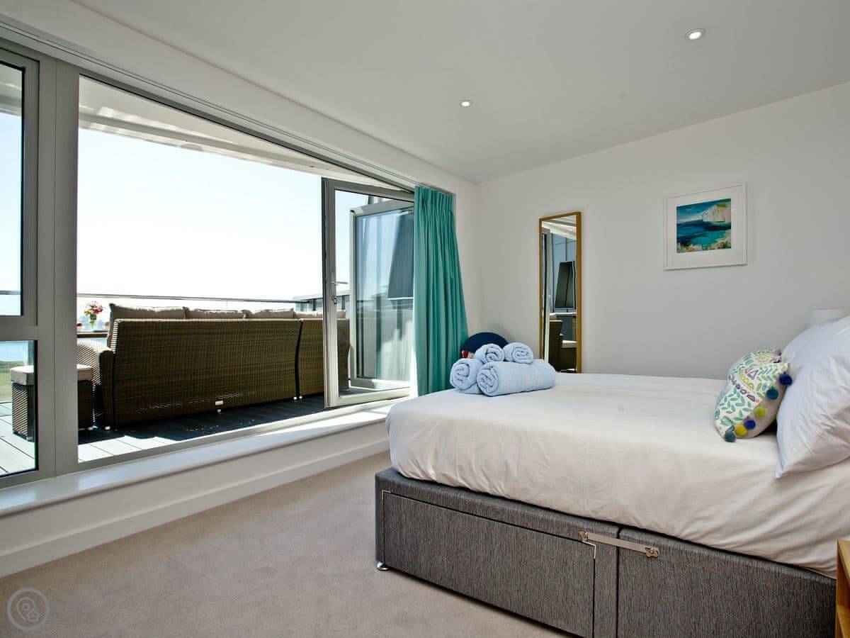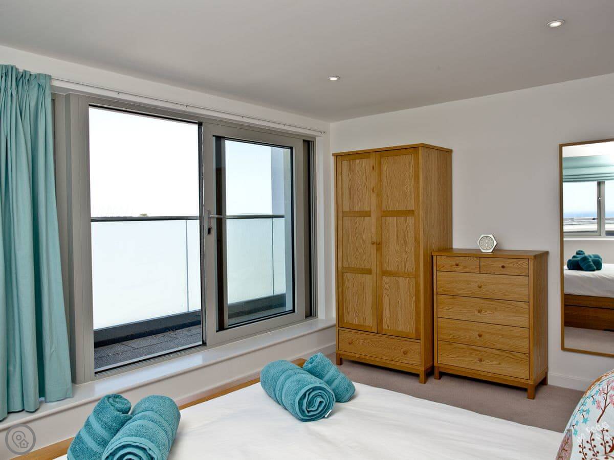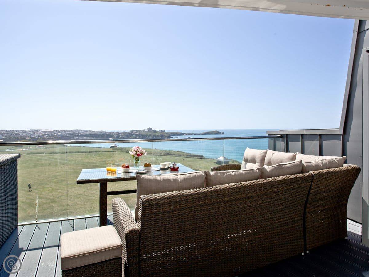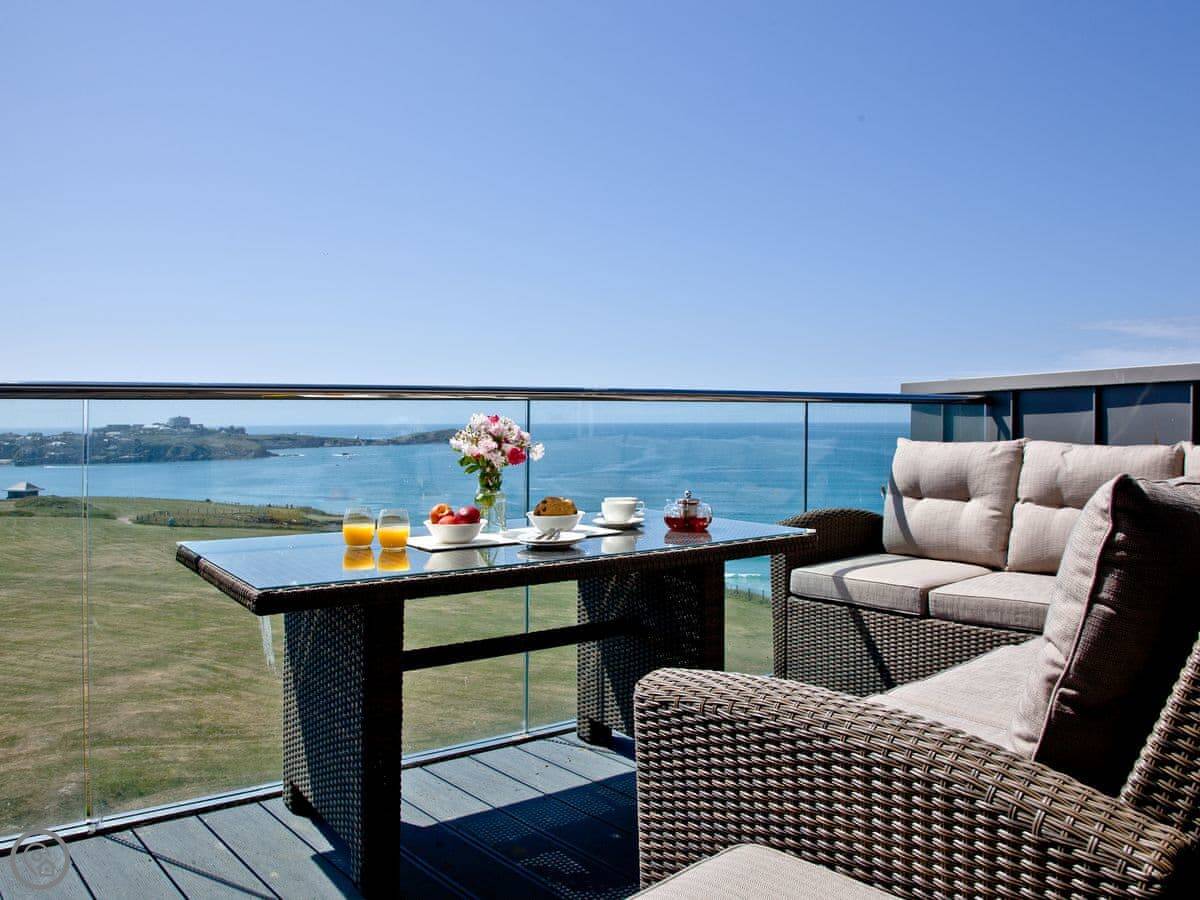 18 One Lusty Glaze is an apartment in Newquay. It's on the first floor of a small block. The main thing is the view, which is straight out to the ocean from the front balcony.