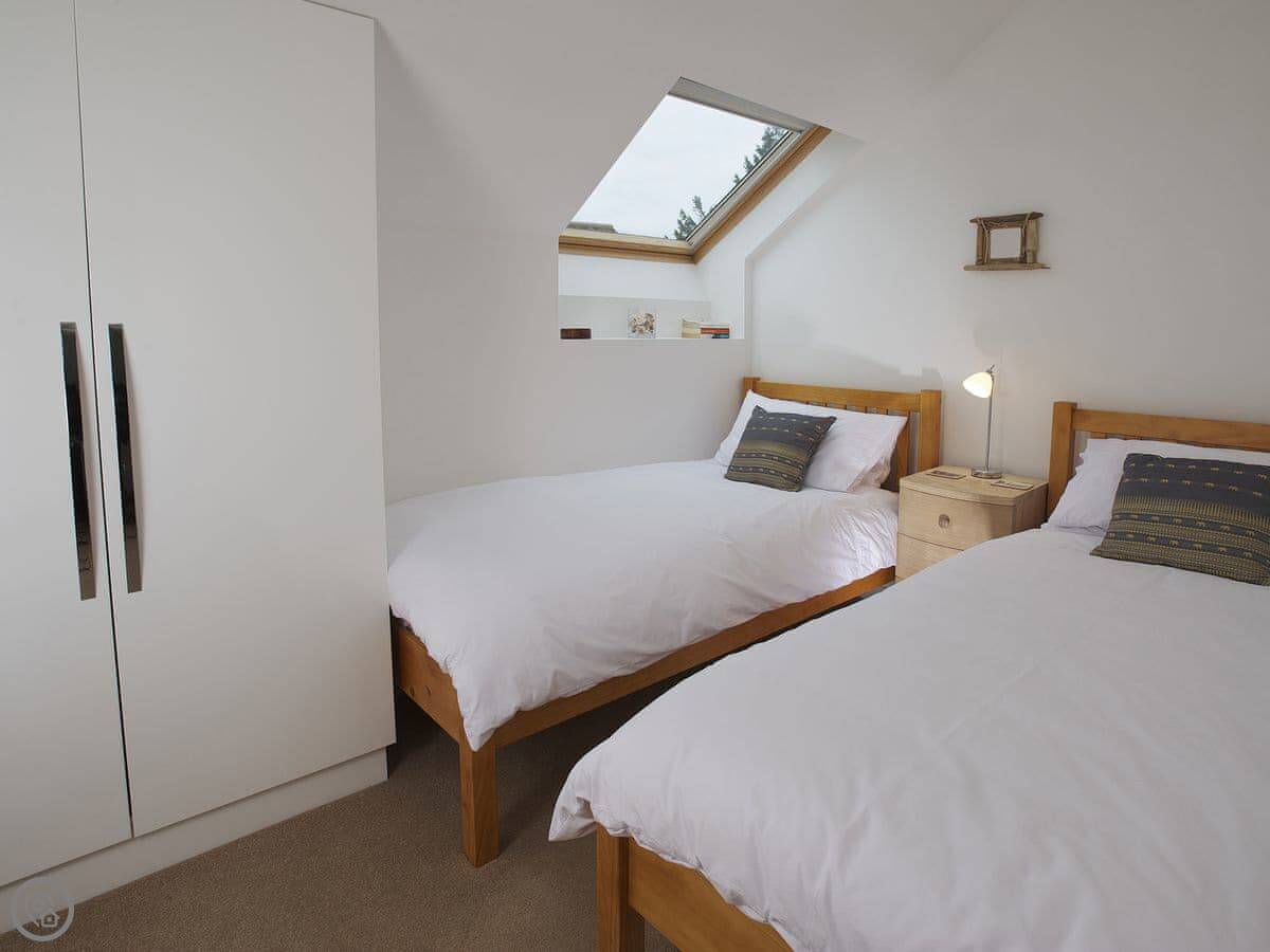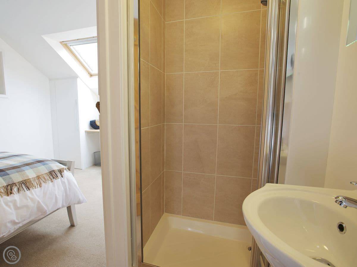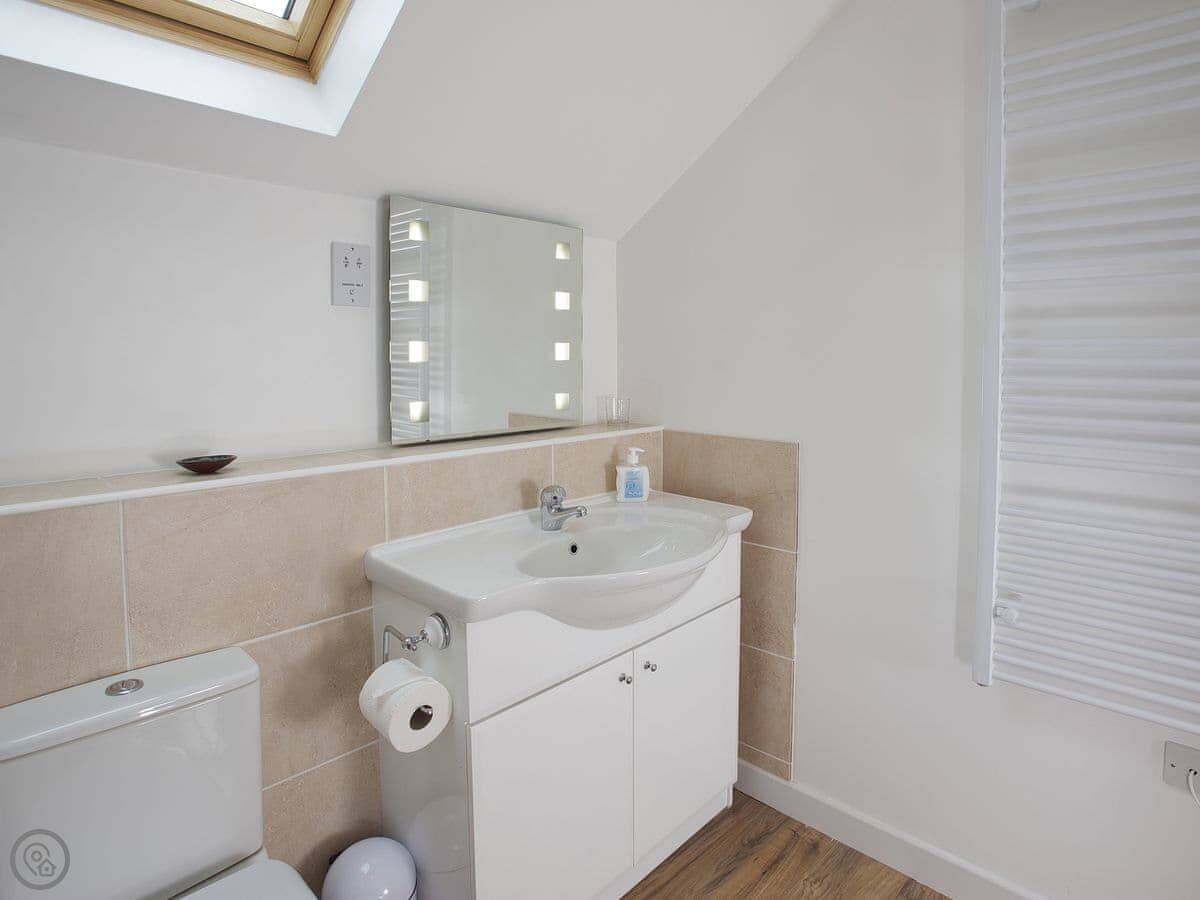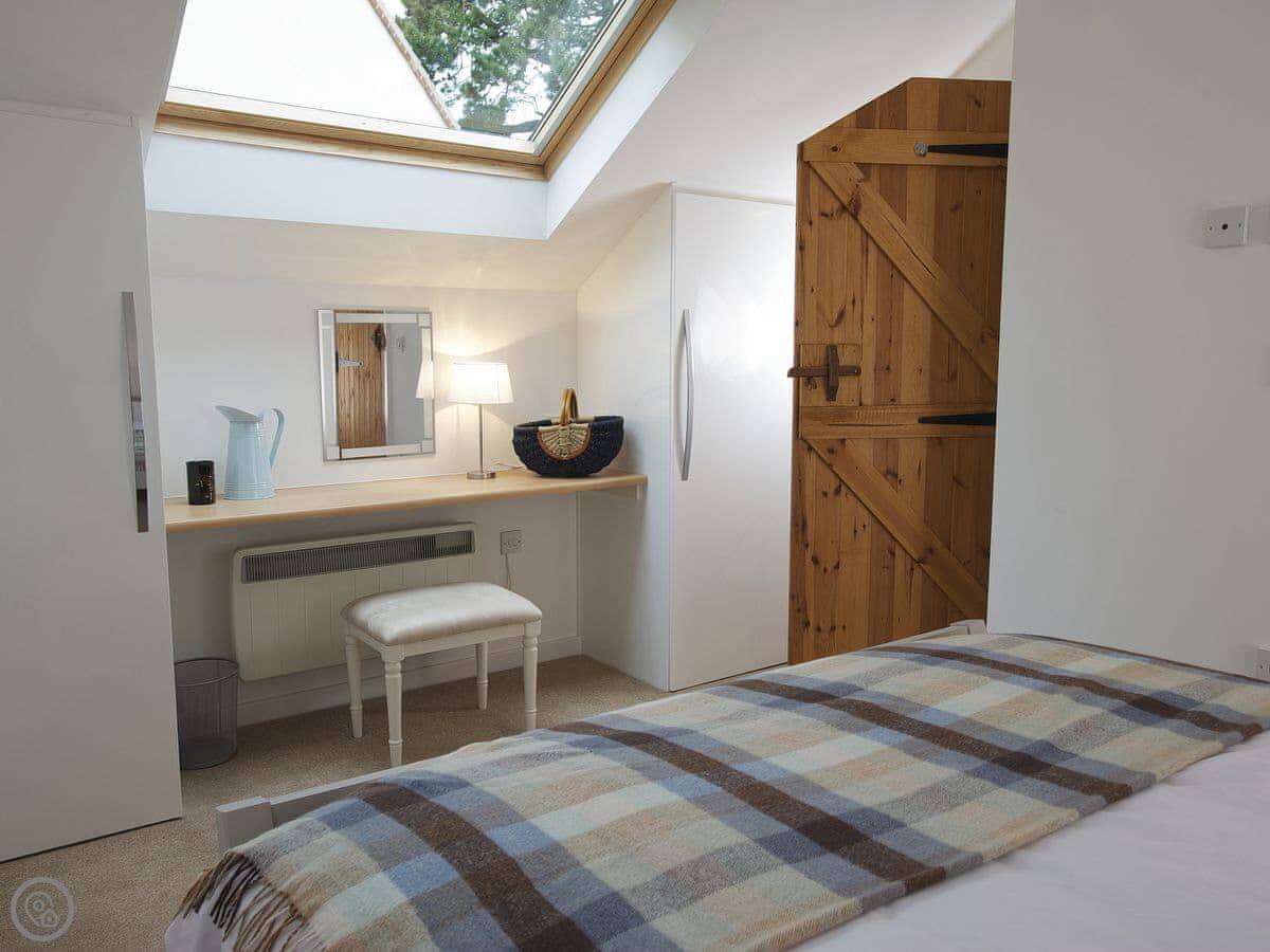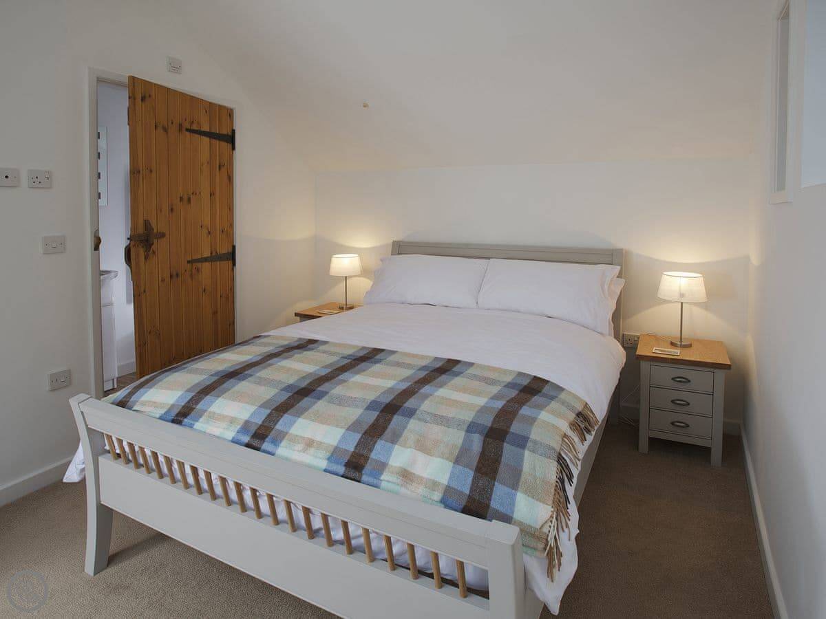 It's a stone cottage, fairly new inside. Sleeps four. Two good sized bedrooms, both with their own bathrooms. One's upstairs, one's on the ground floor. There's a small private patio out the back with a table and chairs. It's south facing, so you get the sun most of the day.