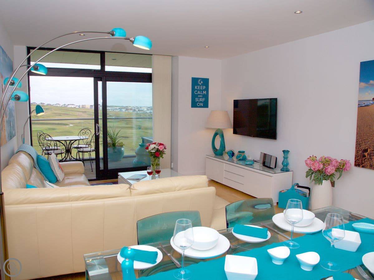 Internally, the property is furnished to a high standard with contemporary fixtures and fittings. Externally, the property benefits from a spacious furnished balcony with beautiful views over Fistral Beach, which can be accessed from the open plan living, kitchen and dining area as well as the relaxing bedrooms.