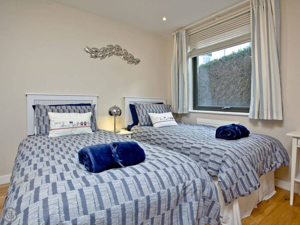It's got a 4 Star rating. It's modern and clean. Both bedrooms are doubles, and both have their own bathrooms. One is an en-suite, the other is just next door. That's quite handy.