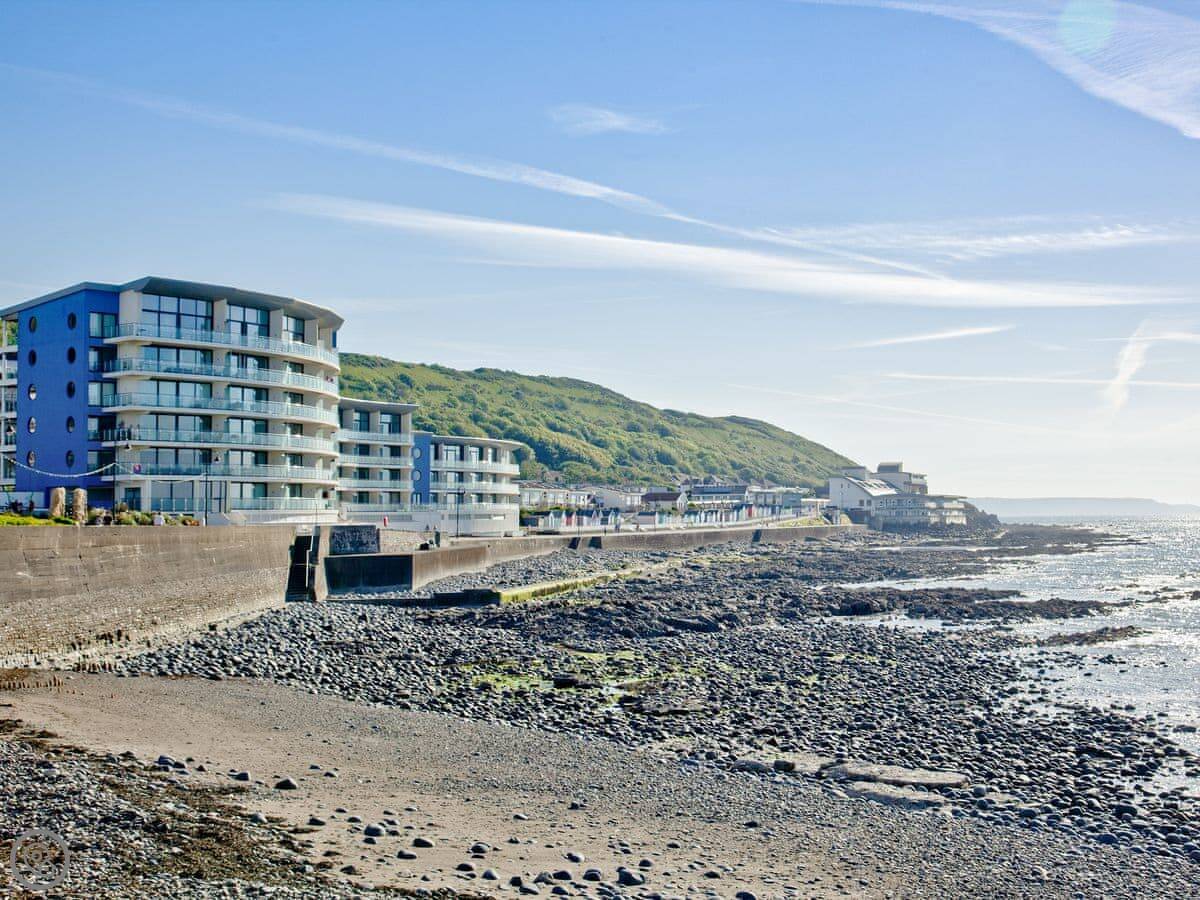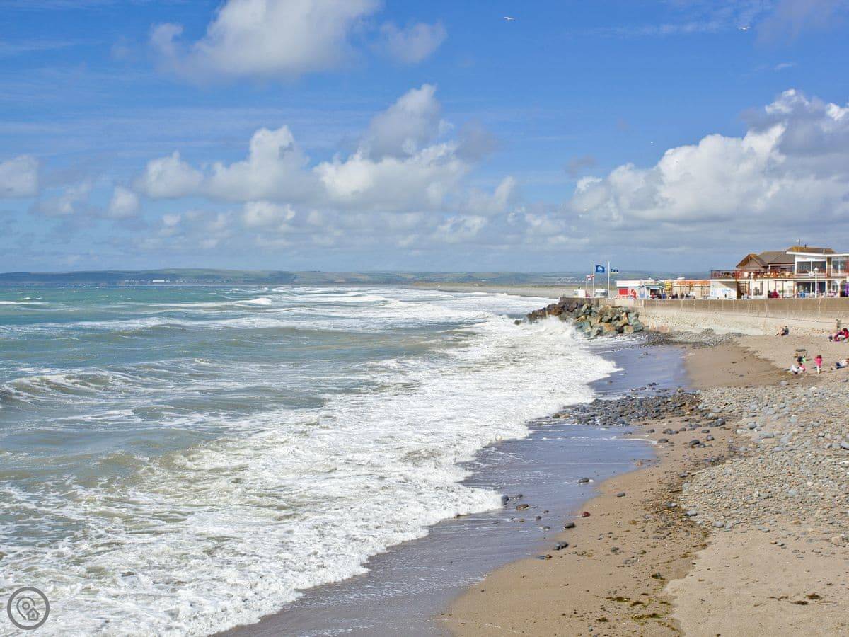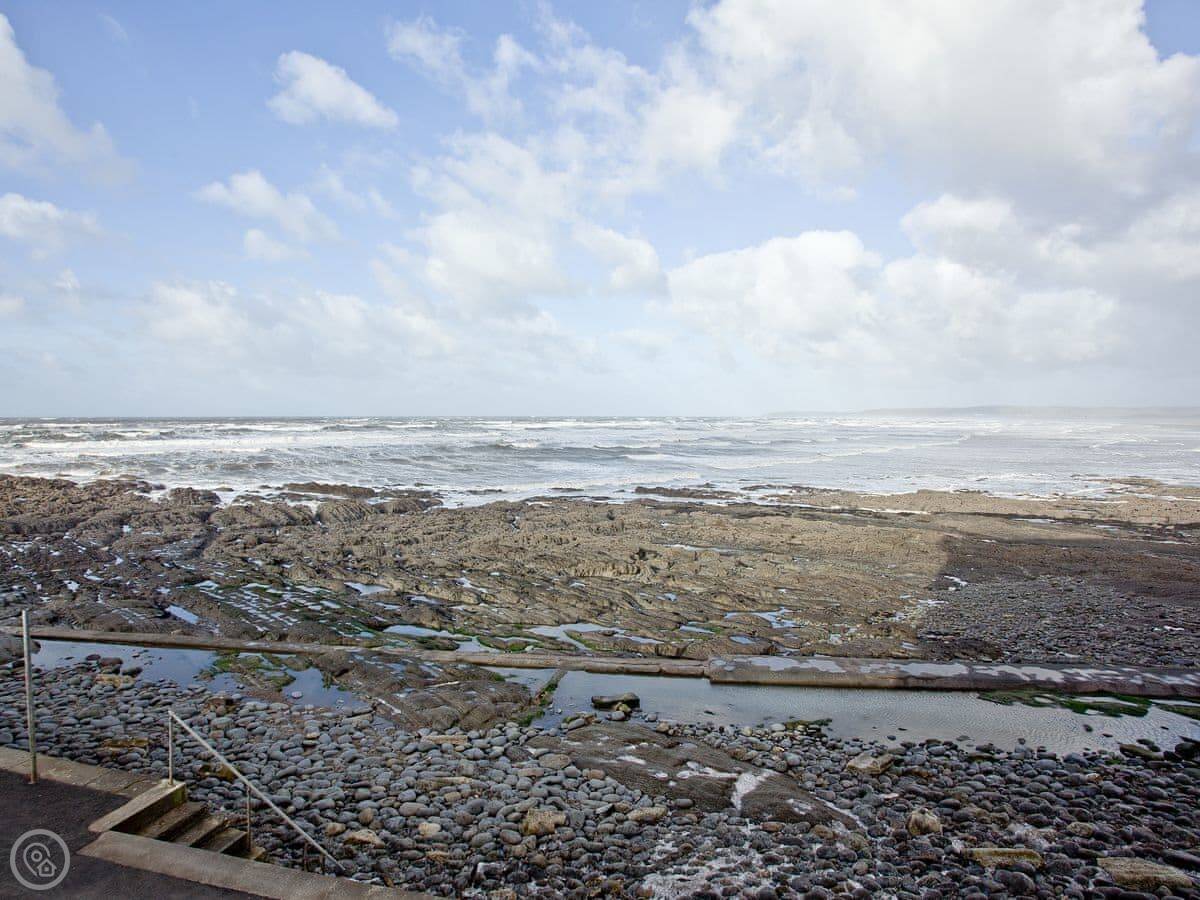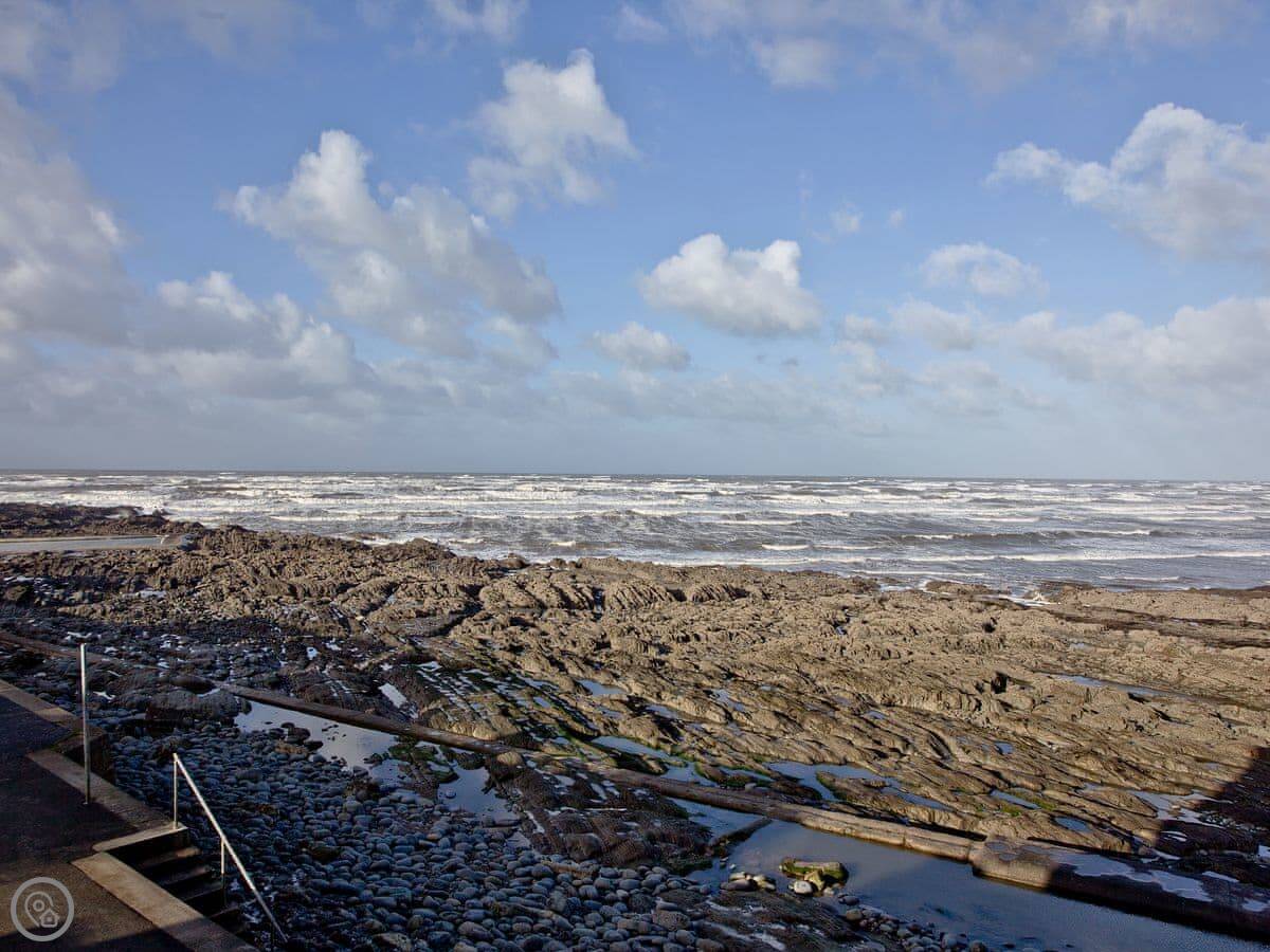 Outside, you're right on the promenade. The beach is a few steps away. It's a two-mile stretch of sand. Westward Ho! itself has the usual seaside things: shops, amusements, places to eat. There's a pub a few minutes walk away.