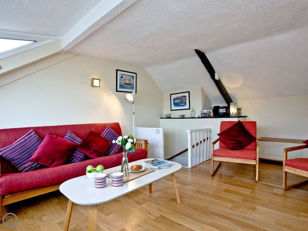 Pilgrims Cottage is in Brixham. It's an old fisherman's cottage, so it's on three floors. The living room is at the top, which gives you a good view of the harbour and marina from the window.