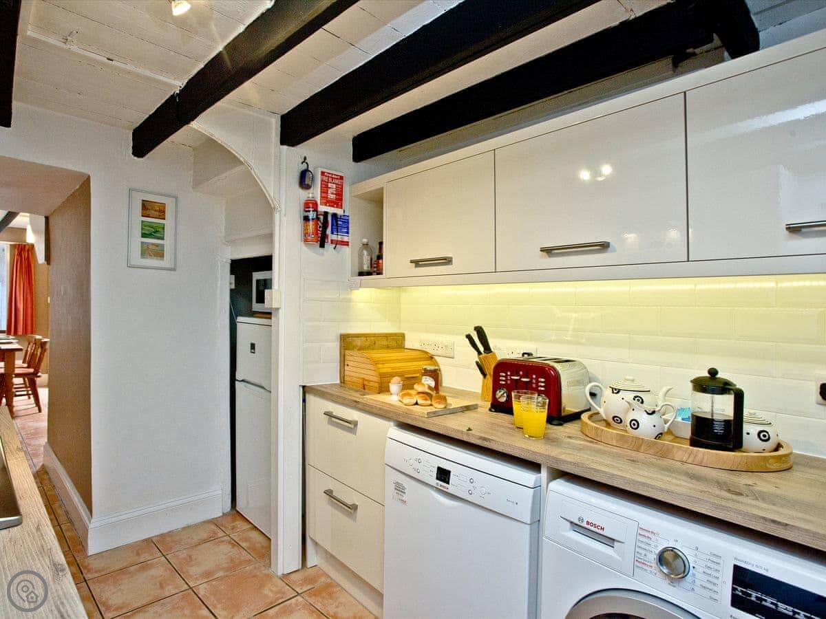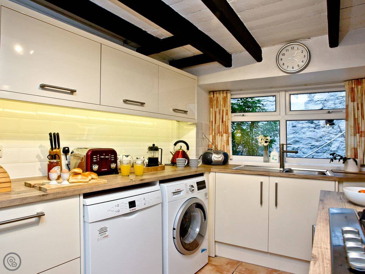 It has WiFi, gas central heating, a washing machine, and a dishwasher. You can bring up to two dogs.