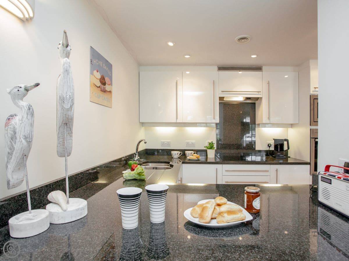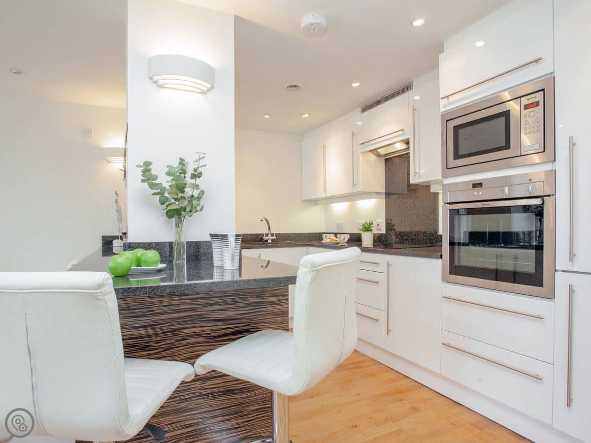 A flawless finish has been achieved by the interior designers, whilst design features include fully-fitted William Ball kitchens with black granite worktops and integrated Neff kitchen appliances. Designer sofas, dining and occasional chairs for the bedrooms have been added in May 2021. Additionally the property contains stylish contemporary bathrooms, state of the art lighting, a Varme underfloor heating system with zoned controls and a heat recovery system, and spacious balconies offering views across the water.