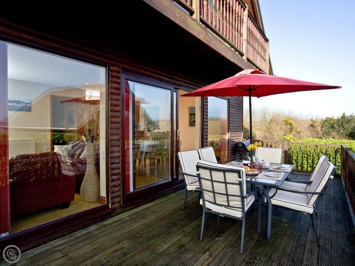From the living area you can step through the sliding doors onto your own private, decked terrace. On a sunny day you can sit on the comfy chairs, sheltered under the parasol and enjoy a glass of wine or a bite to eat. There’s even a barbecue provided for those summer festivities.