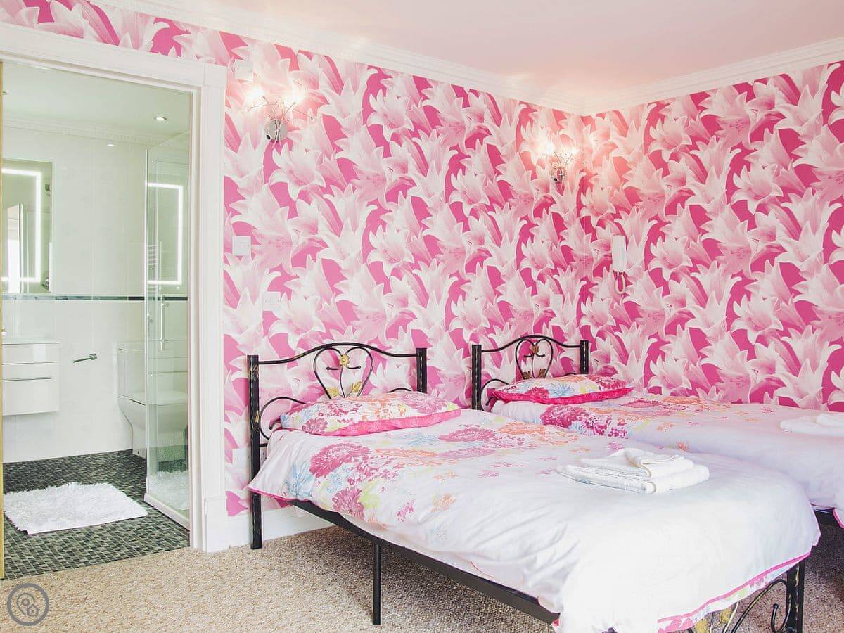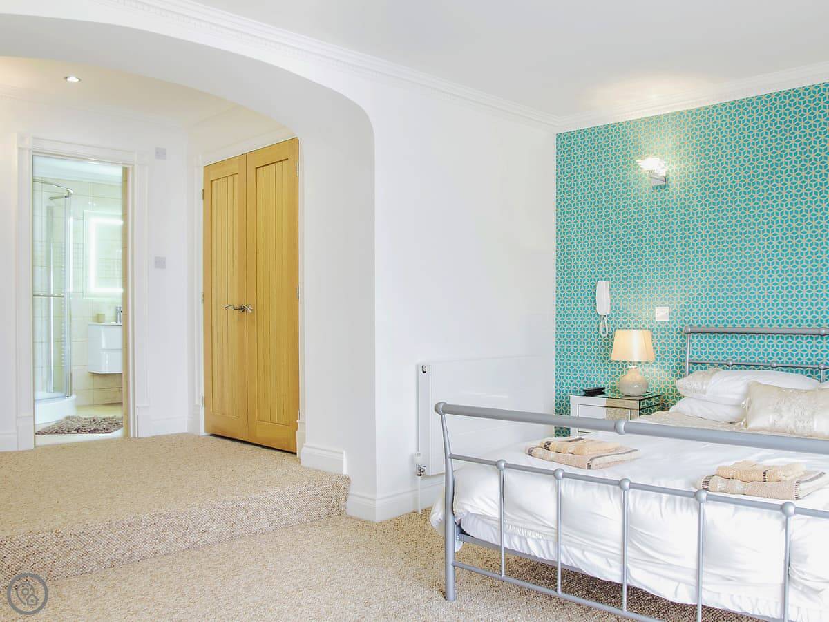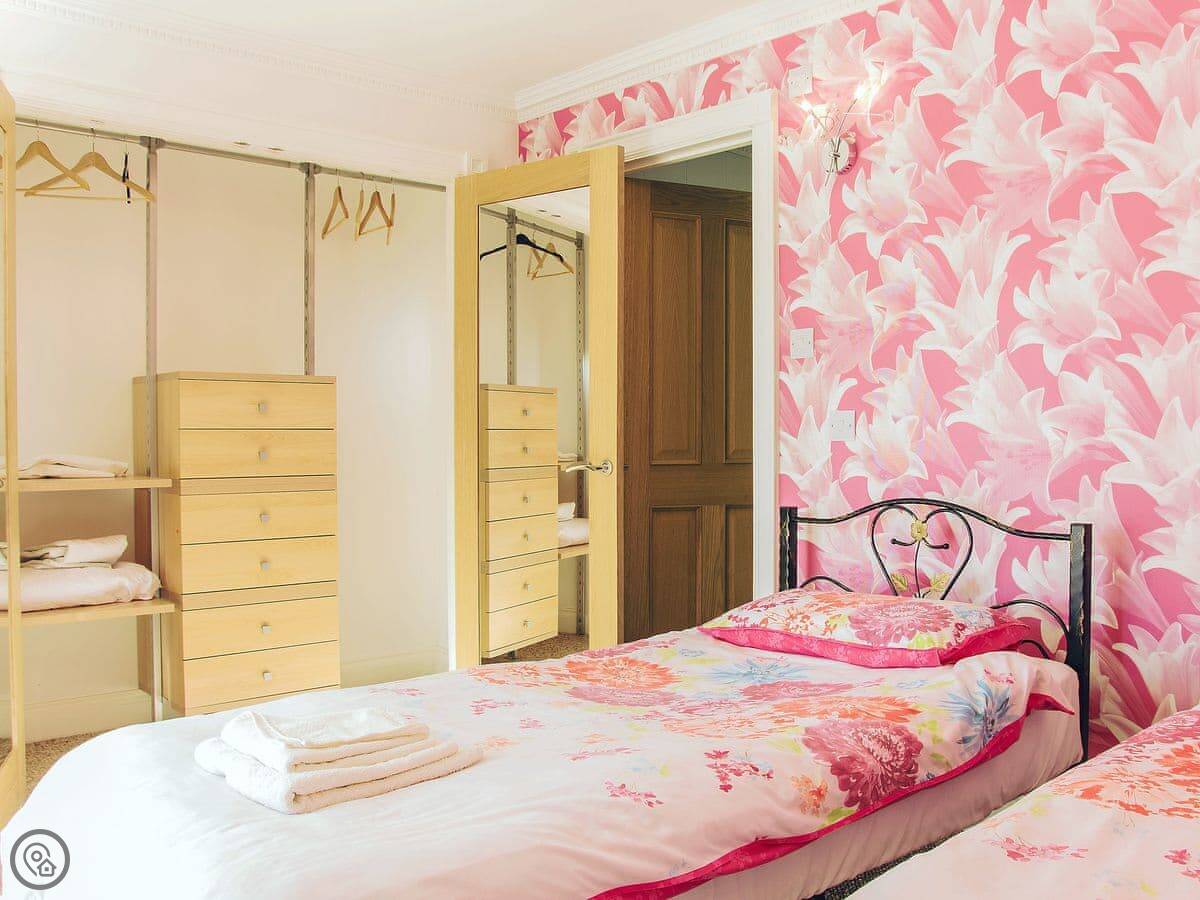 It sleeps four. Two bedrooms, both with their own bathrooms. It's got a five star rating, which really just means everything's been done to a high standard. It's a nice place. It's on three floors, so there are internal stairs.