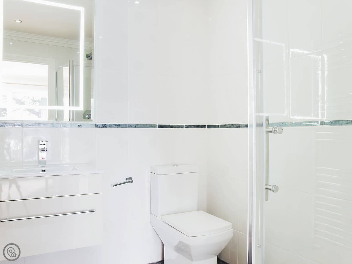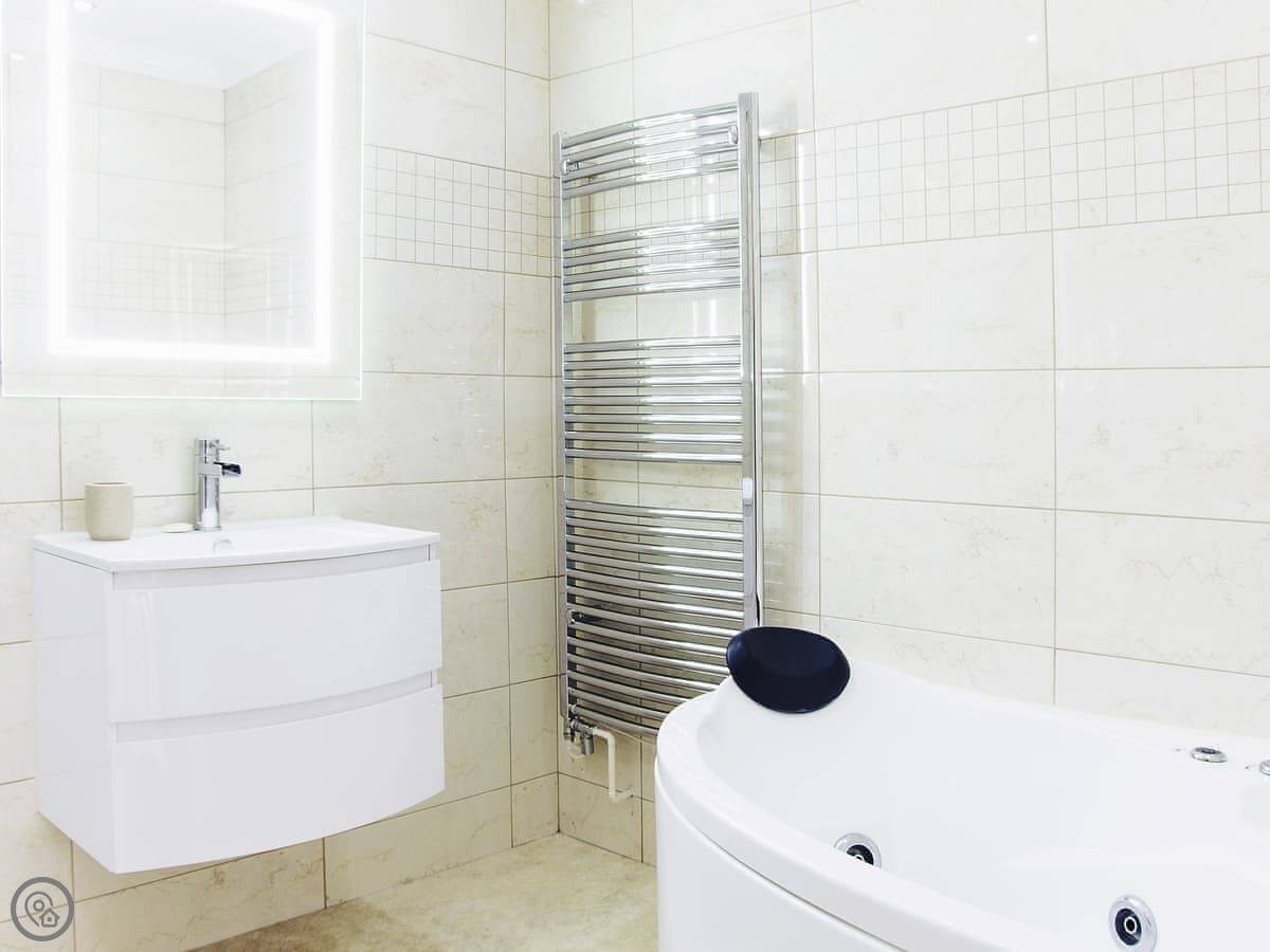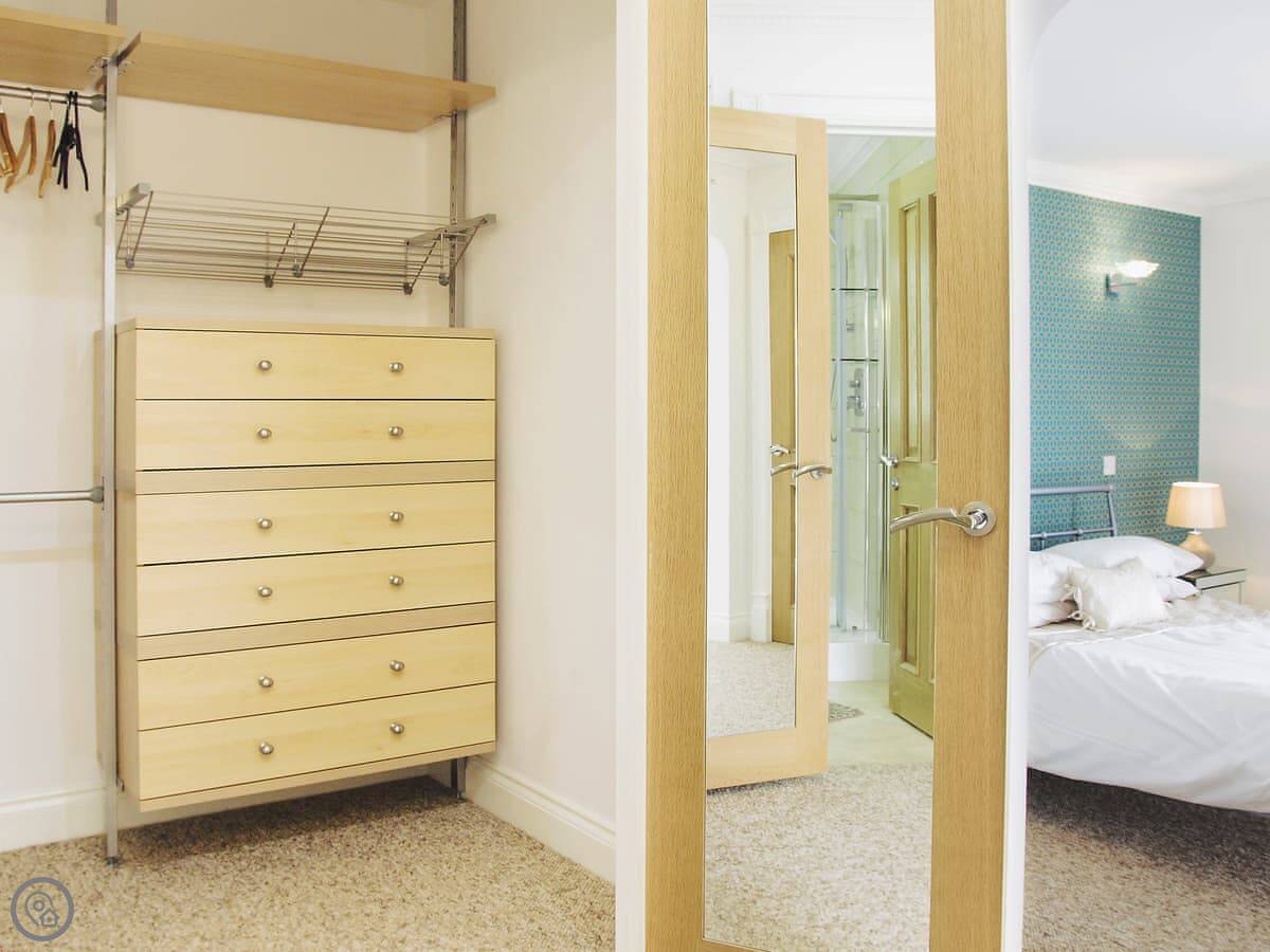 It sleeps four. Two bedrooms, both with their own bathrooms. It's got a five star rating, which really just means everything's been done to a high standard. It's a nice place. It's on three floors, so there are internal stairs.