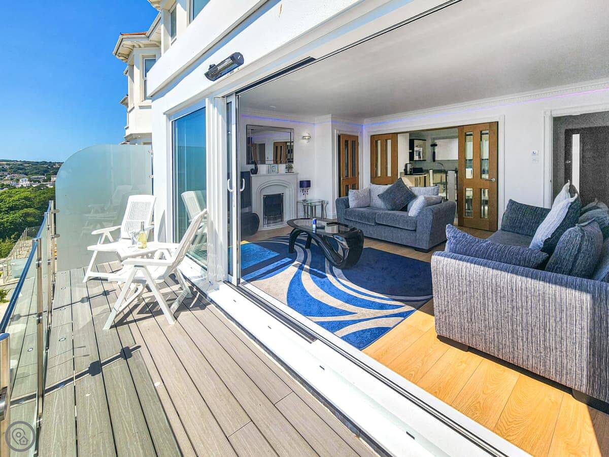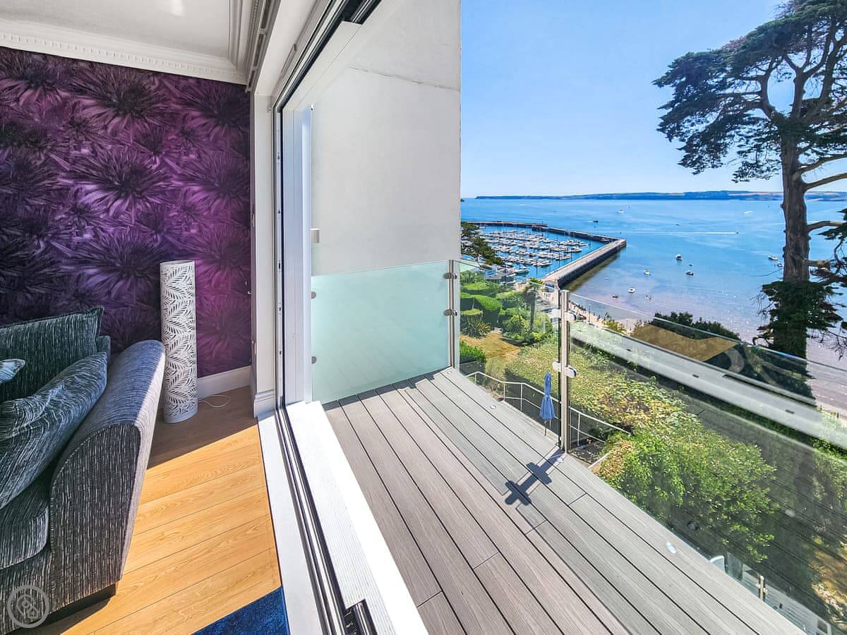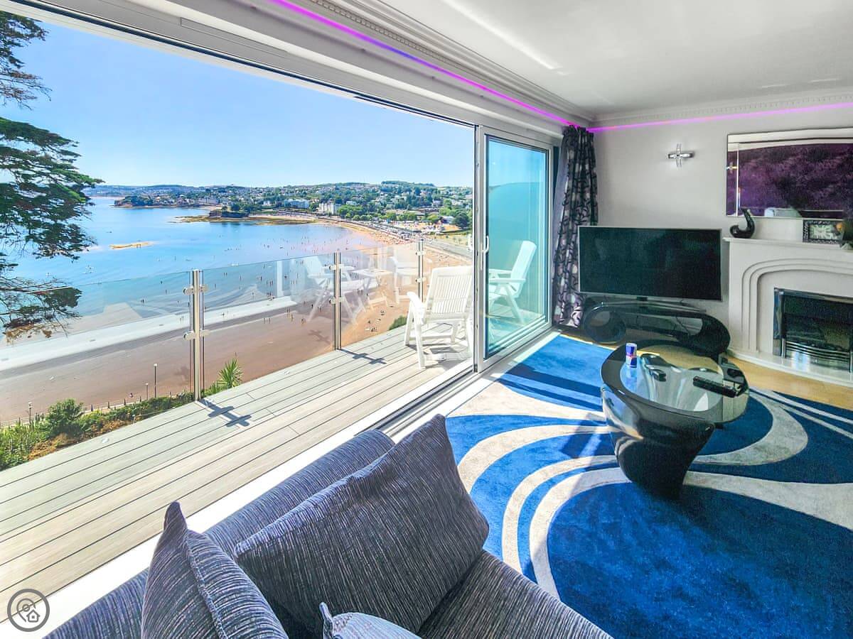 The main thing is the view. The living room and one bedroom have big windows looking right out over Torre Abbey Sands and the sea. There's a full balcony off the lounge and a big sun terrace as well, both facing south. You can sit out there.