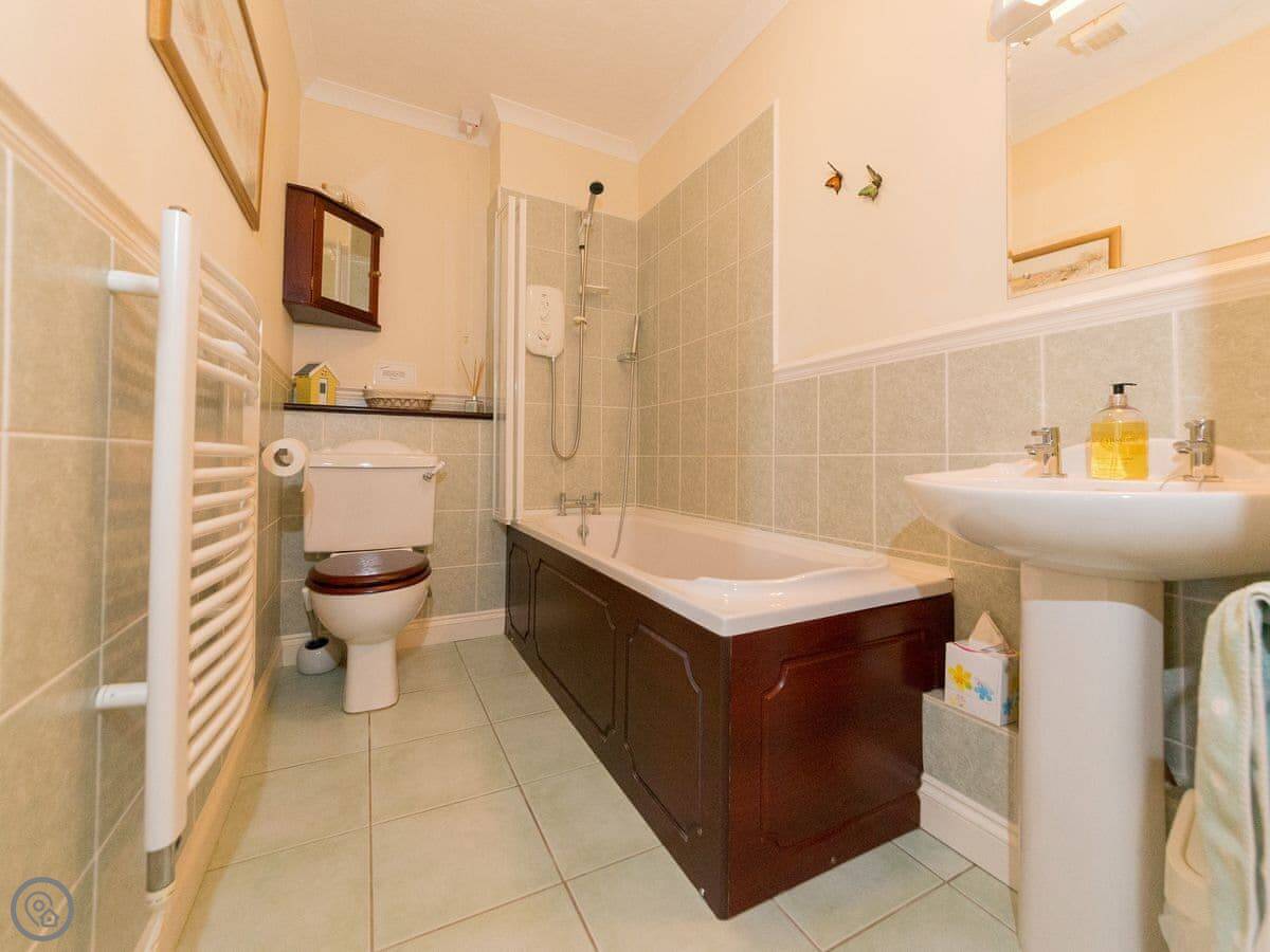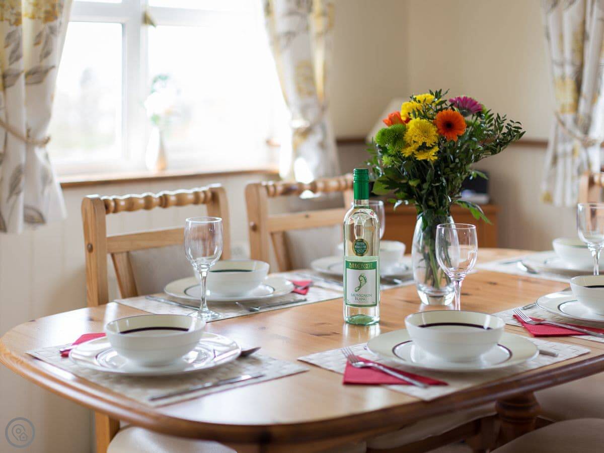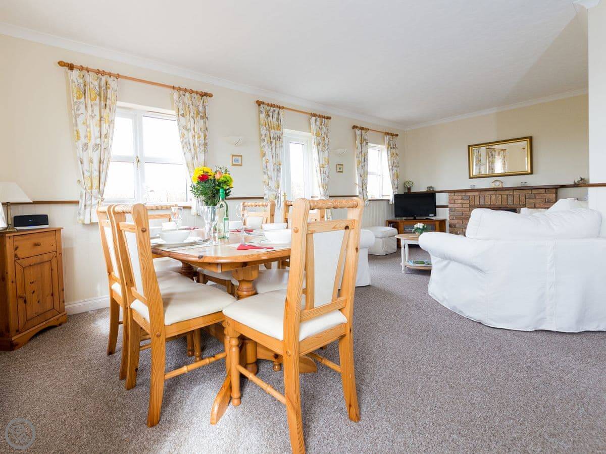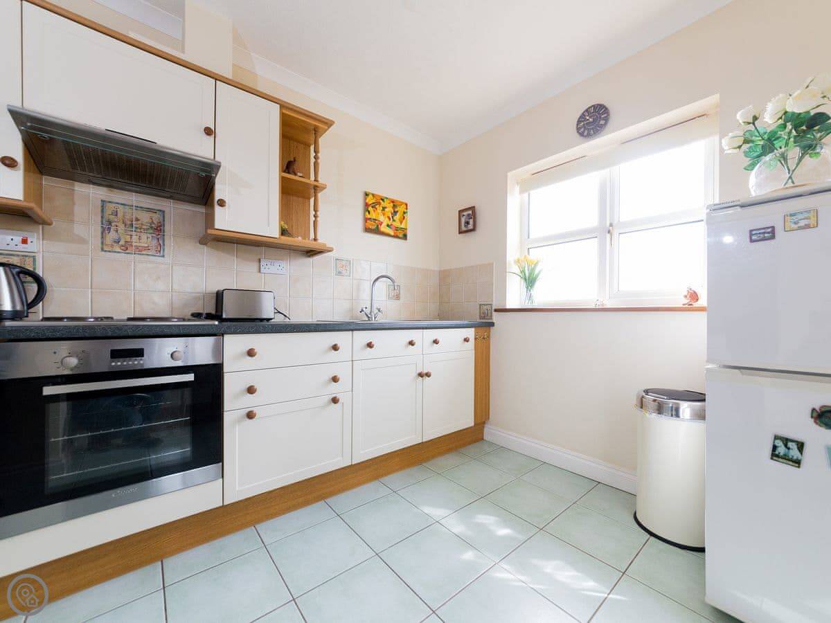 It sleeps four, with two bedrooms and one bathroom. There's a proper wood burner in the living room. The main bedroom has a balcony, which is nice, and you can see the sea from a few of the rooms. It's got a 4 Star rating, so it's well looked after.