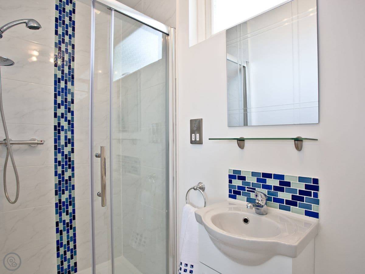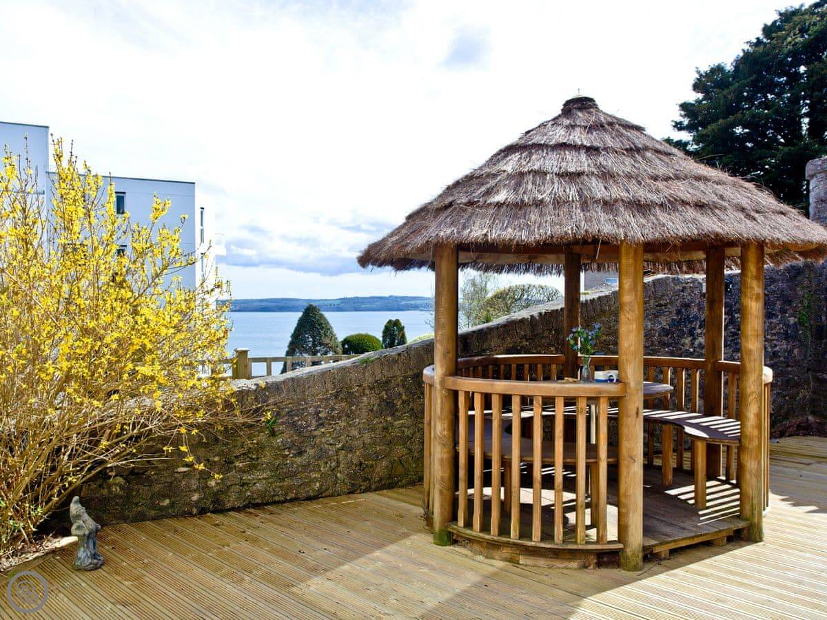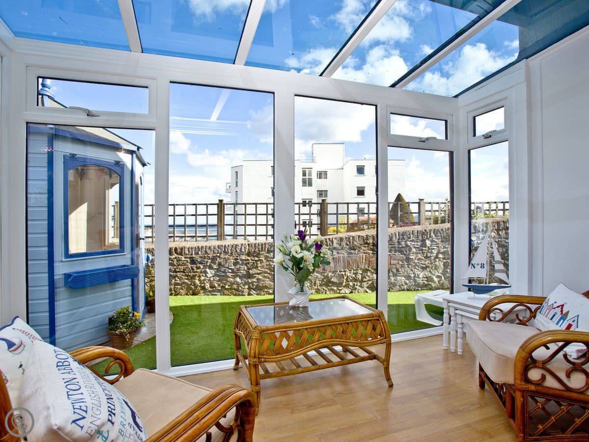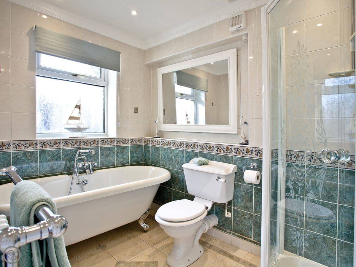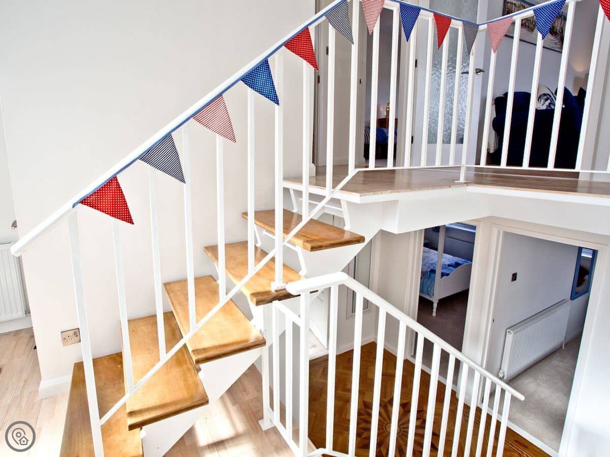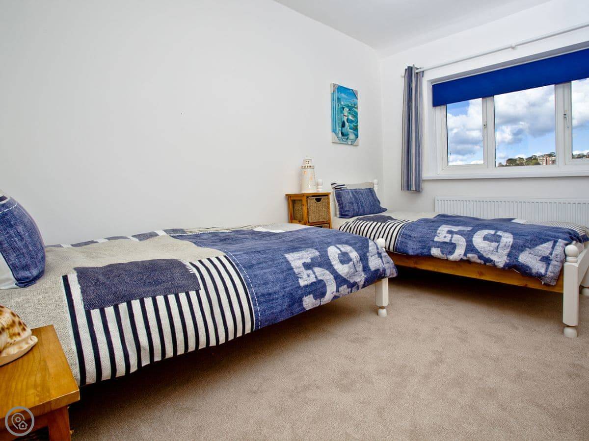Two of the bedrooms are downstairs. The main one has its own conservatory that leads out to a private bit of garden with a summer house. The other is a four-poster room. The twin room is upstairs next to the shower room. All the decoration is sea-themed.