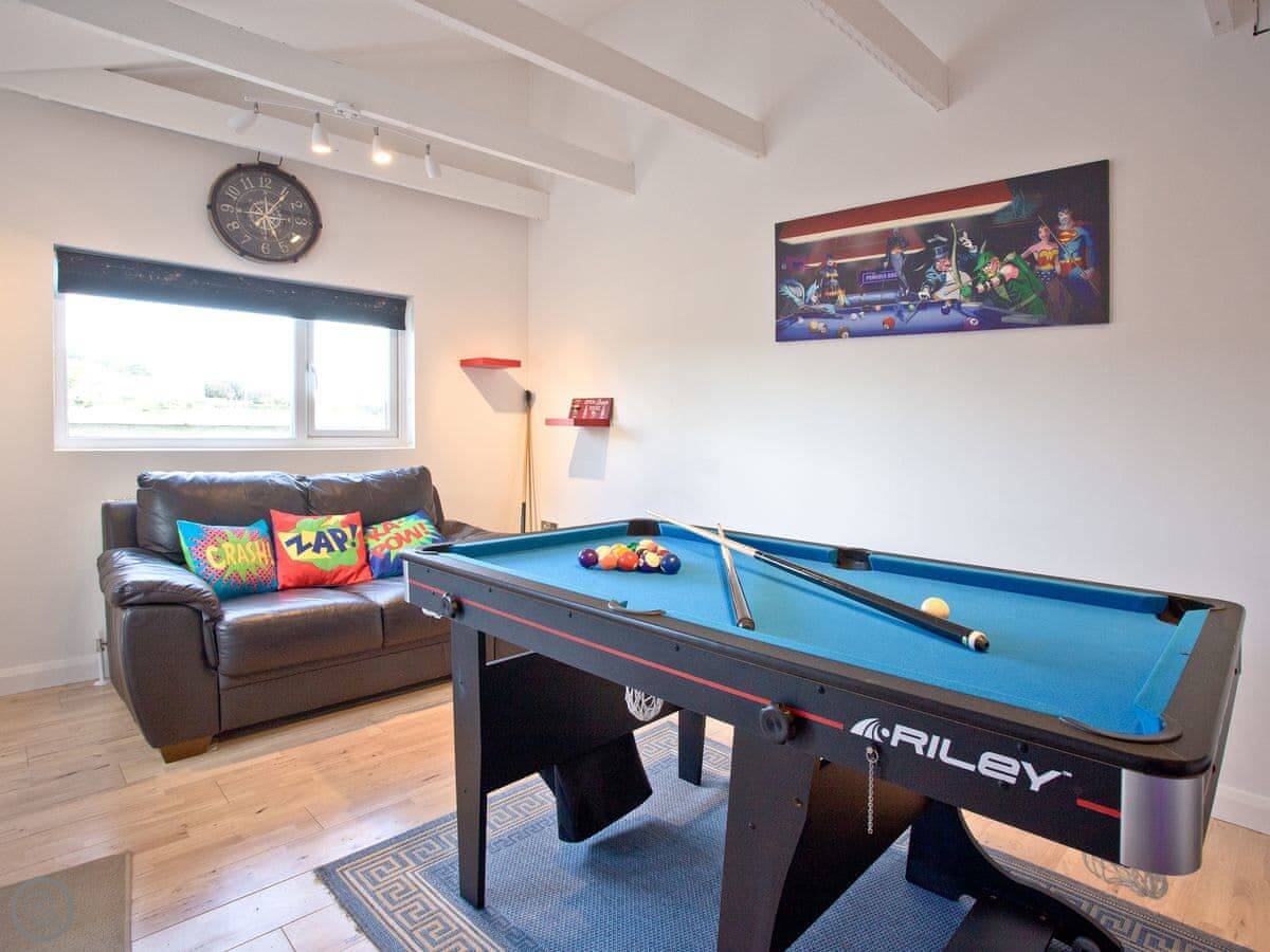 There's a separate games room round the side with a small pool table, a dartboard, and a jukebox speaker you can connect to. The Wi-Fi is fast fibre if you need it.