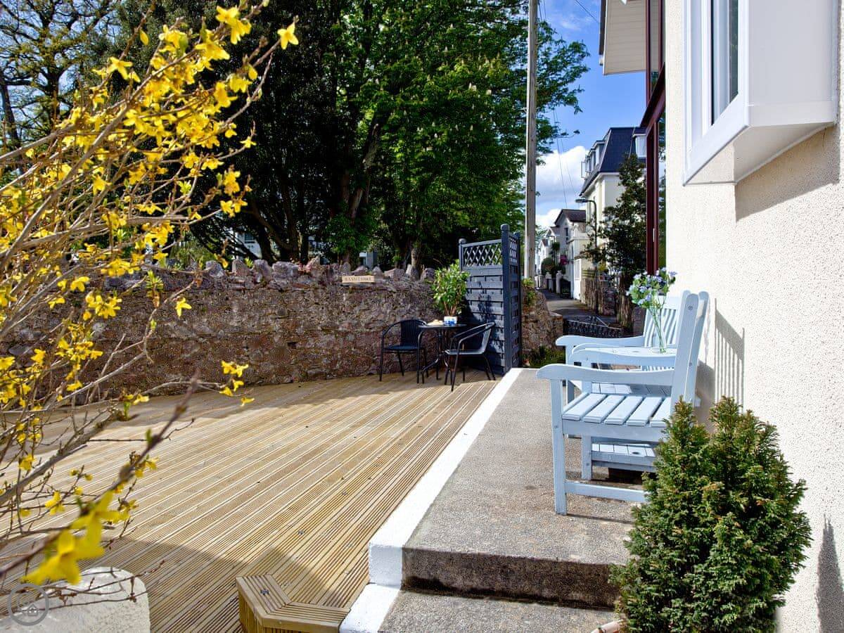Sea Salt Lodge is in Torquay. It's on the hill where Waldon Castle used to be. You can walk down to the seafront and the harbour. If you look in the garden, you can still see a bit of the old castle wall.