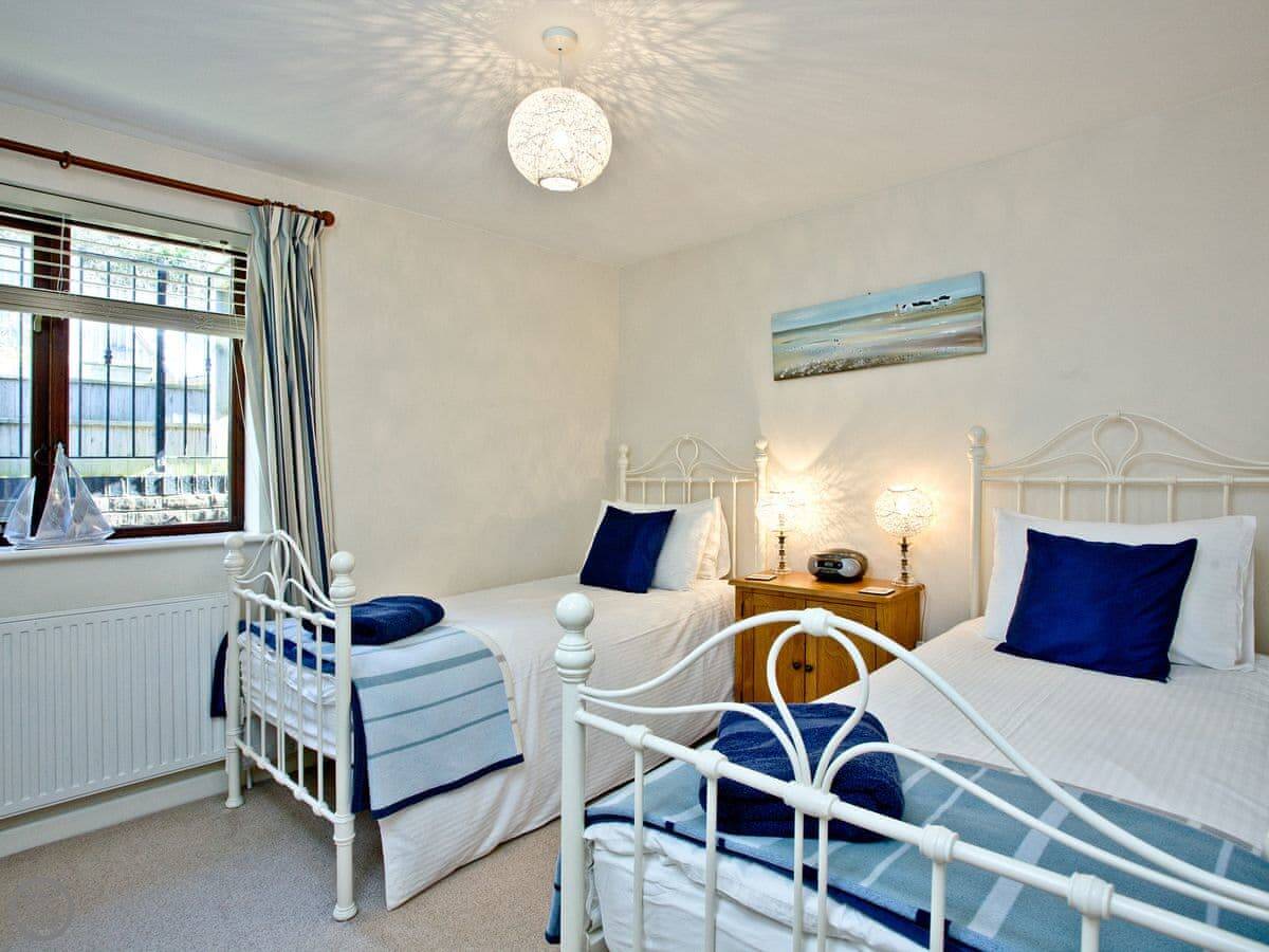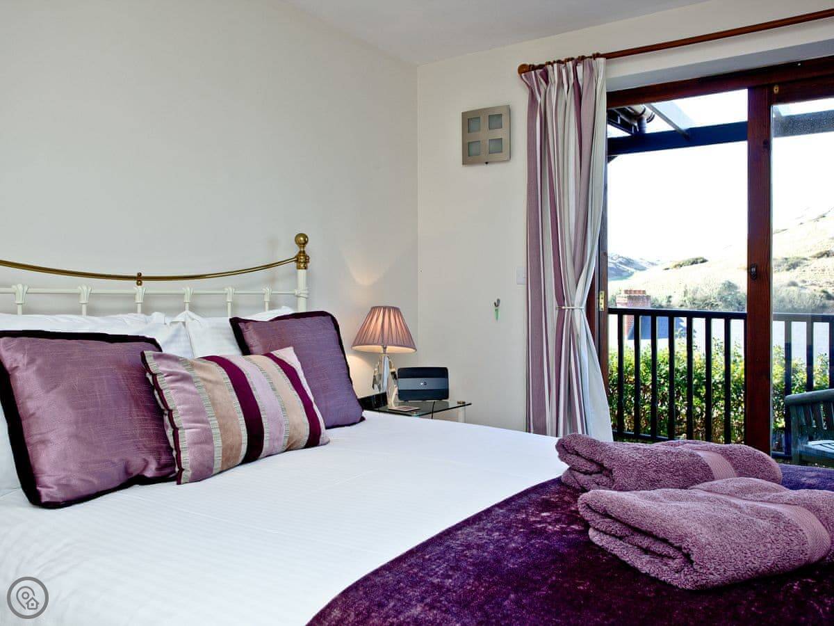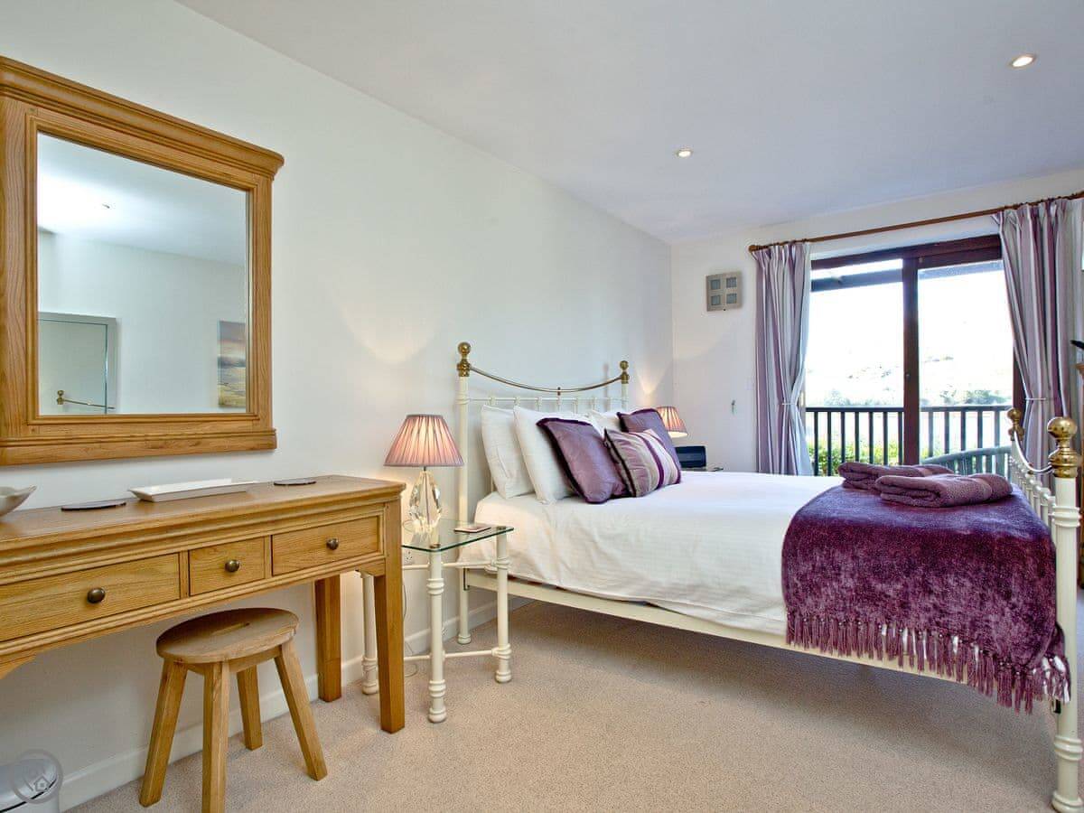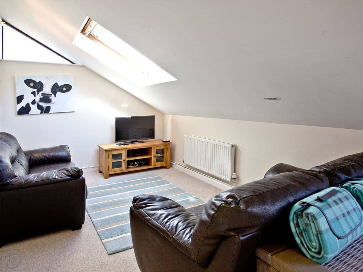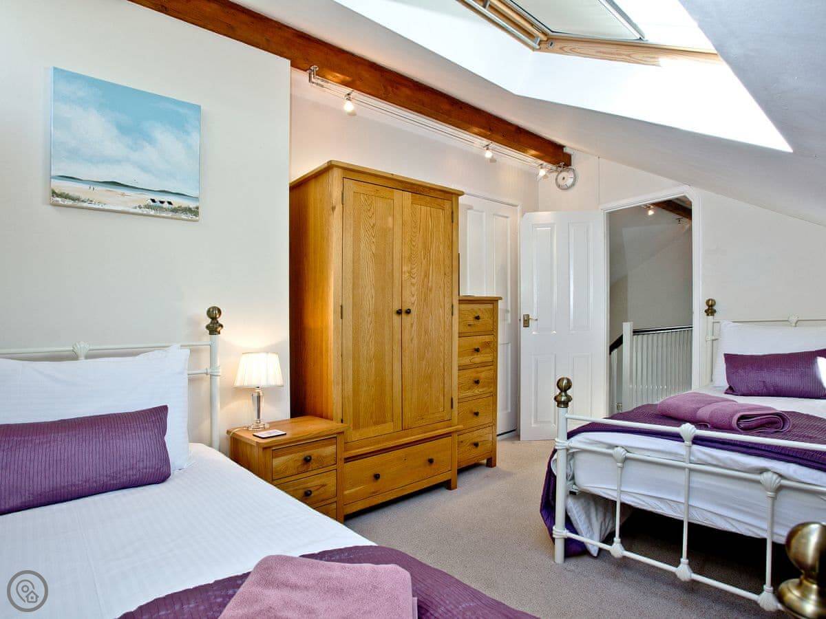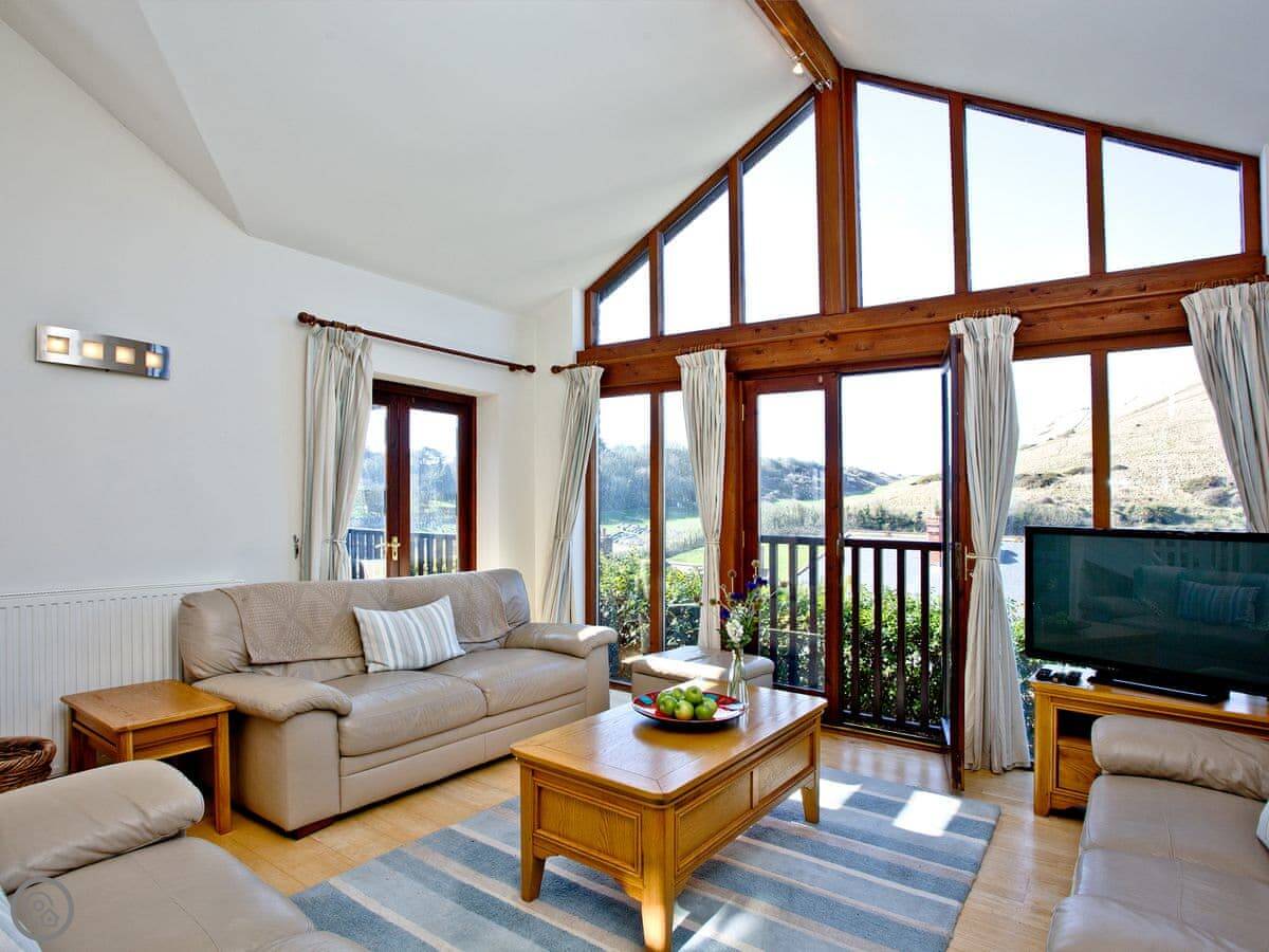 It sleeps eight people. Four bedrooms, three bathrooms, so that usually works out alright. The living space is big, and there's an extra little furnished area up on the gallery landing if someone wants a quiet spot. It's got a 4 Star rating.