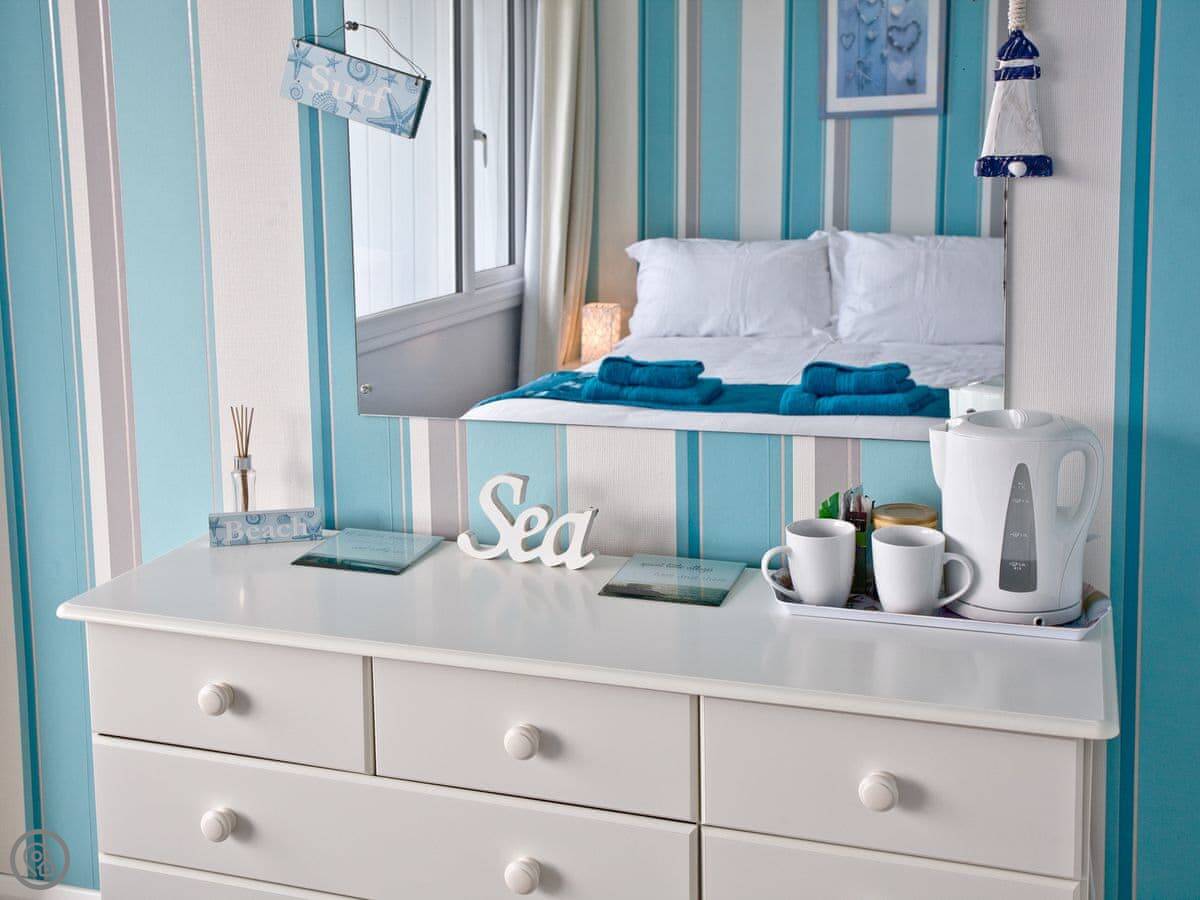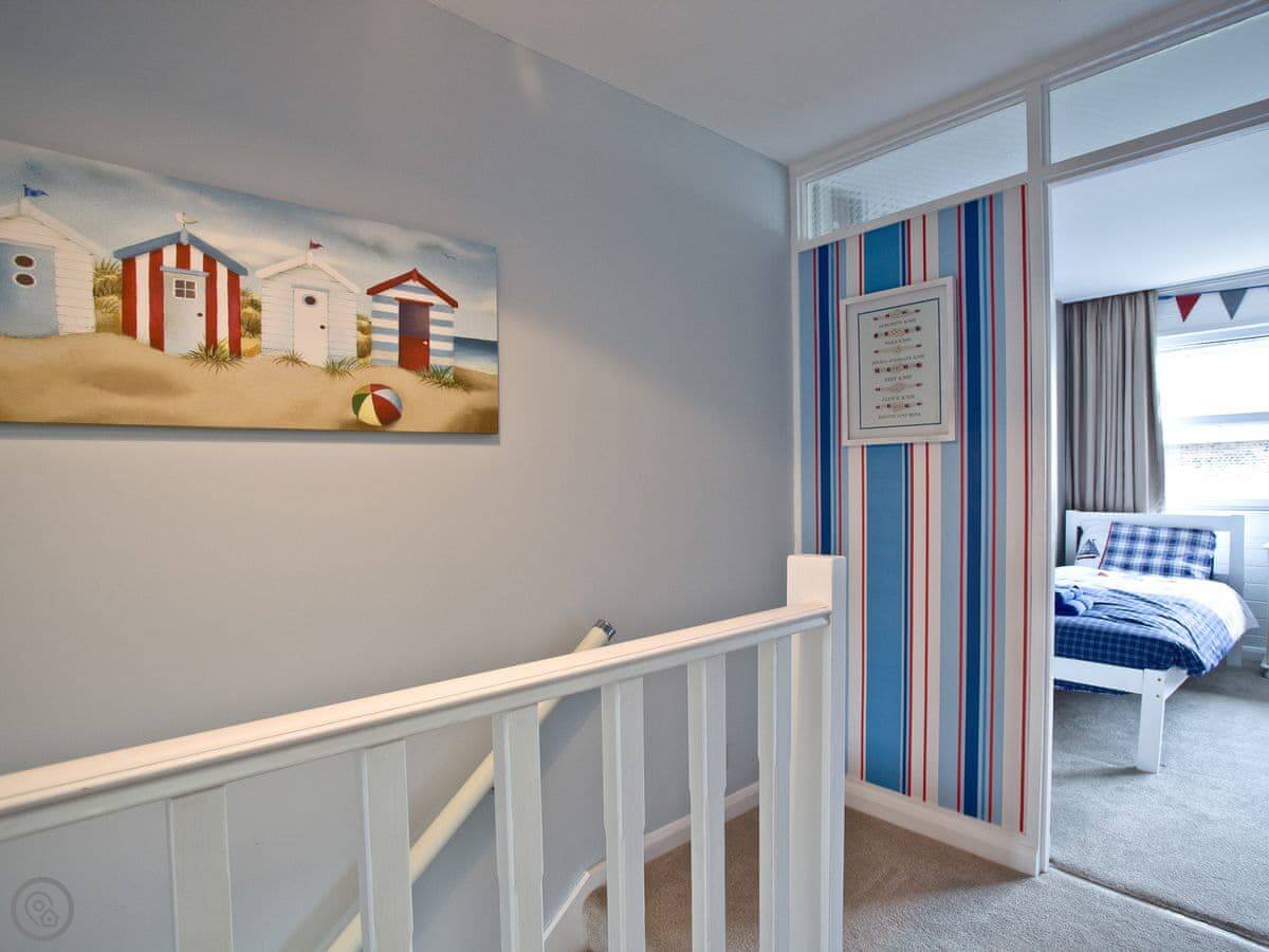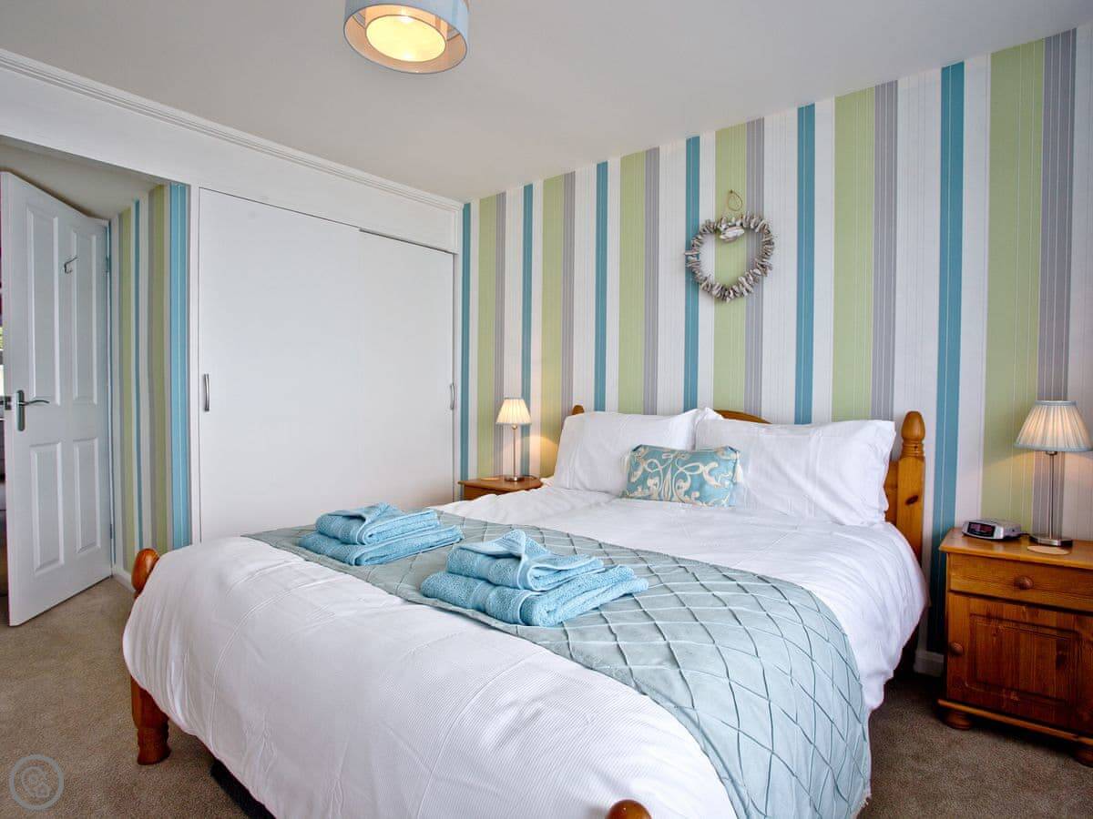 It sleeps six, in three bedrooms. There are two bathrooms, one is en-suite to a bedroom on the ground floor. The other two bedrooms are up on the top floor. The master bedroom has a small balcony.