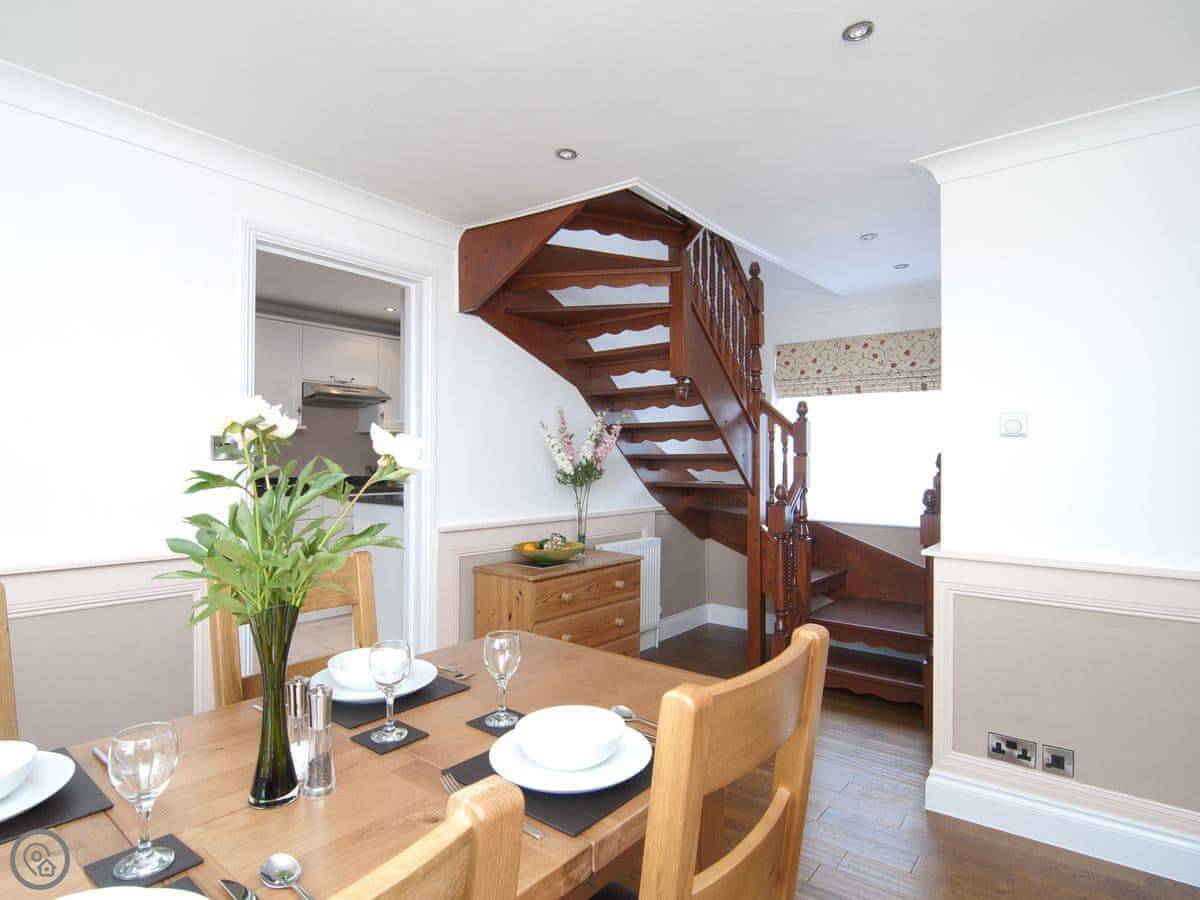 The stairs inside are a bit steep. They're not spiral, but they are cottage stairs and they're open on one side. Just so you know.