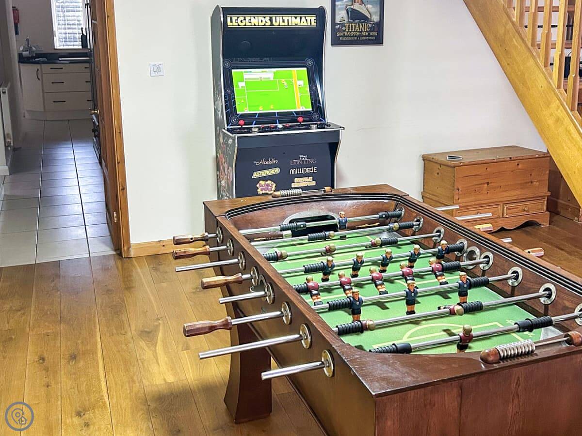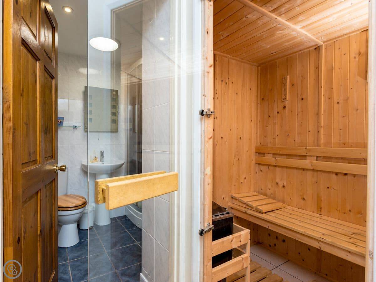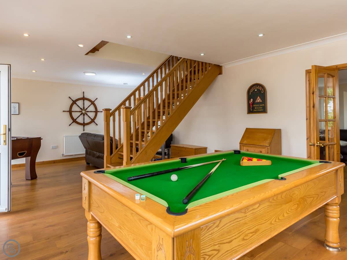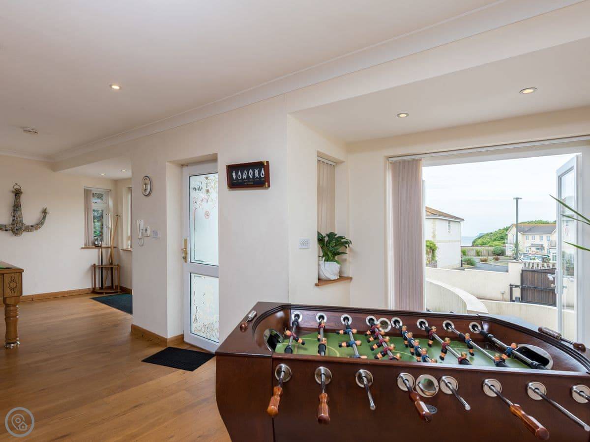 There's a games room with a pool table and a sauna. Outside, there's a patio on two levels at the front and a balcony off two of the bedrooms.
