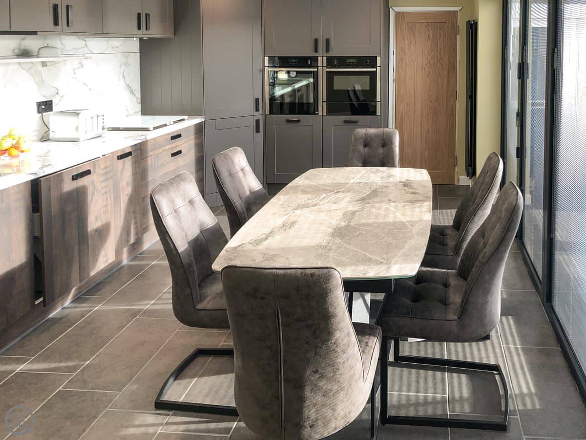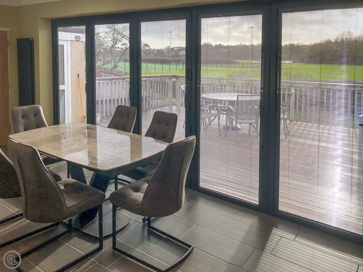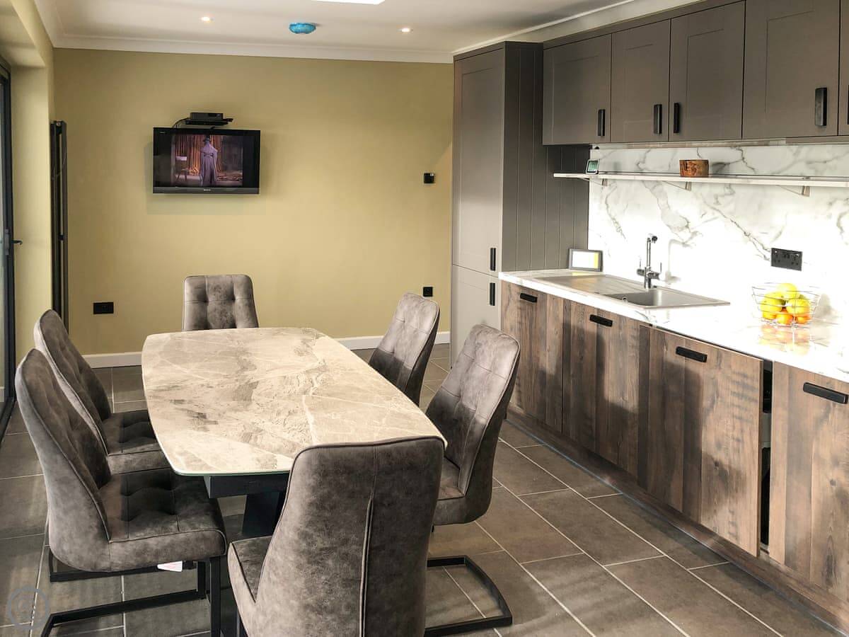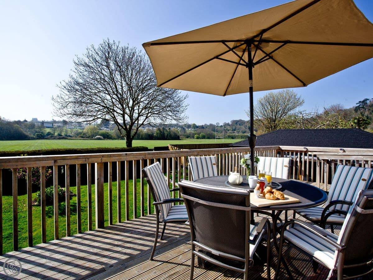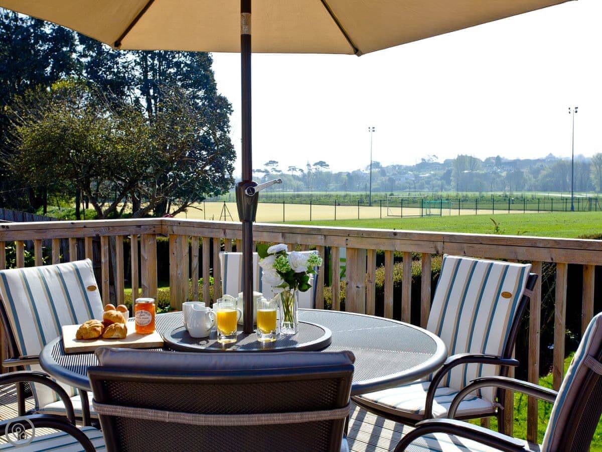 The garden is a proper feature. It's got a deck with a table and chairs, and a covered hot tub that's private to you. You're allowed up to two dogs.