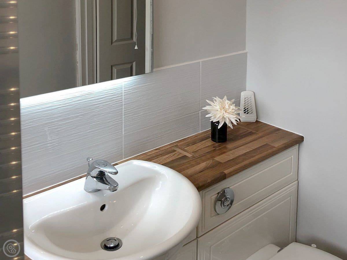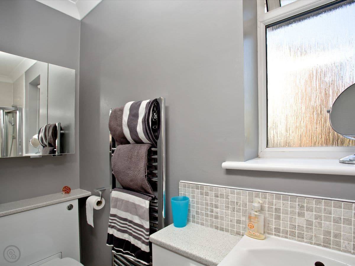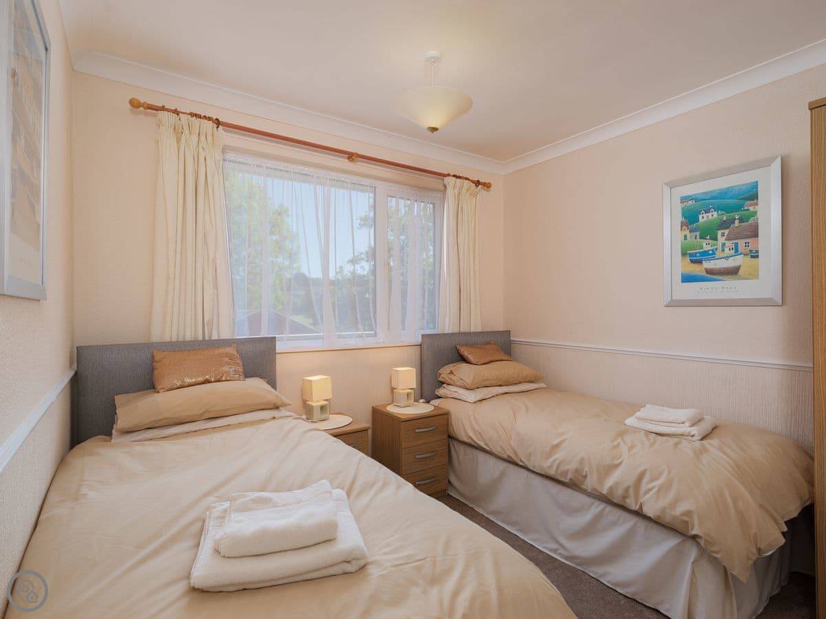 It sleeps six. Three bedrooms, two bathrooms. It's a 4 Star, so it's well looked after. The living room and kitchen are both a good size.
