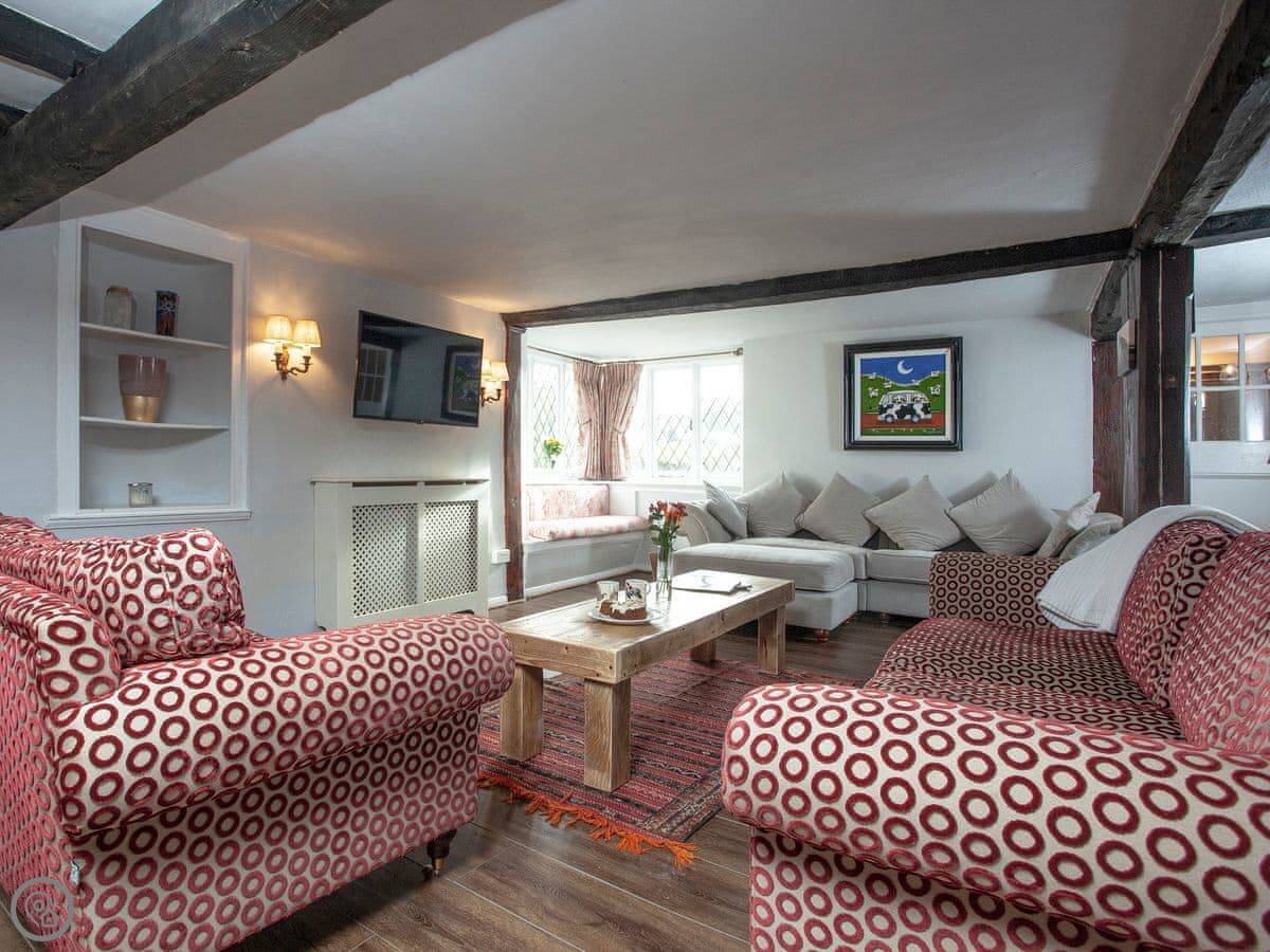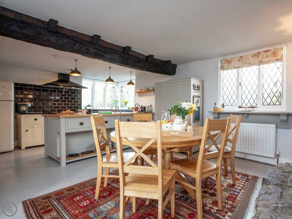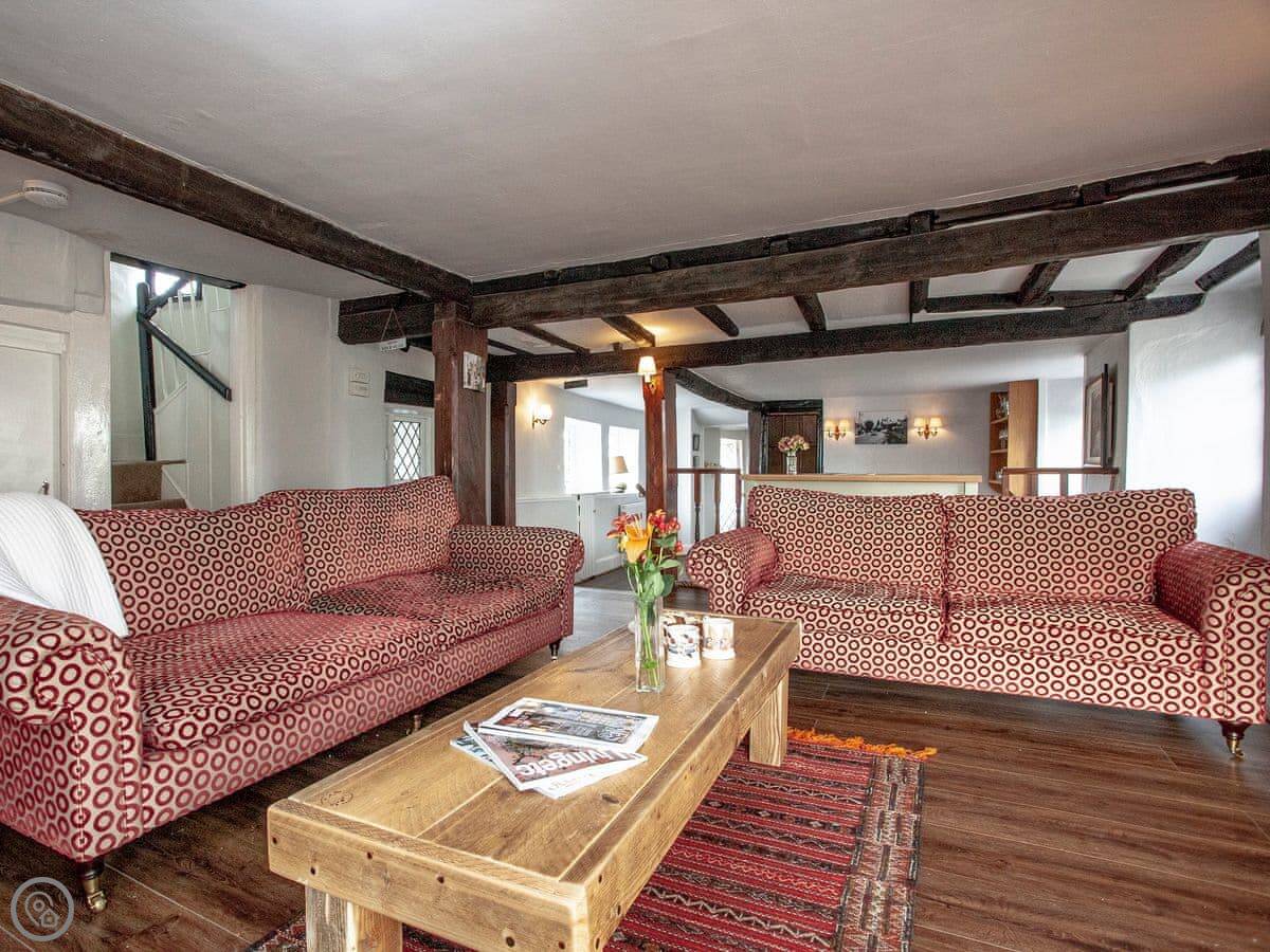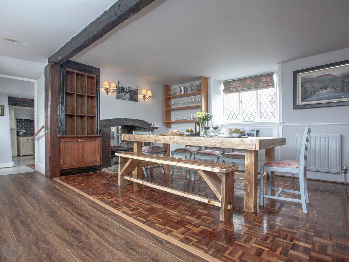 Thatched Cottage is in Kingsteignton, which is just outside Newton Abbot. It's a detached house. It used to be a restaurant, so the main room downstairs is very big. It sleeps twelve, in six bedrooms. Each bedroom has a TV. There are five bathrooms, which helps with a group that size.