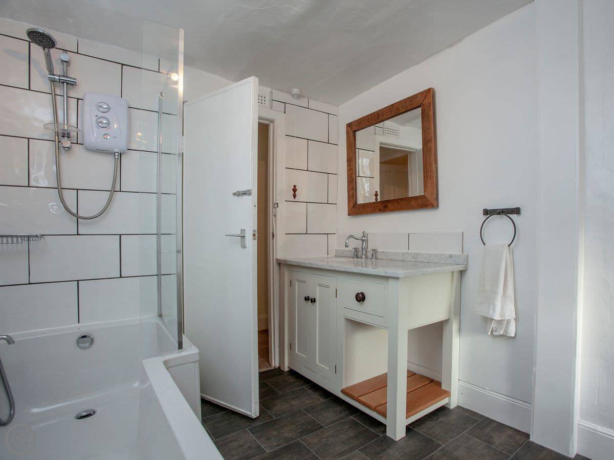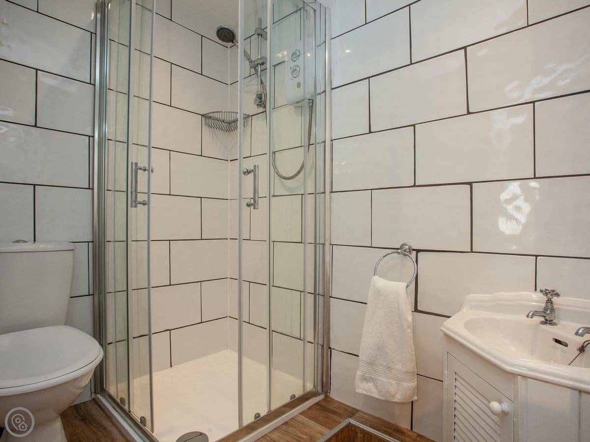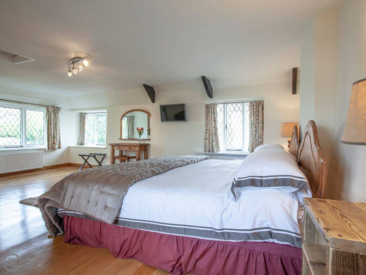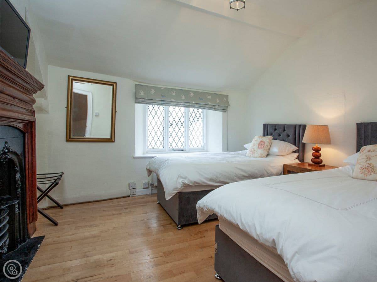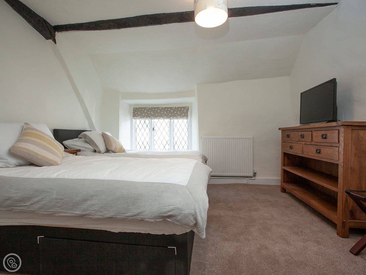 Thatched Cottage is in Kingsteignton, which is just outside Newton Abbot. It's a detached house. It used to be a restaurant, so the main room downstairs is very big. It sleeps twelve, in six bedrooms. Each bedroom has a TV. There are five bathrooms, which helps with a group that size.