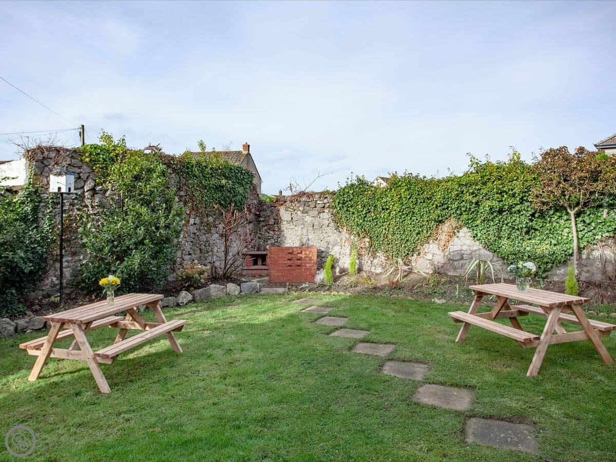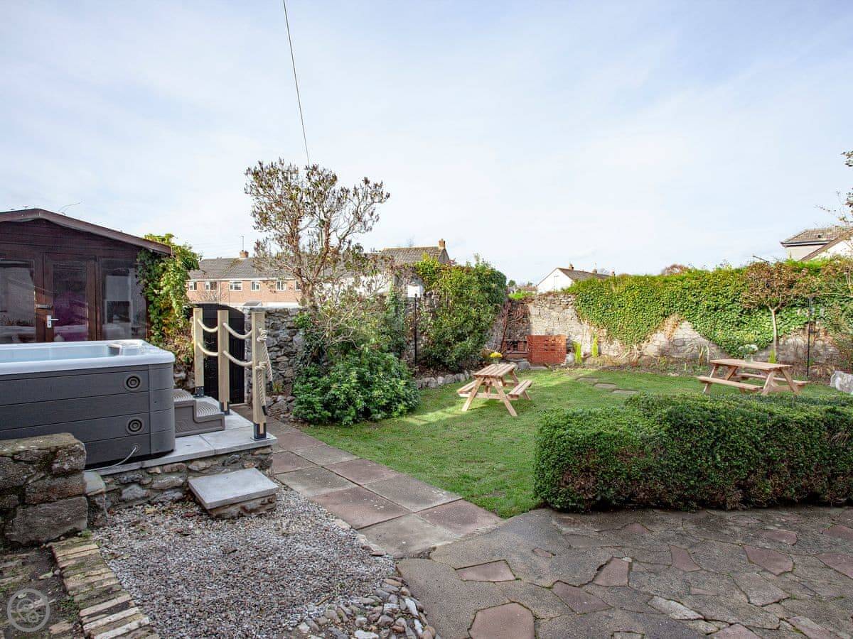 The garden is walled, so it's fully enclosed. There's a hot tub out there that fits five people, a barbecue, and some picnic benches. It's a good space if you've got dogs.