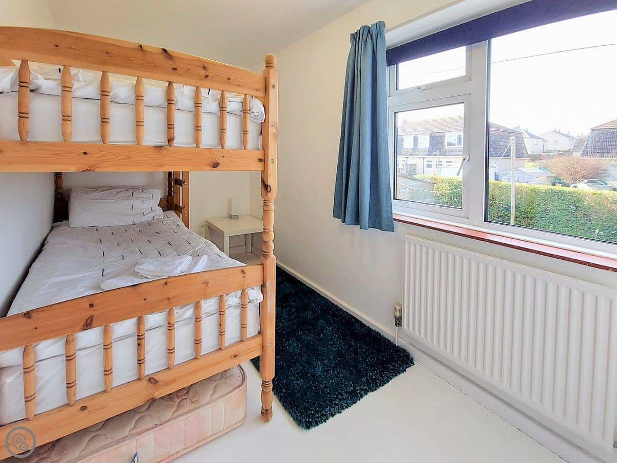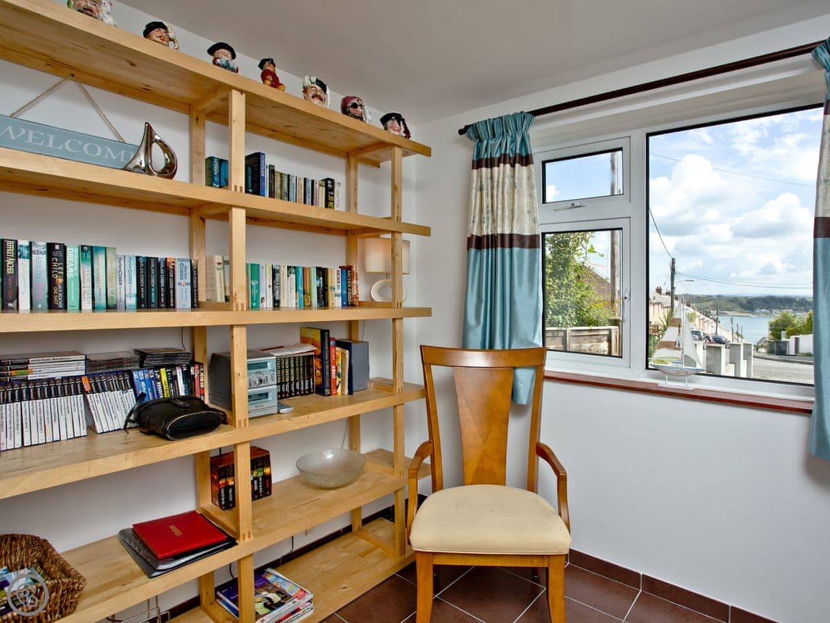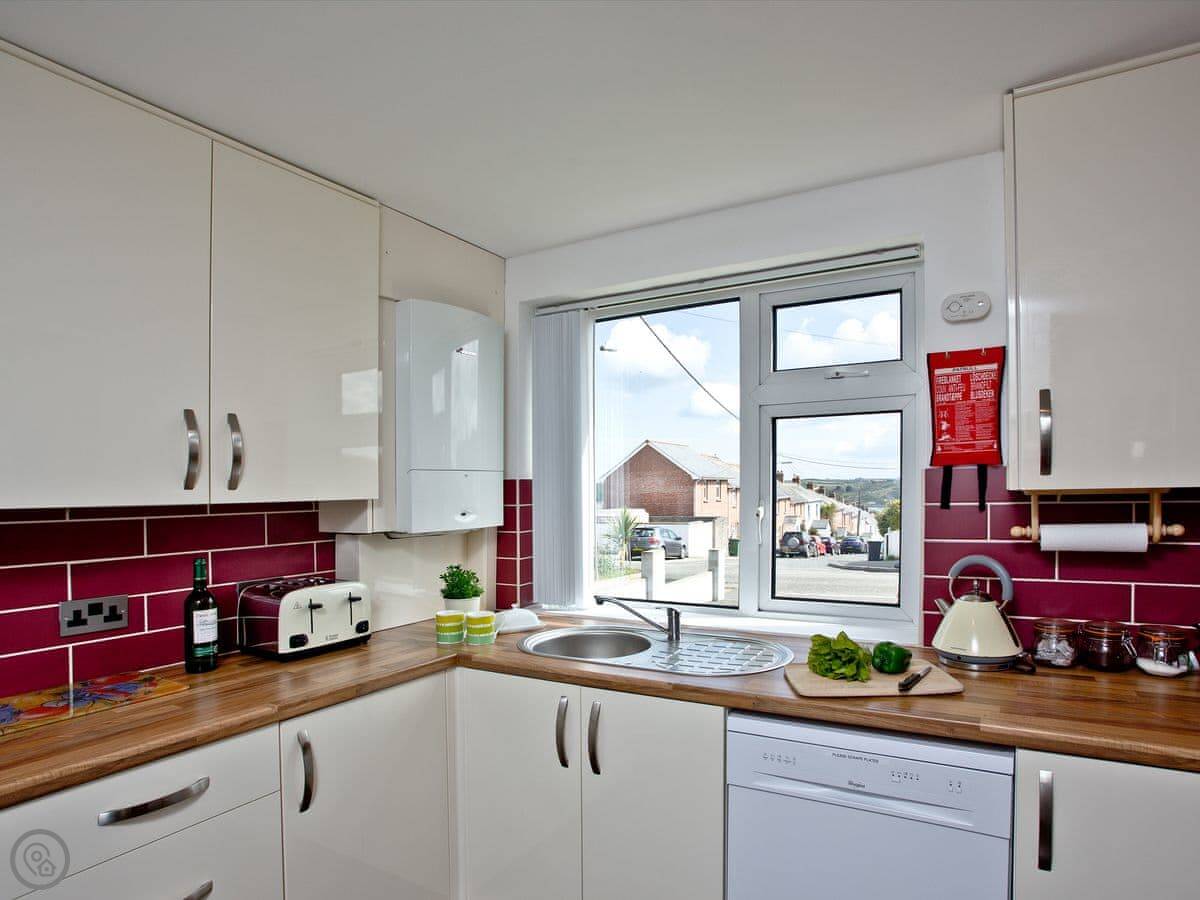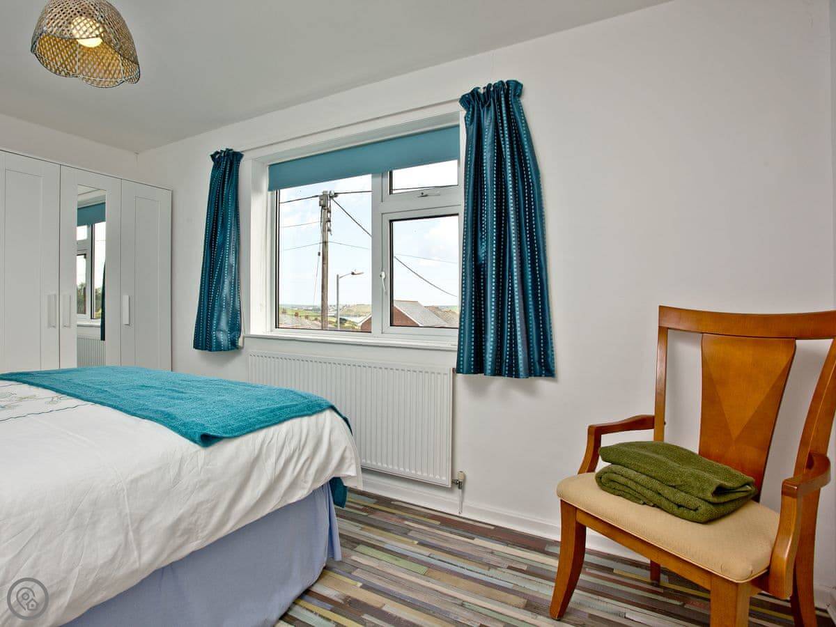 You can see the sea from the front windows. The beach is about a mile’s walk. The harbour is closer, maybe a 10 minute walk down the hill. There are a few pubs and restaurants along the way.