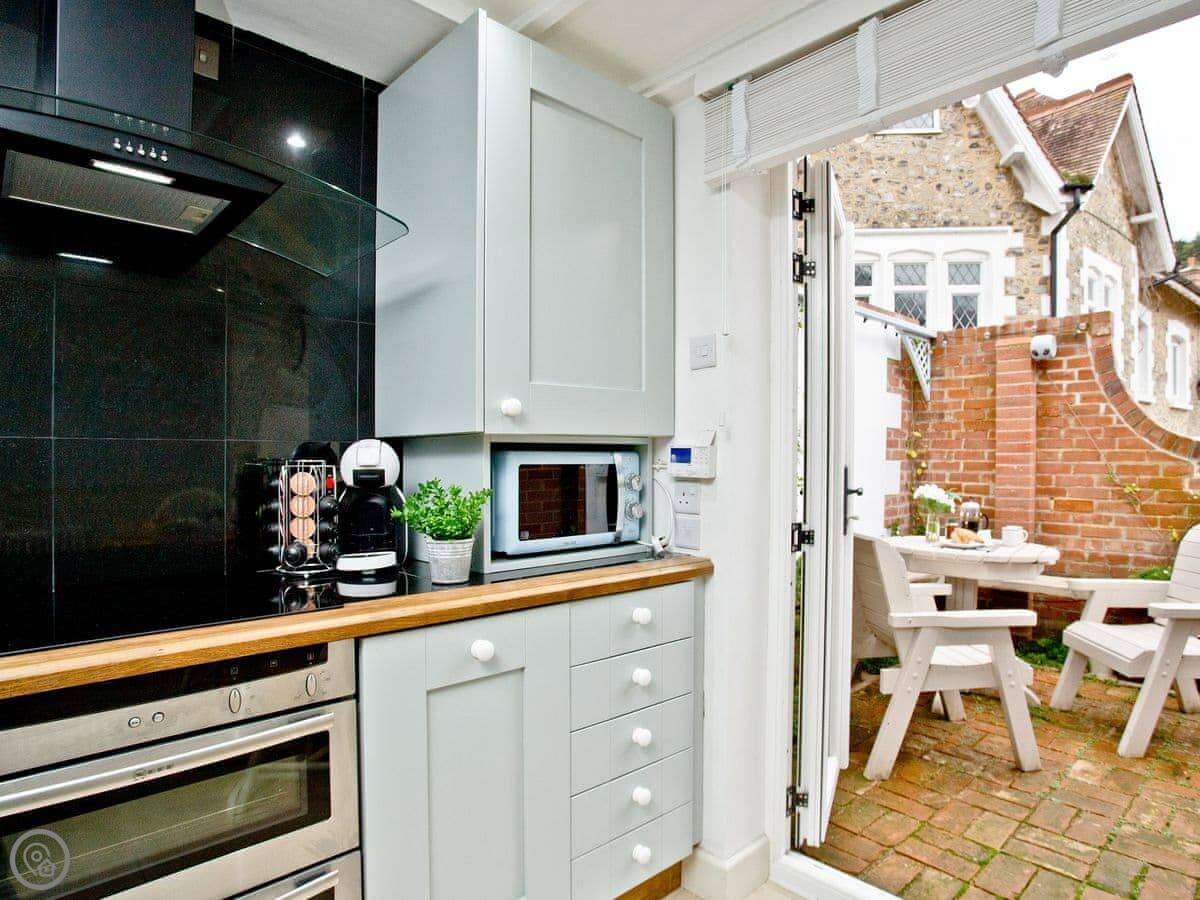 Inside, it's all been refurbished. There's a dishwasher, a washing machine, and a coffee machine. The bedding is good quality. Bathrobes and toiletries are provided.