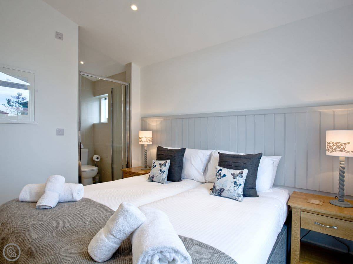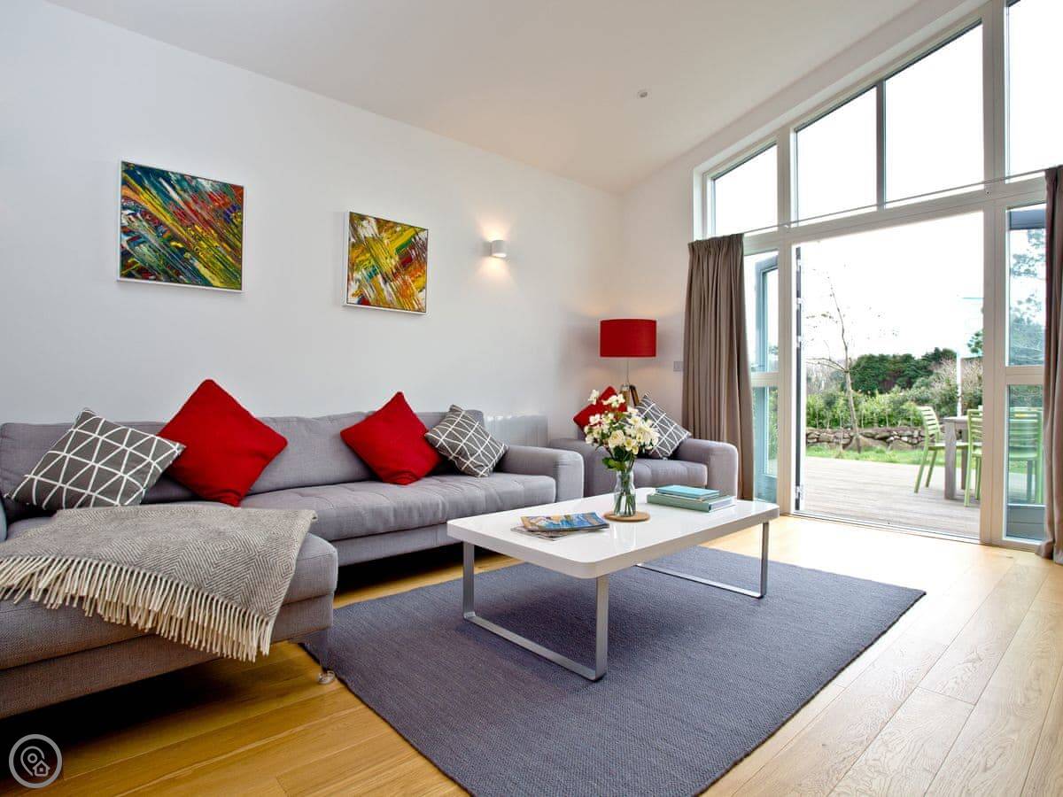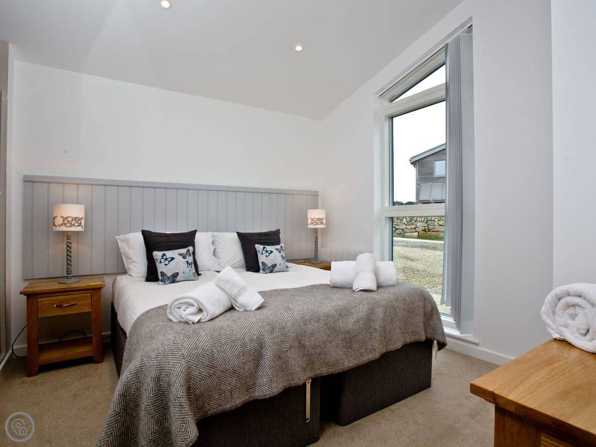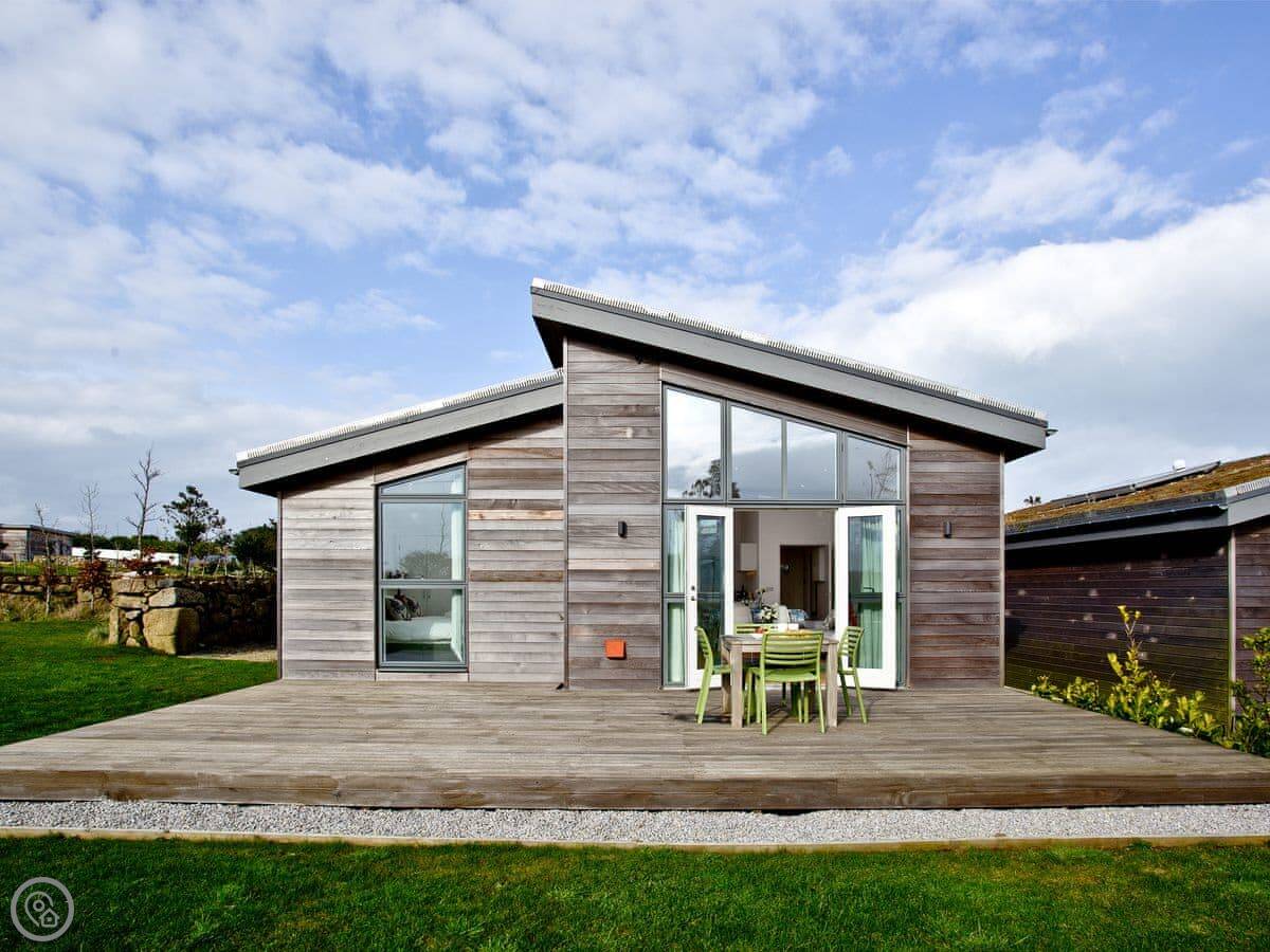 Una Argentum 63 is a modern eco lodge on the Una Leisure site just outside Carbis Bay in Cornwall. It's a detached single-storey place, so everything's on one level. It sleeps four, with two bedrooms and two bathrooms.