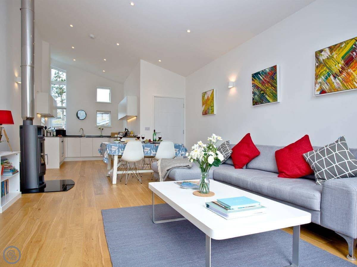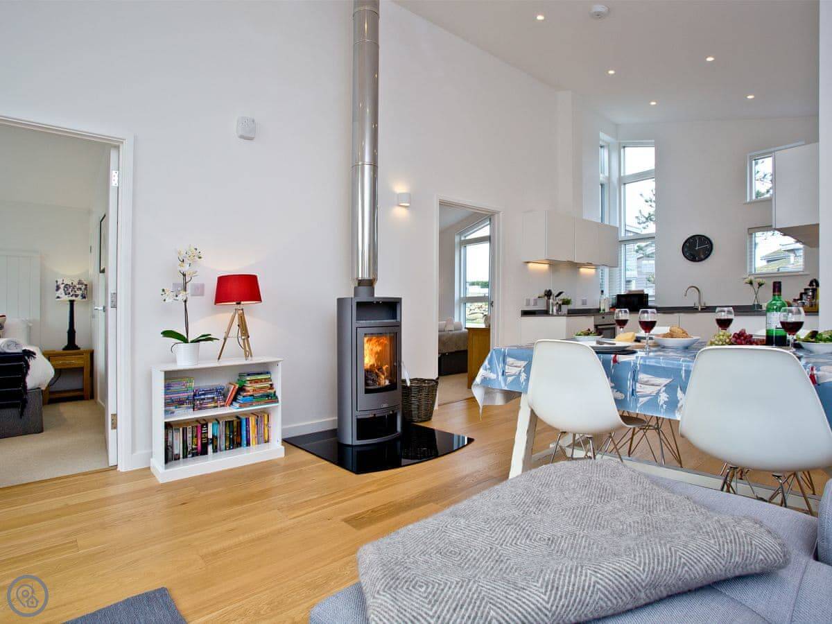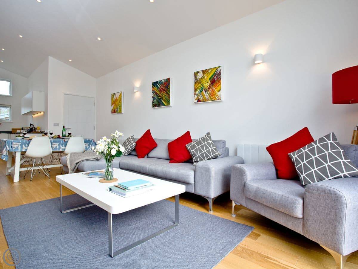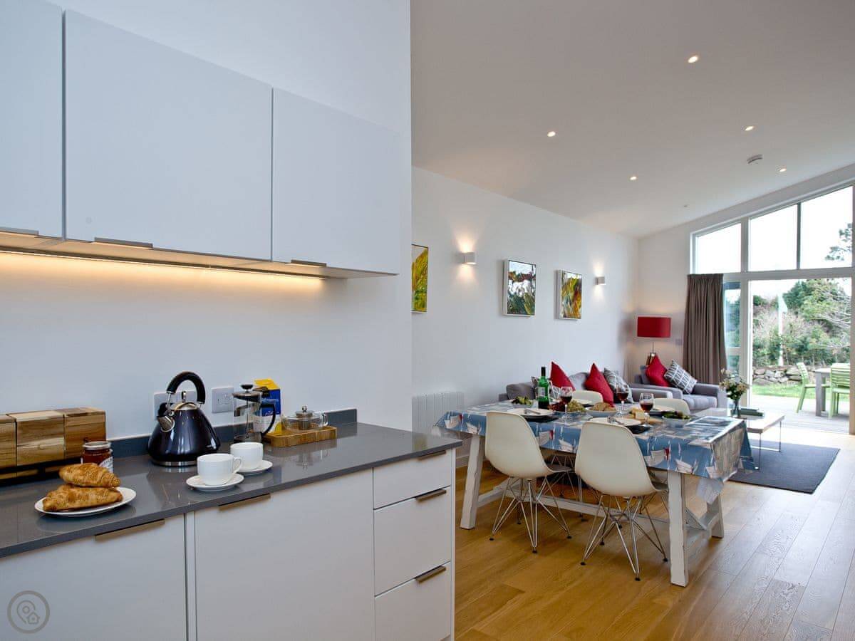 Una Argentum 63 is a modern eco lodge on the Una Leisure site just outside Carbis Bay in Cornwall. It's a detached single-storey place, so everything's on one level. It sleeps four, with two bedrooms and two bathrooms.