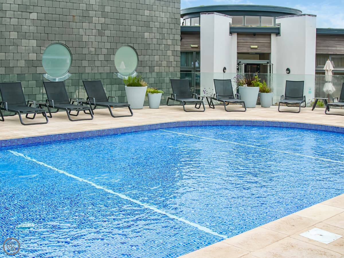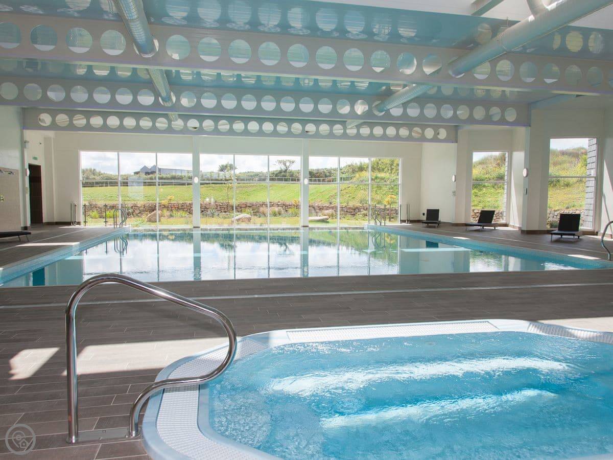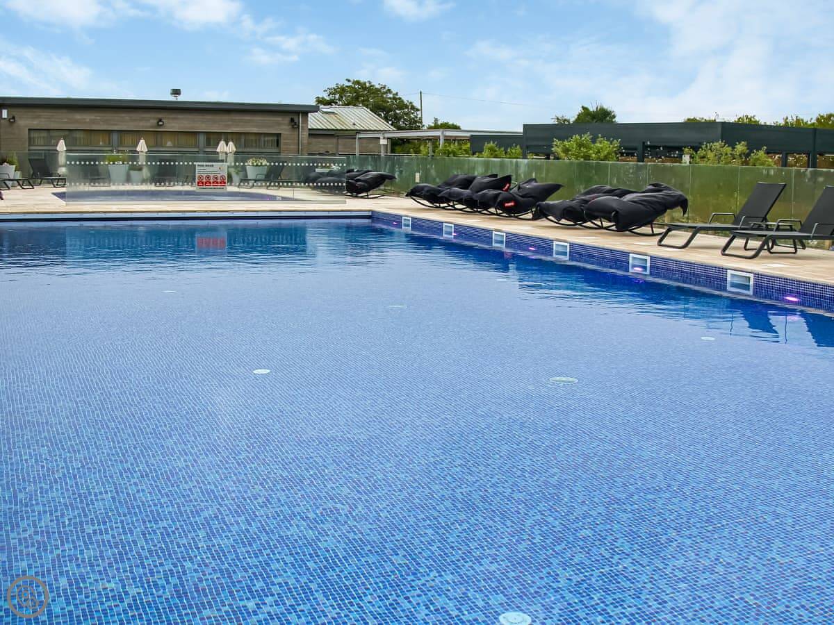 It's a 5 Star place, which means it's well finished and has good fittings. The main thing here is you get included use of the site's leisure facilities. There's a big heated outdoor pool, an indoor infinity pool, a steam room, a sauna, and a gym. They're in a separate building a short walk from the lodge.