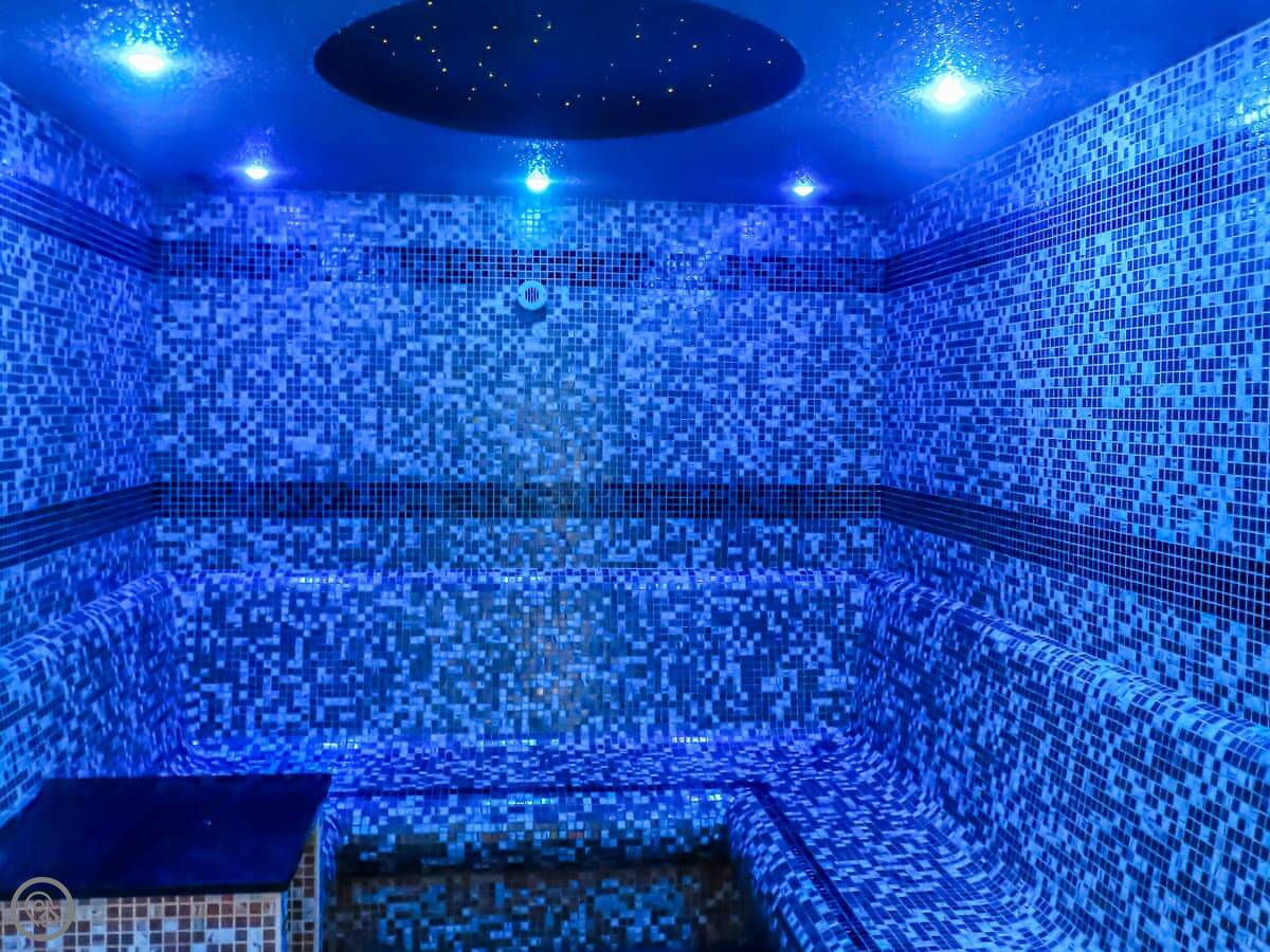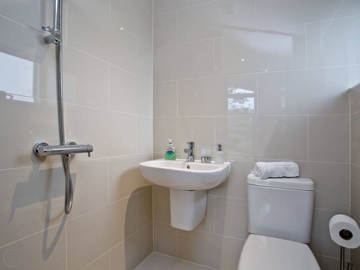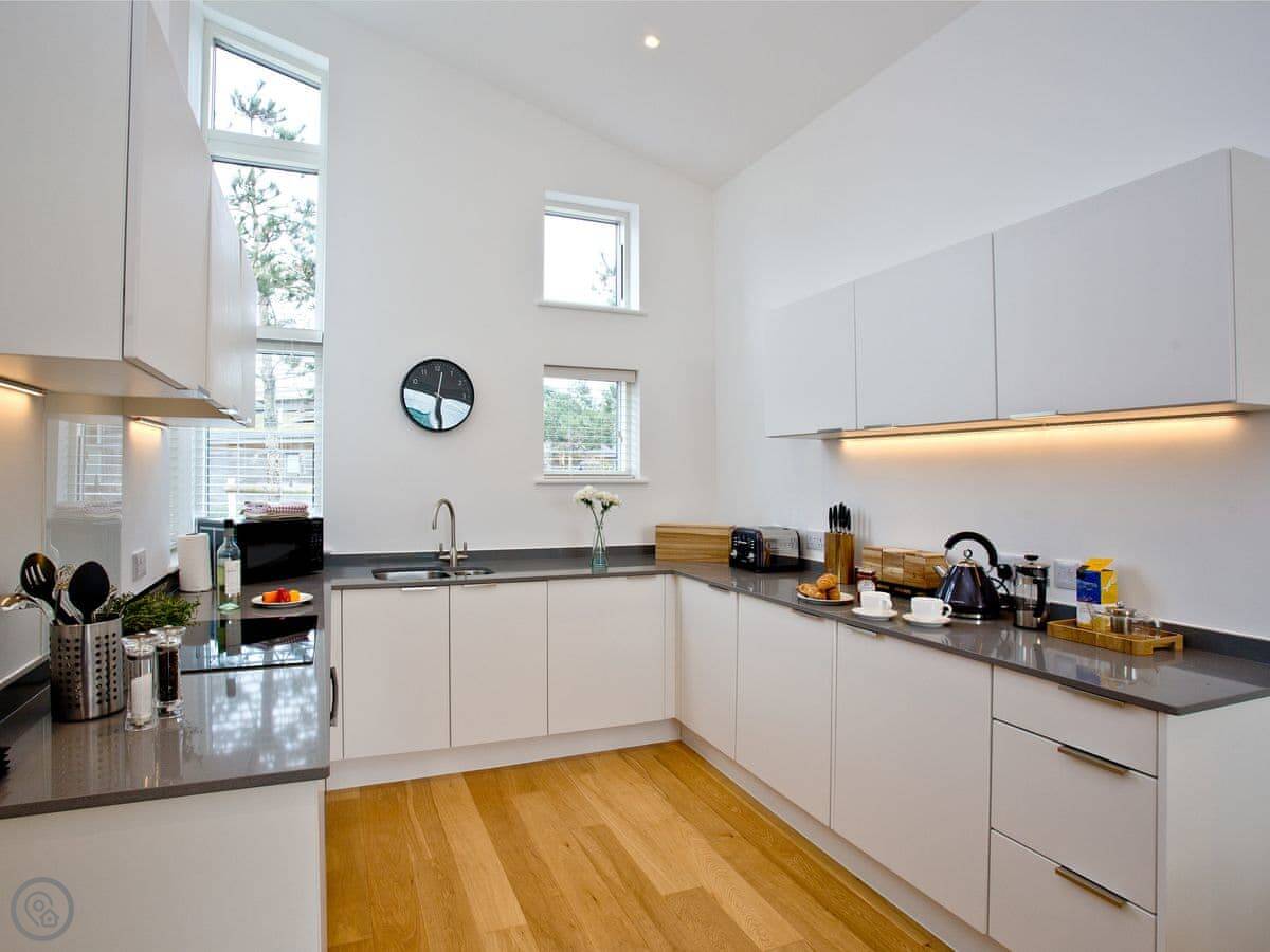 It's a 5 Star place, which means it's well finished and has good fittings. The main thing here is you get included use of the site's leisure facilities. There's a big heated outdoor pool, an indoor infinity pool, a steam room, a sauna, and a gym. They're in a separate building a short walk from the lodge.
