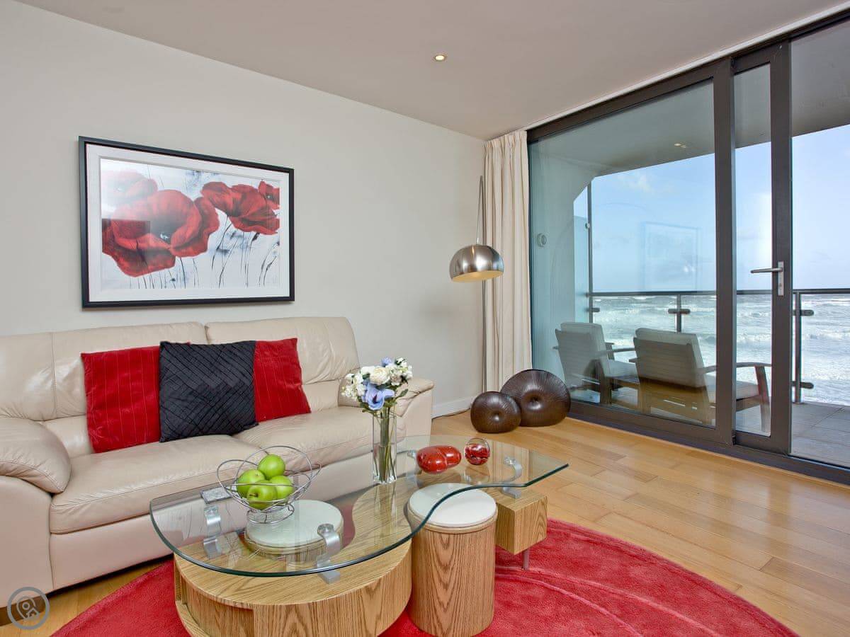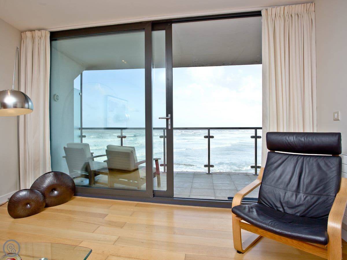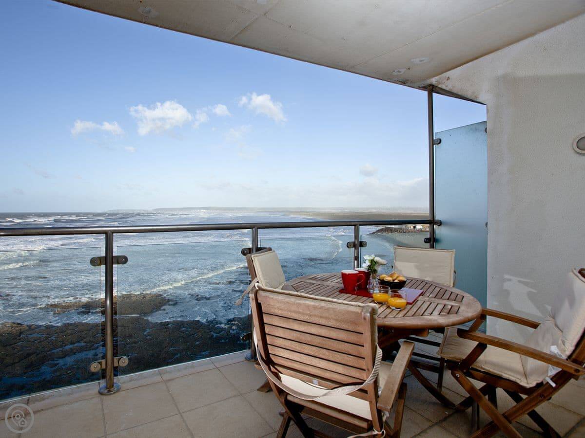 Apartment 50 is in Westward Ho! It’s on the front, so you look straight out over the beach and the sea. It’s a second-floor flat.
