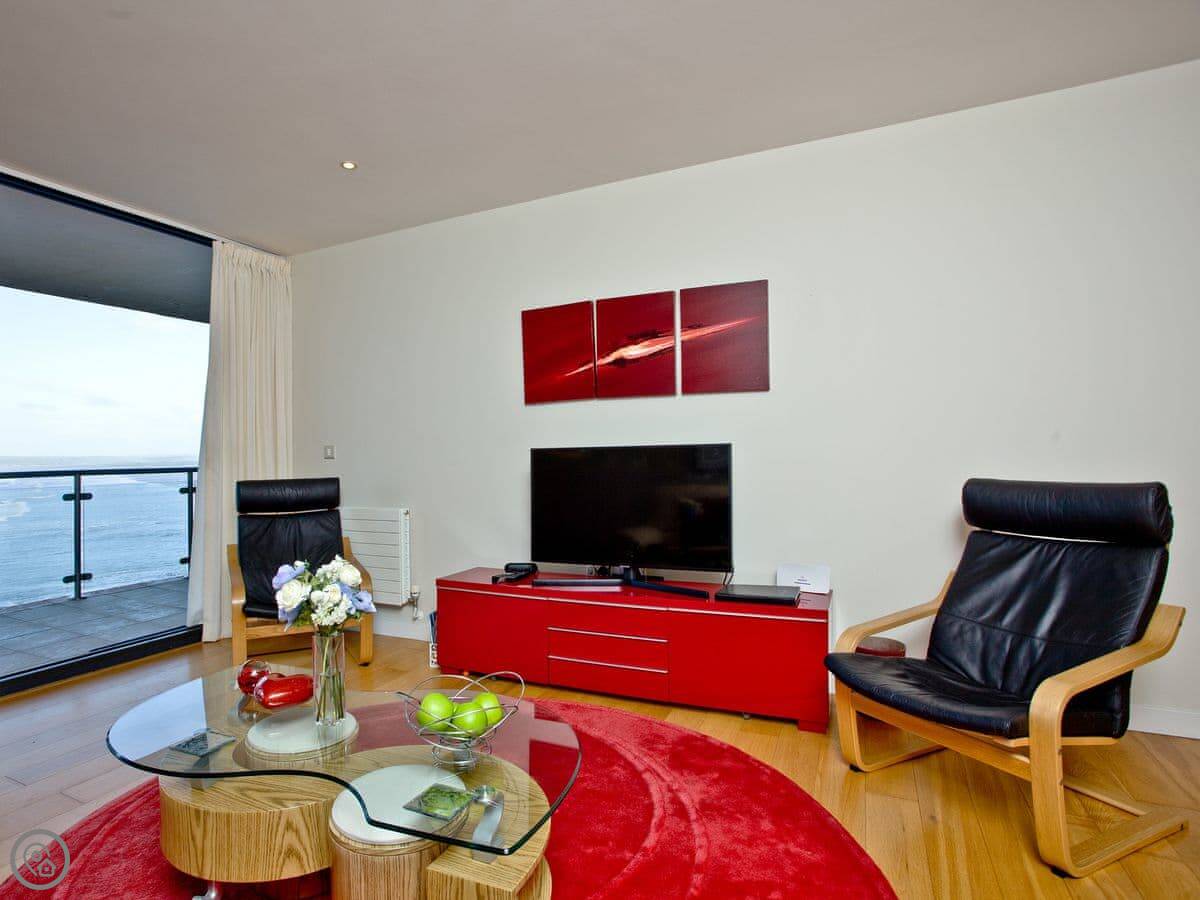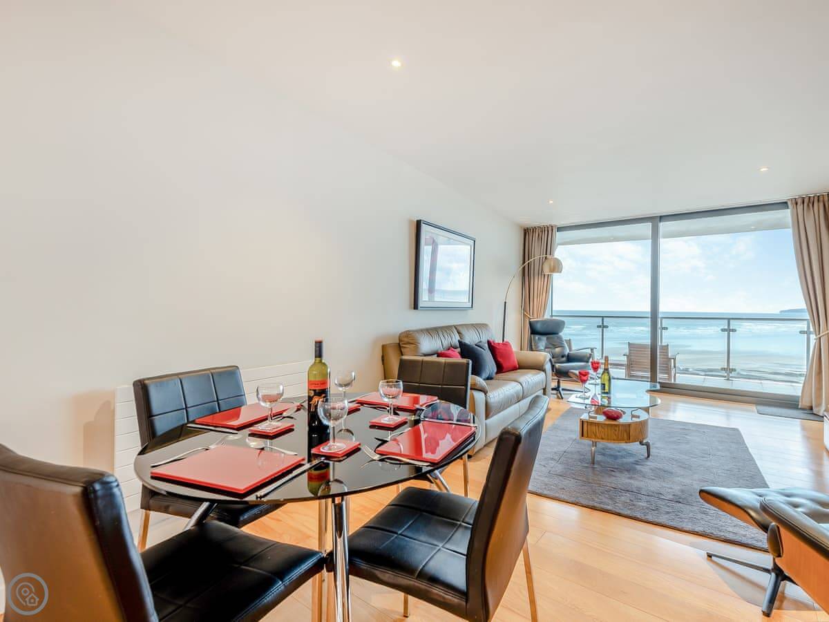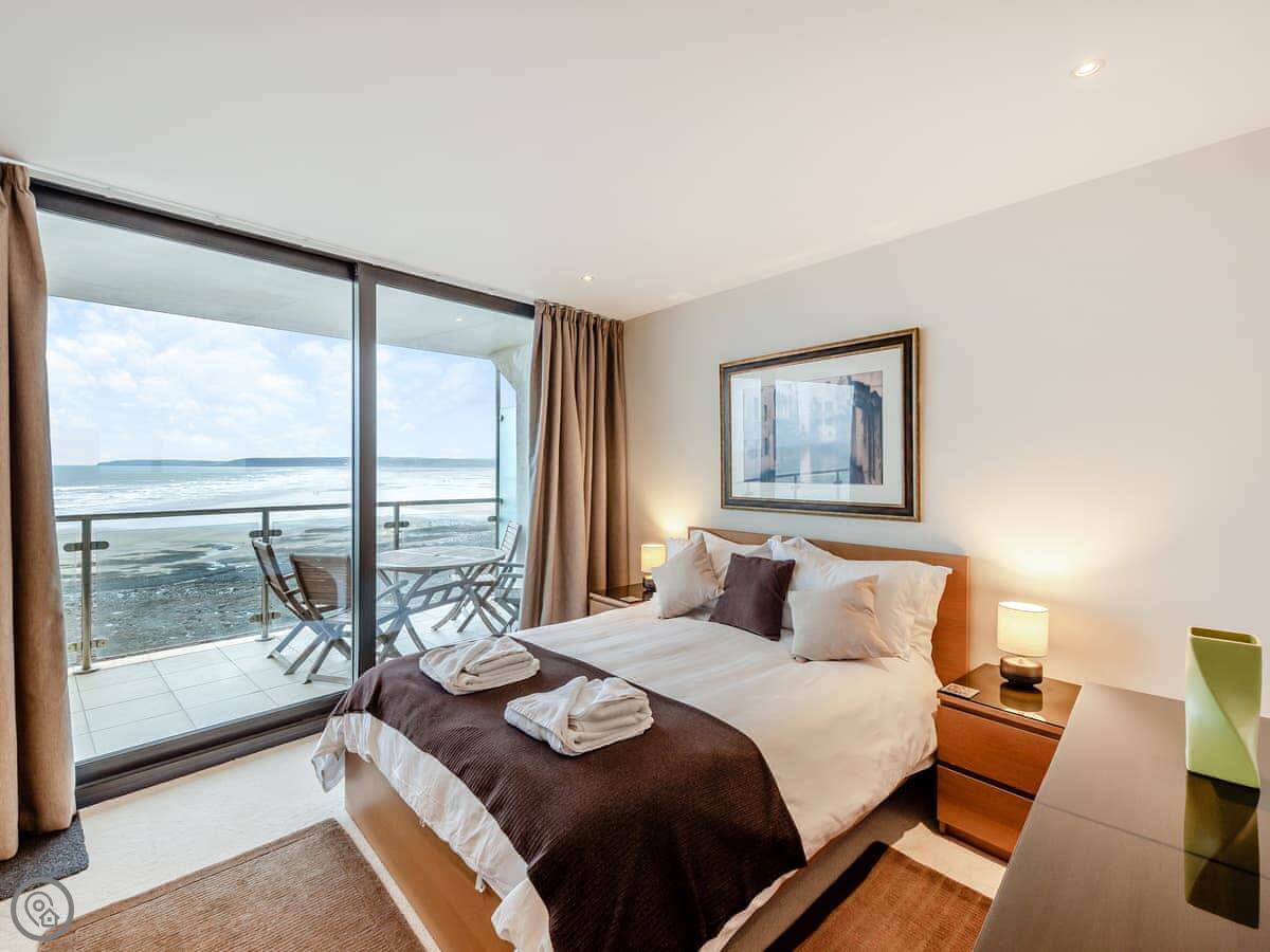 Apartment 50 is in Westward Ho! It’s on the front, so you look straight out over the beach and the sea. It’s a second-floor flat.