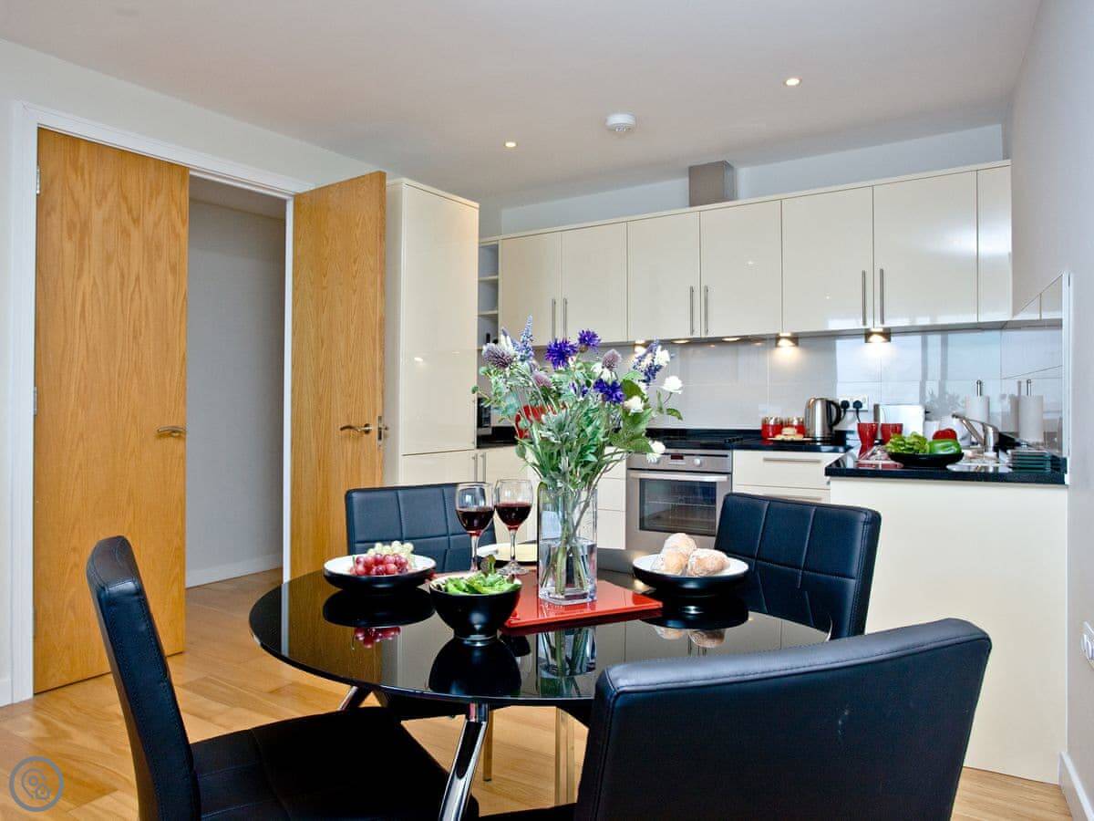 The flat has a washing machine, dishwasher, WiFi, and parking is included. Bedding and towels are provided. There’s a cot and highchair if you’re bringing a little one. No pets.