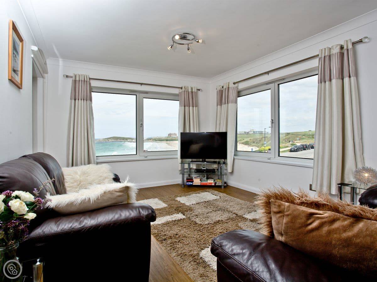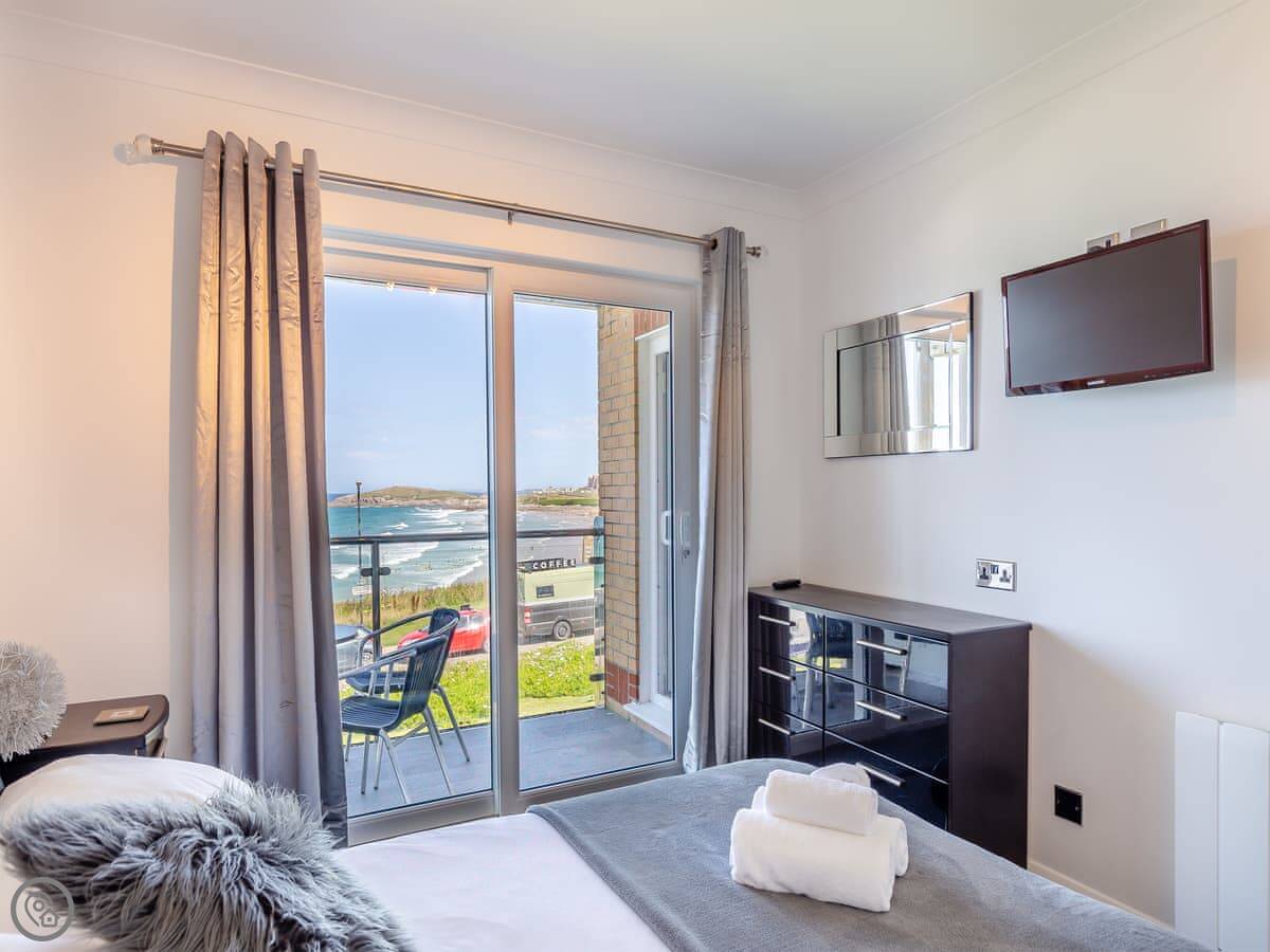Waters Edge is a modern first floor apartment with stunning views over Fistral Beach and out to sea