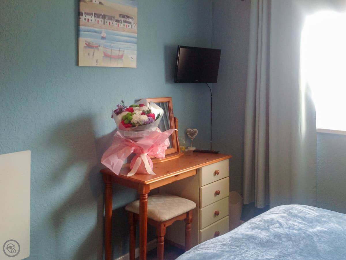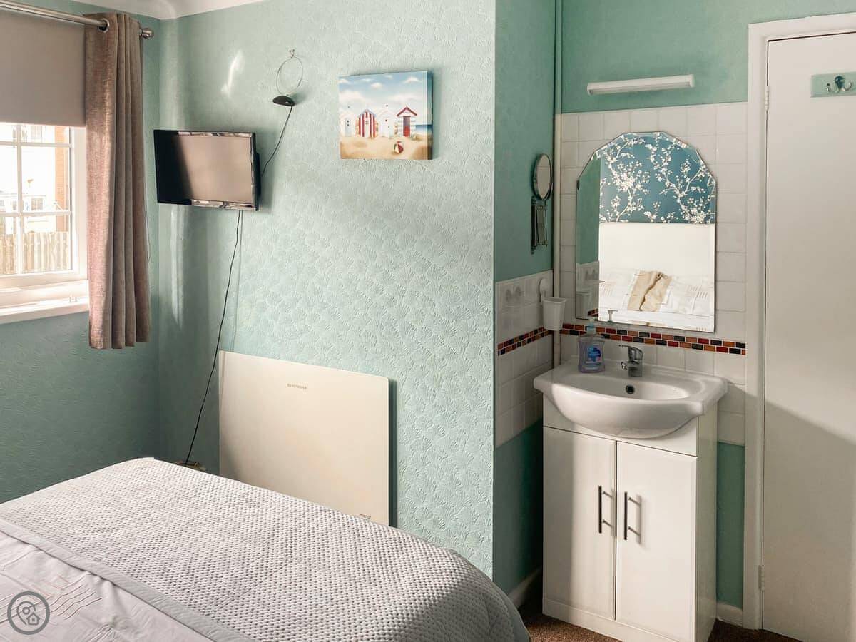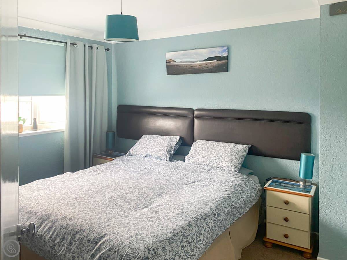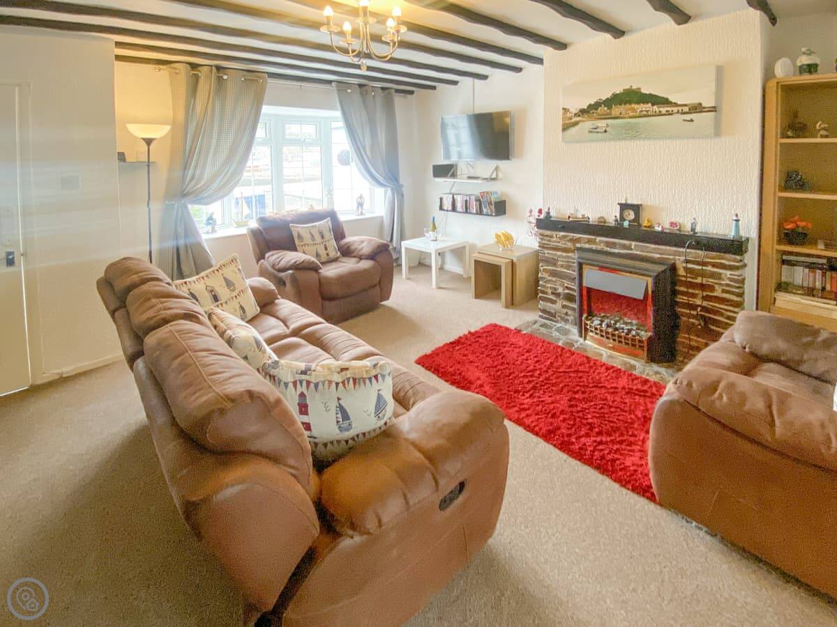 It sleeps five. Three bedrooms and one bathroom. It's got a 4 Star rating, so it's comfortable and well looked after. The living room looks straight out over the sand.