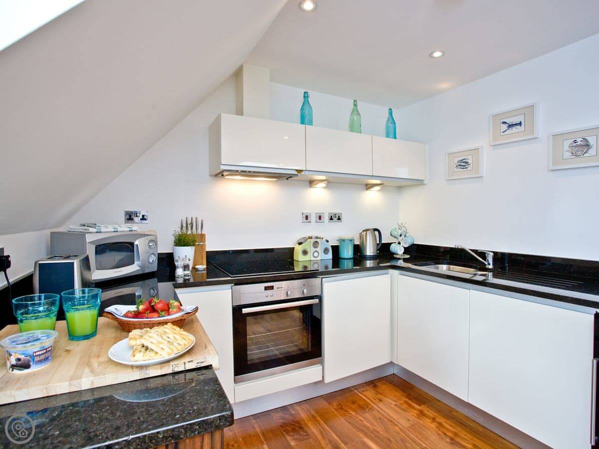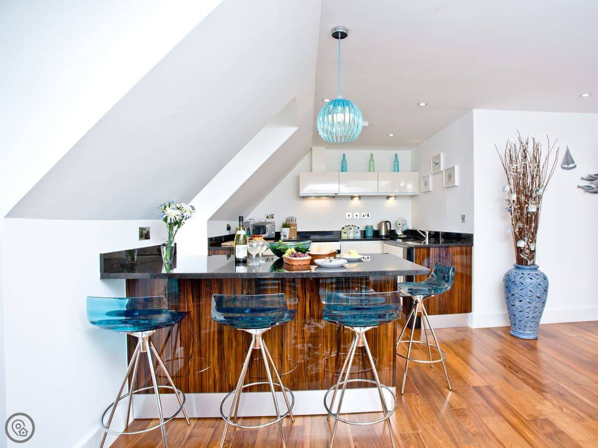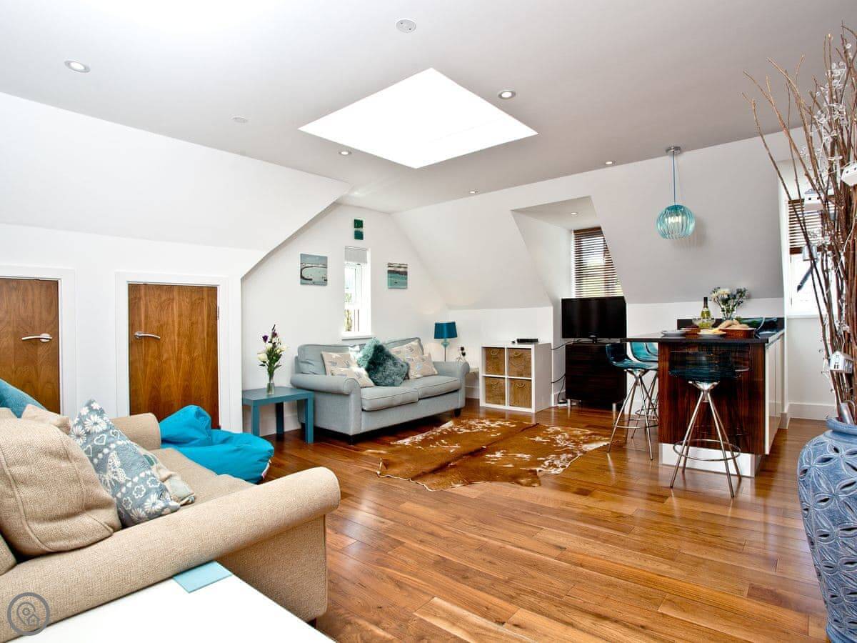 Number 9 The Whitehouse is in Tregurrian, which is a small place just inland from Watergate Bay. It's a penthouse apartment, so it's on the top floor with views. You share the building with other apartments.