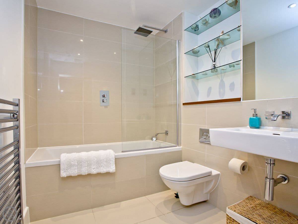 Watergate Bay beach is a few minutes' drive away, or a fifteen to twenty minute walk. It's a good, long sandy beach. Surfing there is popular. The Extreme Academy is based there if you want lessons. There's a pub and a couple of places to eat right on the beach.