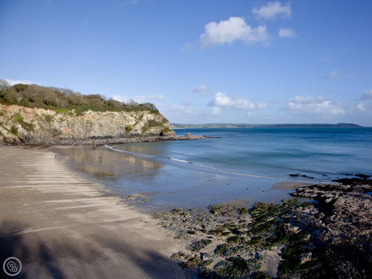 The beach here is shingle and sand, interesting for rocks. For a bigger, sandy beach, Porthpean is about a five minute drive.