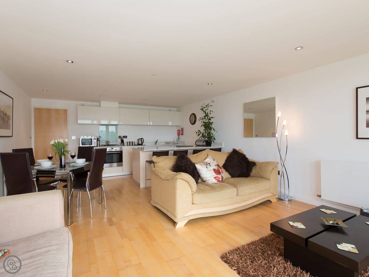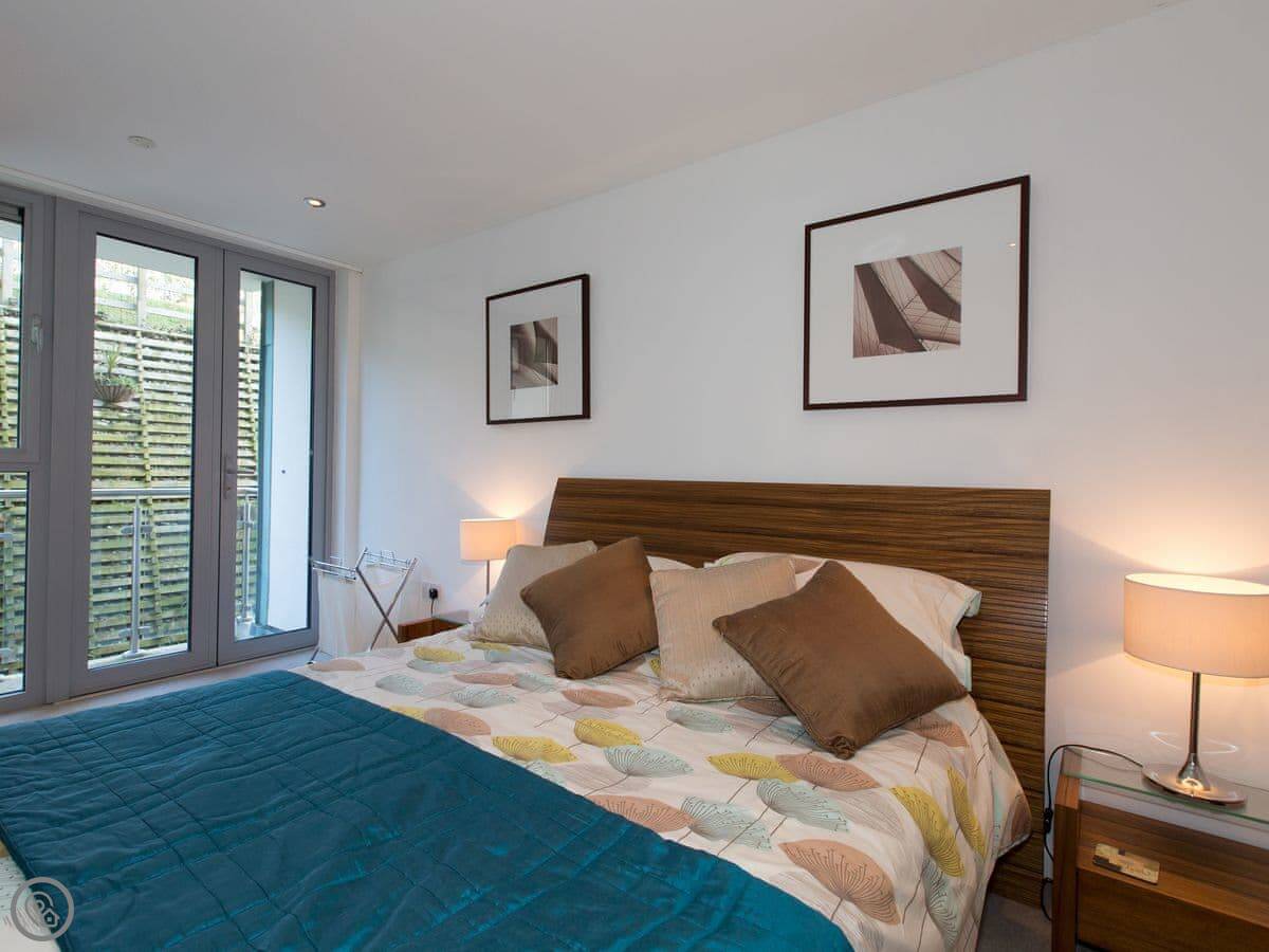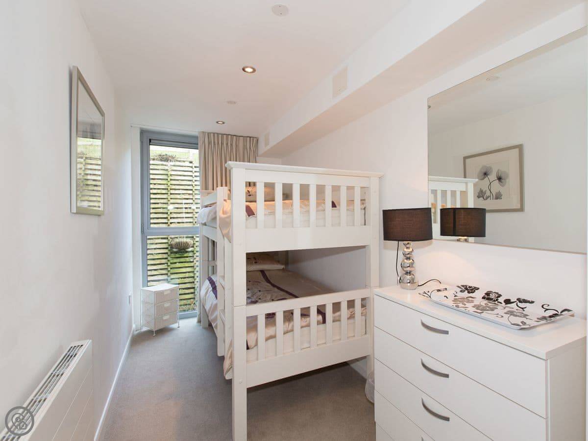 12 Zinc is an apartment in a building on the headland, right above Fistral Beach in Newquay. It's a two bedroom place that sleeps six, with two bathrooms. It's got a 4 Star rating.
