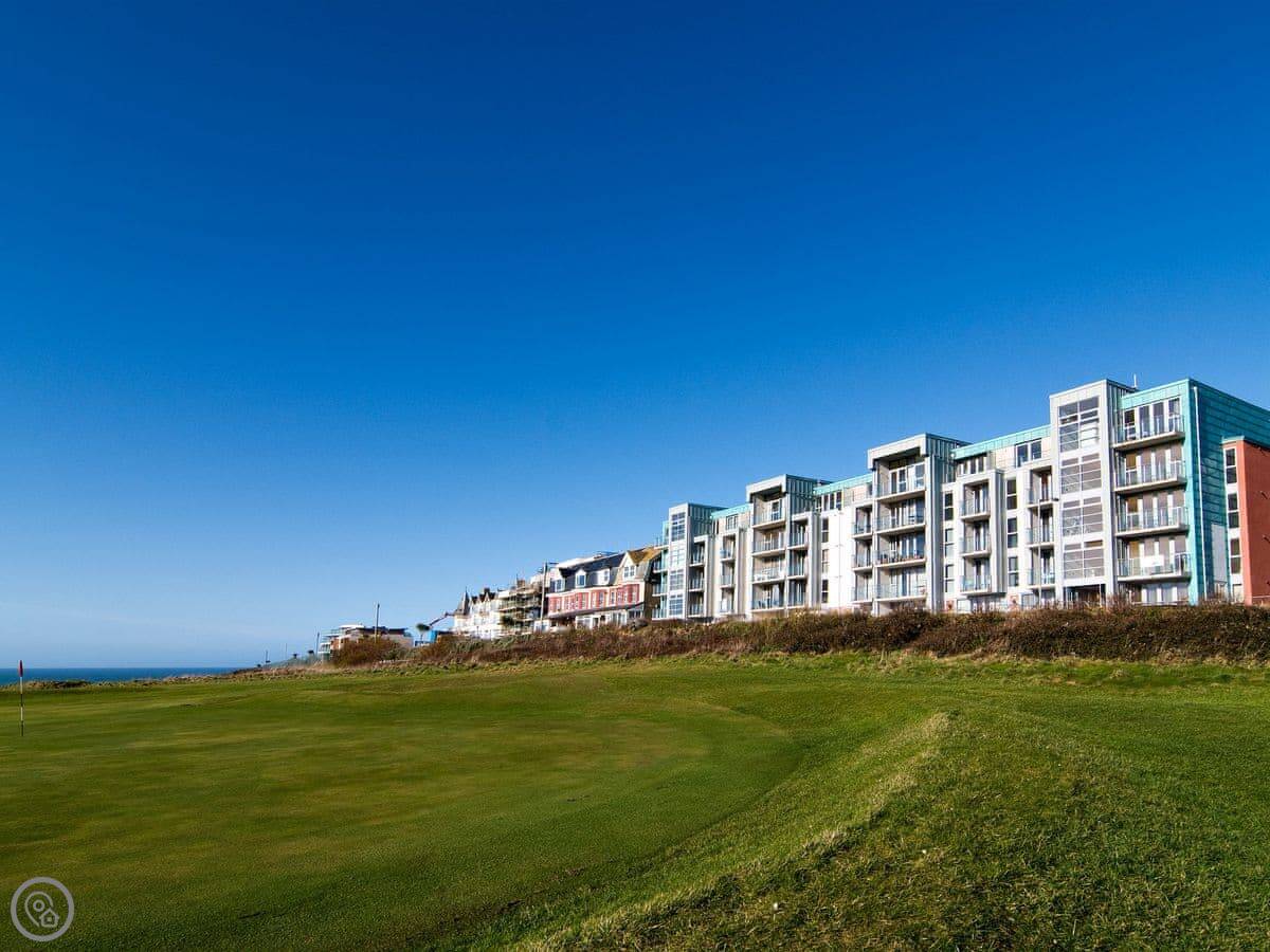 You're basically on top of Fistral. The beach path is right there. It's a proper surf beach, so it can get busy in season. The building has a few apartments in it.