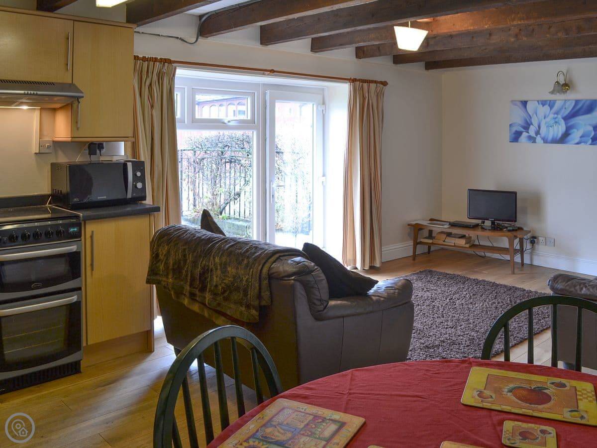 Inside, there's WiFi, a washing machine, and a cot and highchair if you need them. Bedding is included. You can bring one well-behaved dog. The garden is enclosed, which helps.
