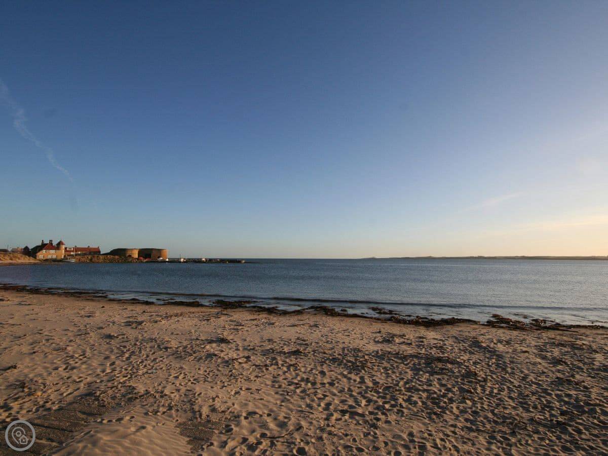 Bamburgh is about five miles east. The castle is massive. The beach is huge and sandy. It's very good. Holy Island, with Lindisfarne Priory, is about a 15 minute drive away, but you have to check the tide times for the crossing.