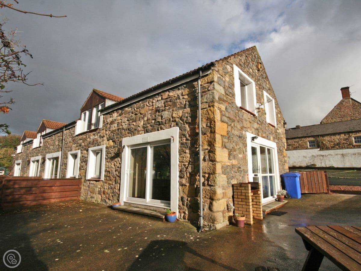 It's called St Abbs Cottage. It's in Belford, on a quiet dead end road at the end of a terrace of four. It overlooks the burn. Bluebell Farm caravan park is right next door, which is fine, just so you know it's there. There's also a public launderette in the building next door if you need it.