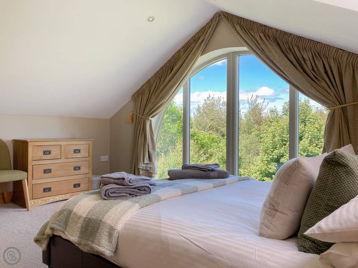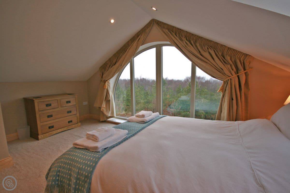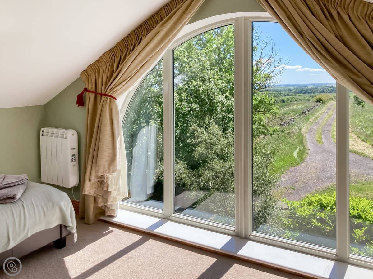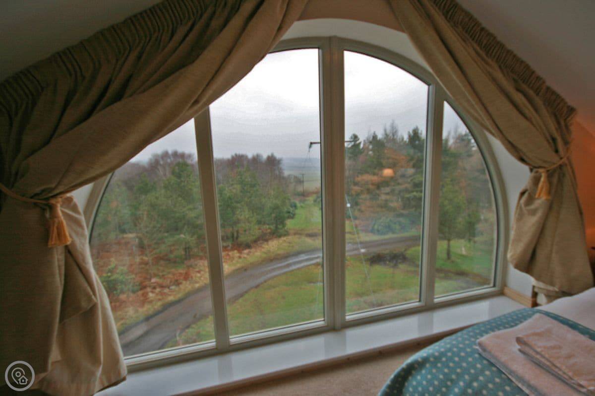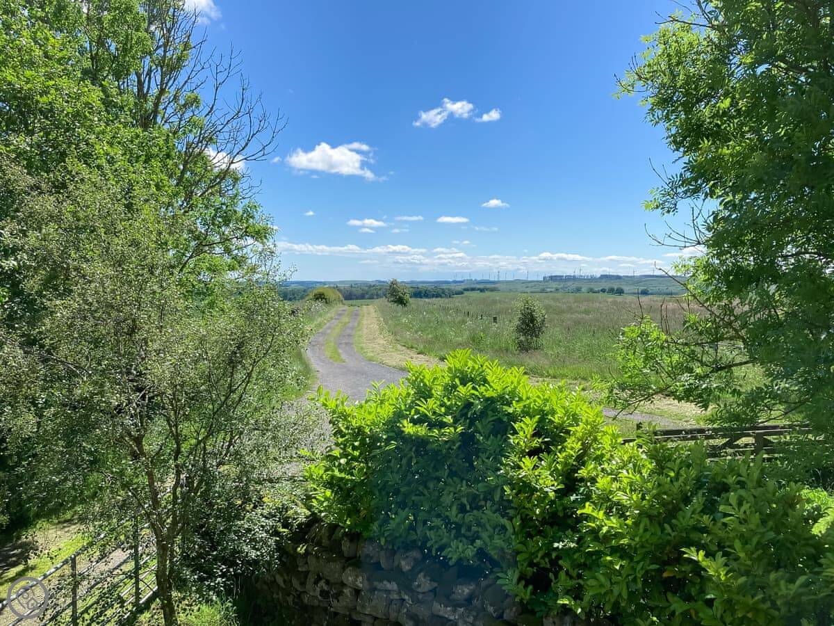 Bellshill Tower is near Bellshill, north of Rothbury. It’s exactly what it sounds like, a converted tower, sat on its own in about 23 acres of woodland. You can't see any neighbours. The views are across fields towards Bamburgh Castle and the sea one way, and the Cheviots the other.
