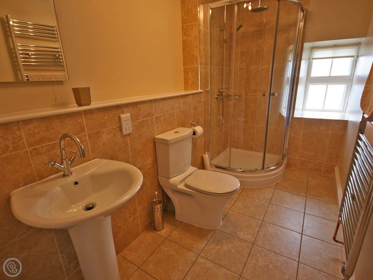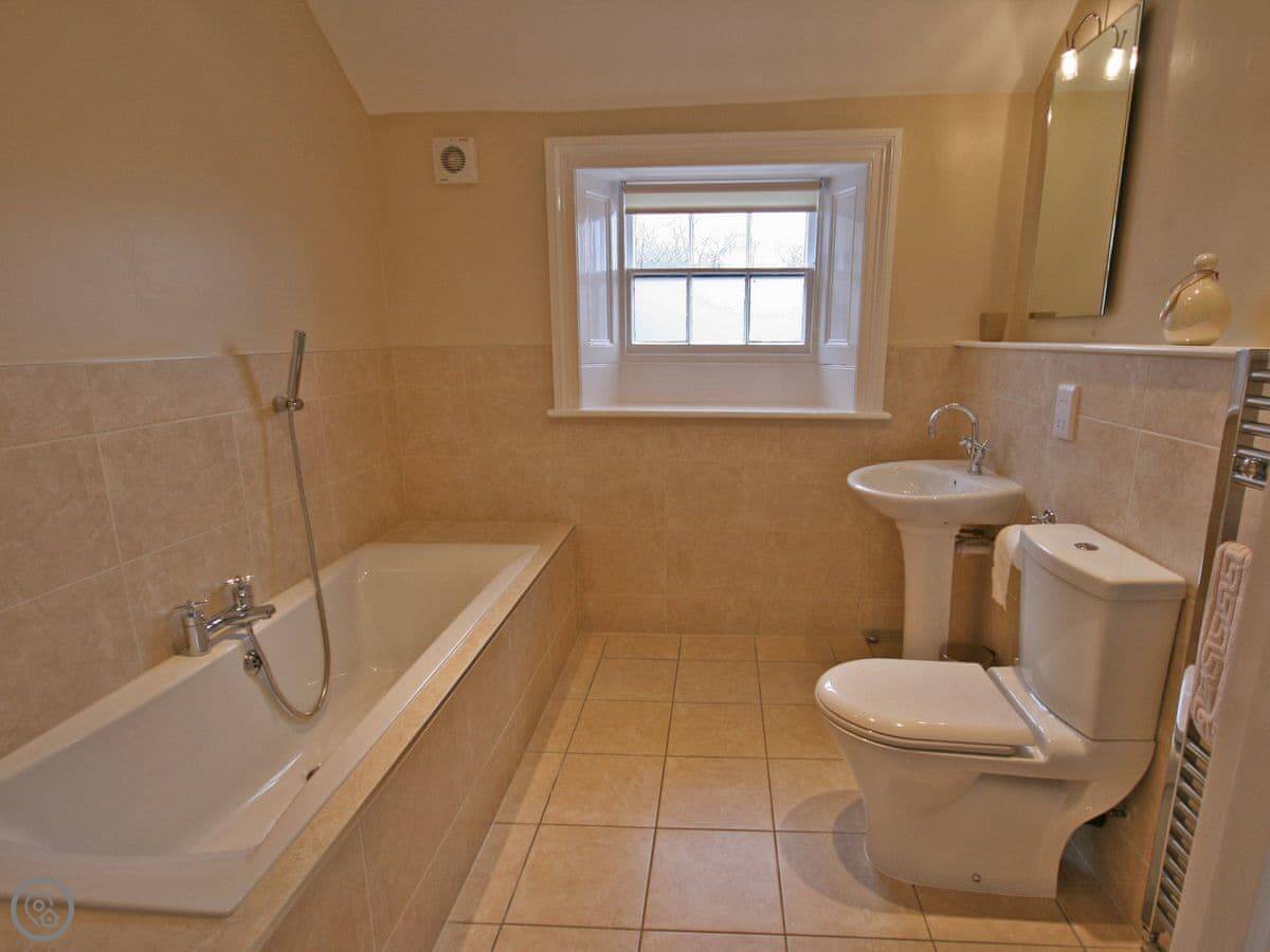 Rock Farm House is up in Rock, which is near Alnwick. It's a renovated farmhouse that sleeps twelve. Six bedrooms, all doubles, and each one has its own bathroom. That's the main point if you've got a big group. No queue for the shower.