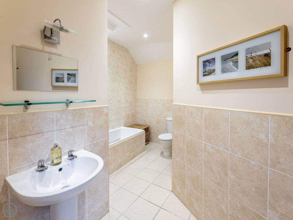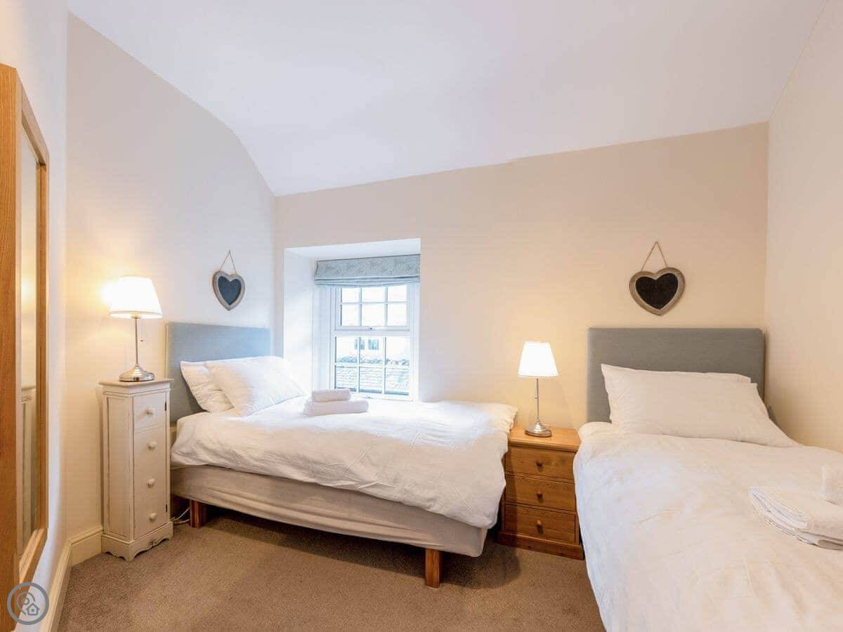It sleeps four. Two bedrooms upstairs, one bathroom. It got a full refurb a few years ago so it's in good order. It's a 4 Star place. One of the beds has a memory foam topper on it.