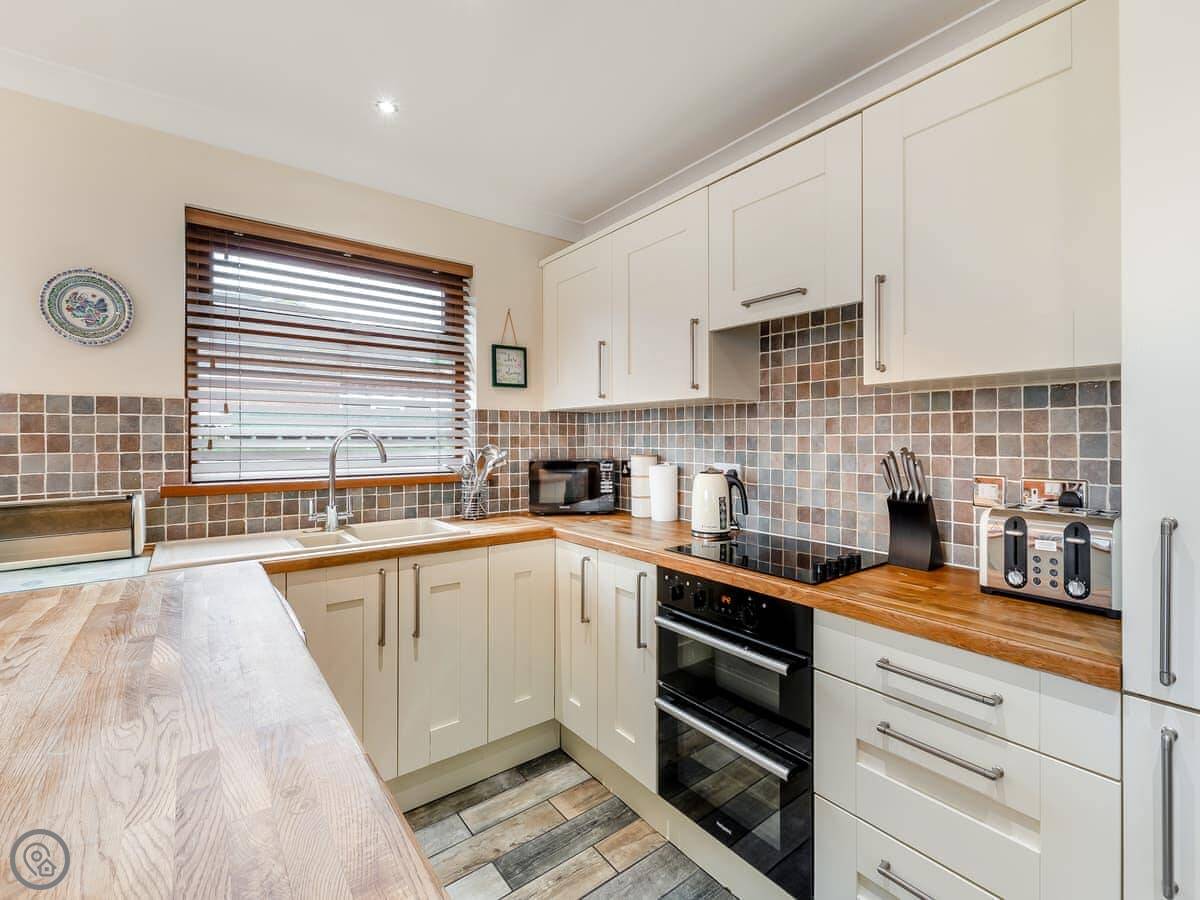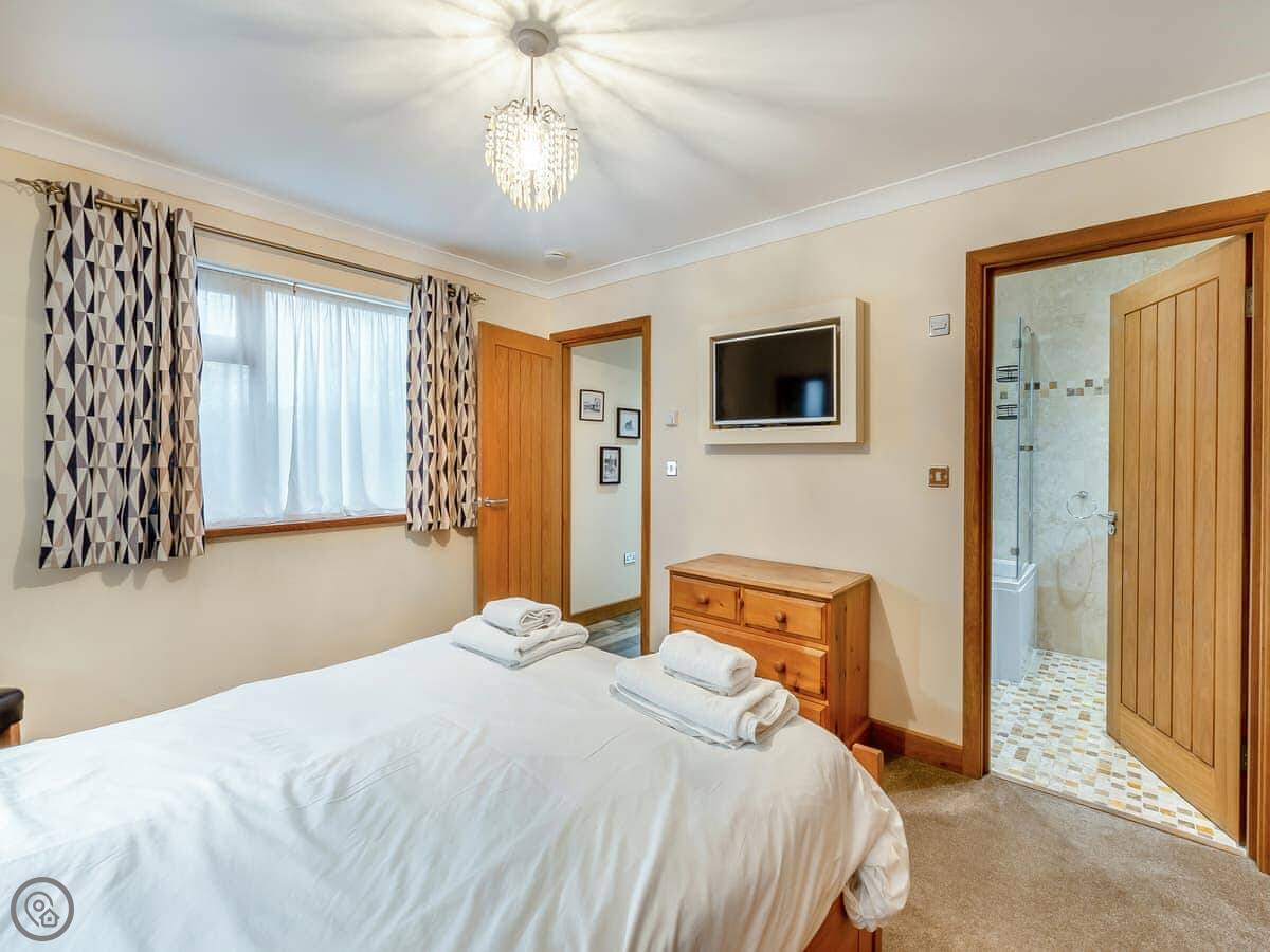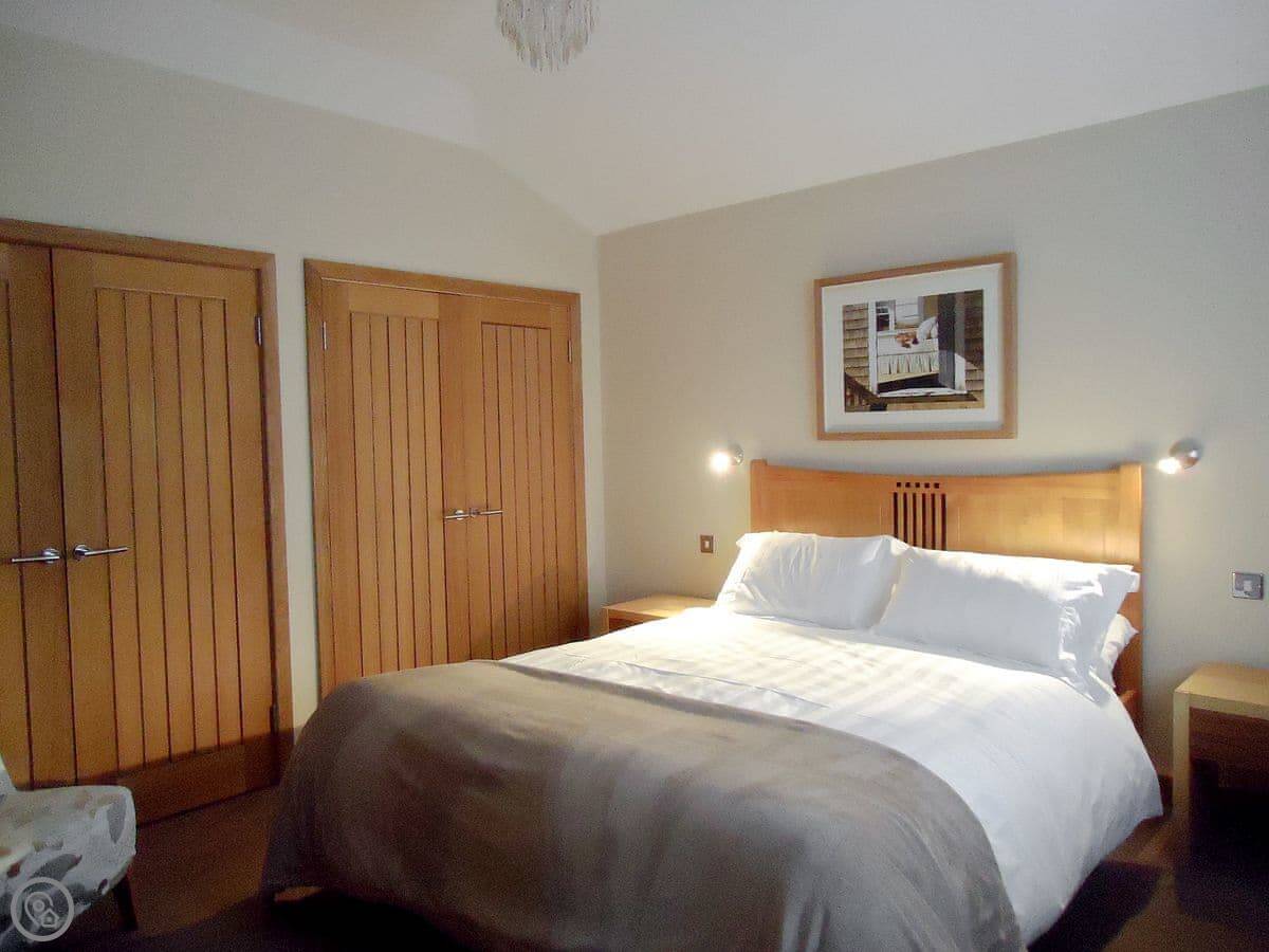 It's for two people. One bedroom, one bathroom. Got a 4 Star rating. It's modern, so everything works and it's easy to keep warm. The garden is enclosed, which is handy if you're bringing dogs. We take two.